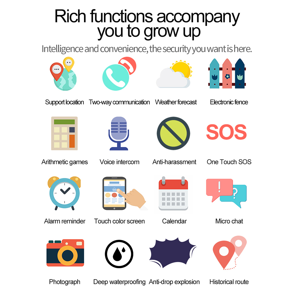 1. Детские Смарт-часы имеют новейшую работу с сенсорным экраном, поддерживают фото.