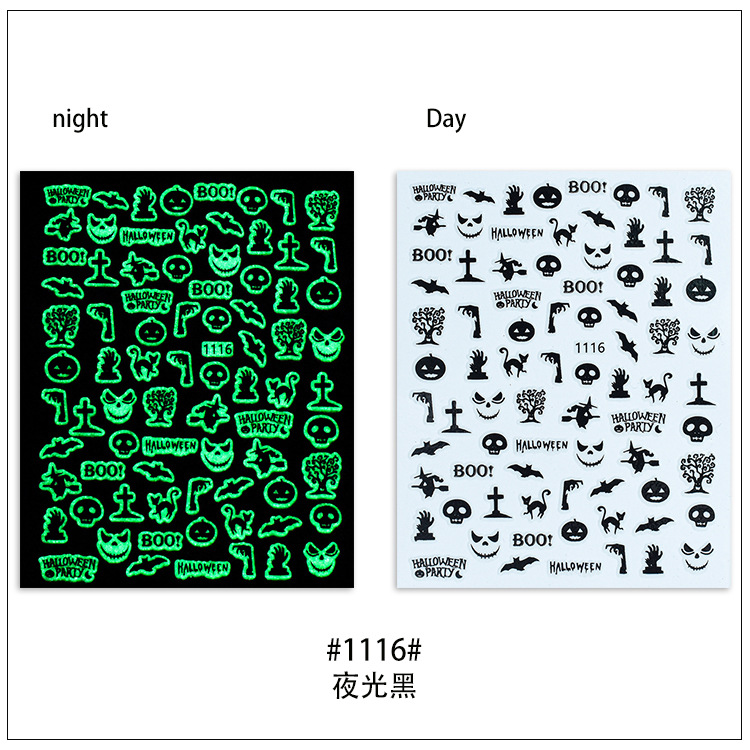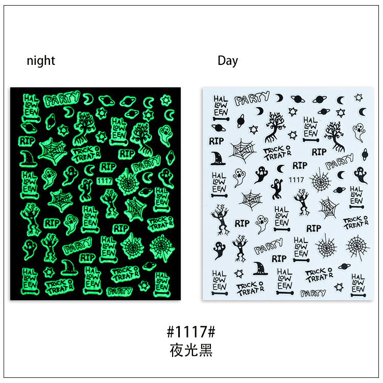 Новинка! Хэллоуин вечерние светящиеся наклейки для ногтей 8x10 см 3D череп маникюр