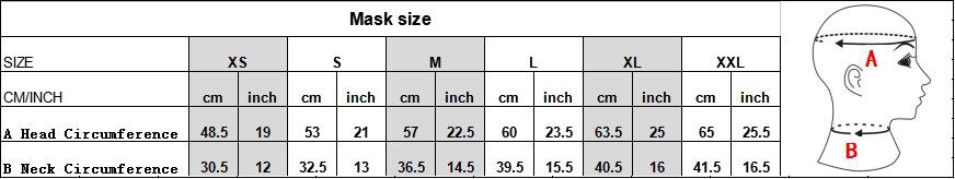 XXL : 65 см (окружность головы), 41,5 см (окружность шеи)