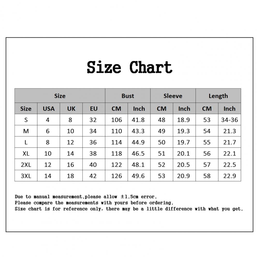 Размер: 3XL, обхват груди: 126 см/49,6 дюйма, длина: 58 см/22,8 дюйма, длина рукава: 53 см/20,9 дюйма (прибл.)