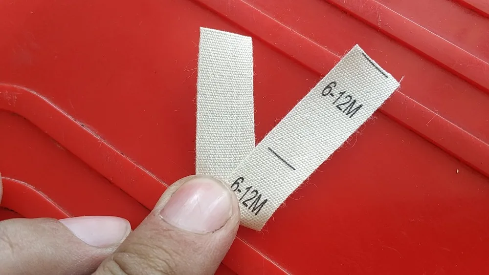 Материал этикетки: бежевая хлопковая лента; Ткань с принтом; Размер; Материал этикетки;