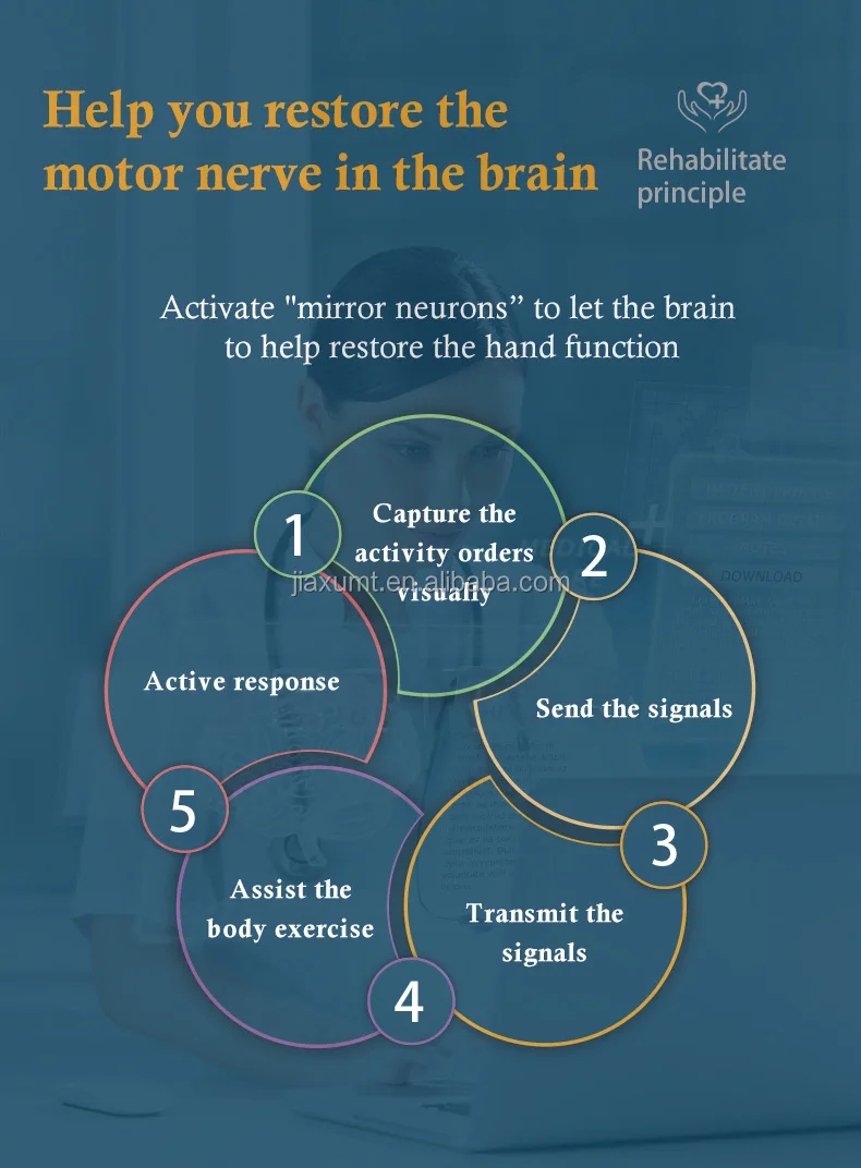 * Этот продукт используется для обучения ручной реабилитации. Реабилитационные тренировки для инсульта, гемплегии и травм.* Пожалуйста, сообщите нам размер вашей ладони, есть 4 размера перчаток: M/L/XL, и есть Левая или правая рука.* Пожалуйста, свяжитесь с нами перед покупкой. * Тренировка ручного зеркалаДавление воздуха в качестве мощности, автоматически управлять работой рук, уменьшить спазмы, сделать эффективную тренировку для ручного восстановления, также может действовать на мозговые нервы и кровеносные сосуды, стимулирует консервативное лечение травм головного мозга и послеоперационную реабилитацию. В соответсвии с запросами, отзывы, там будет очевидная ощущения в течение 15 дней, 2-3 месяца может быть значительно улучшена