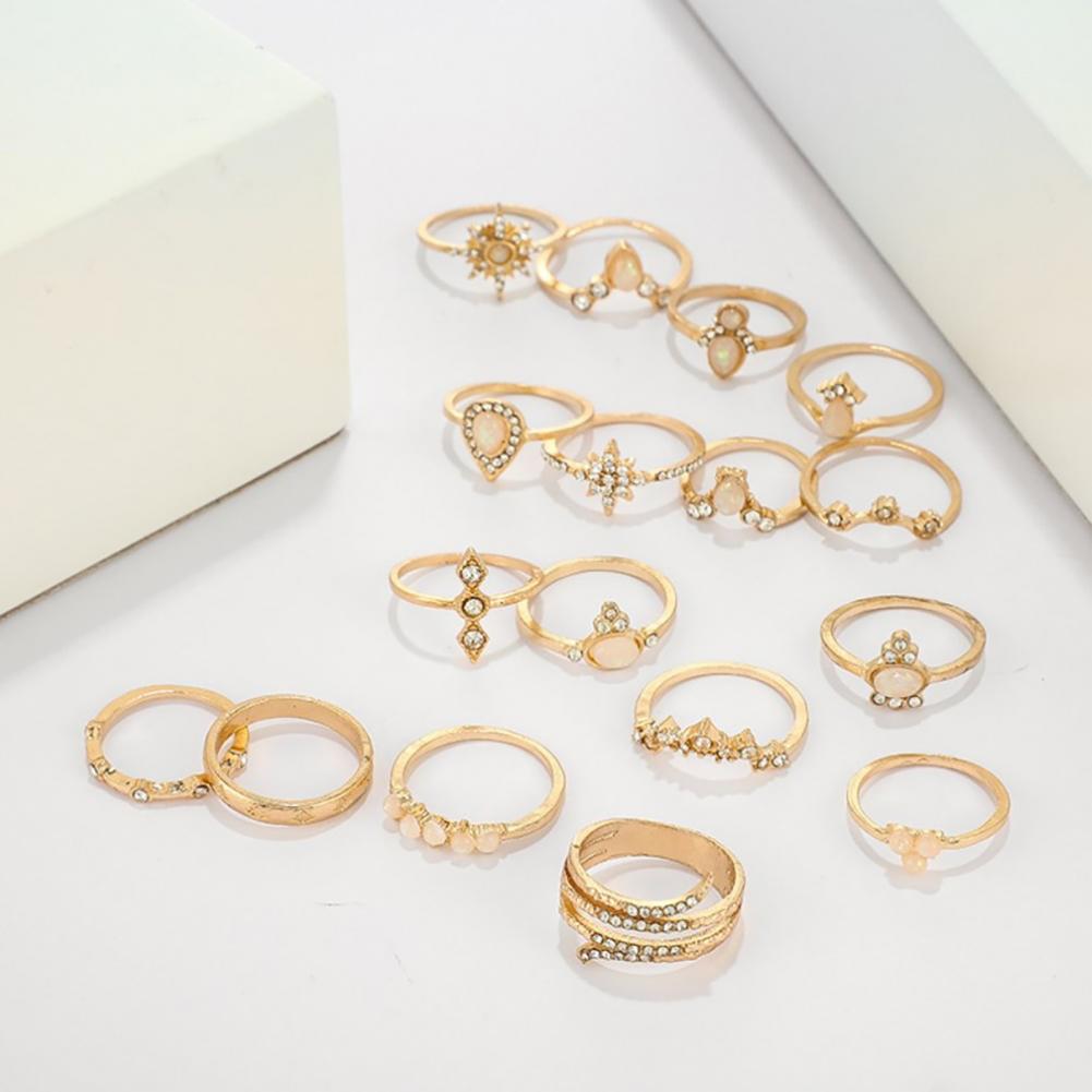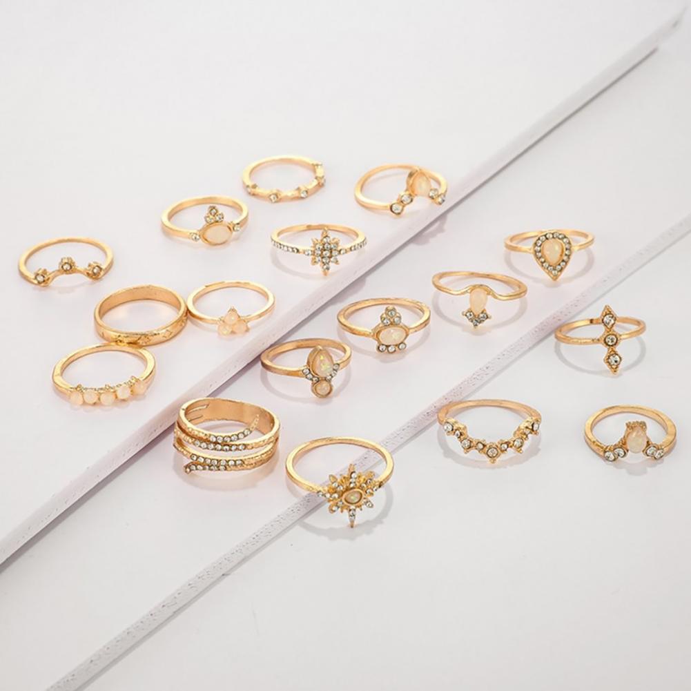 17 шт./компл. кольцо на палец богемное ювелирное изделие подарок Женский Искусственный драгоценный камень стразы кольцо на палец для свиданий