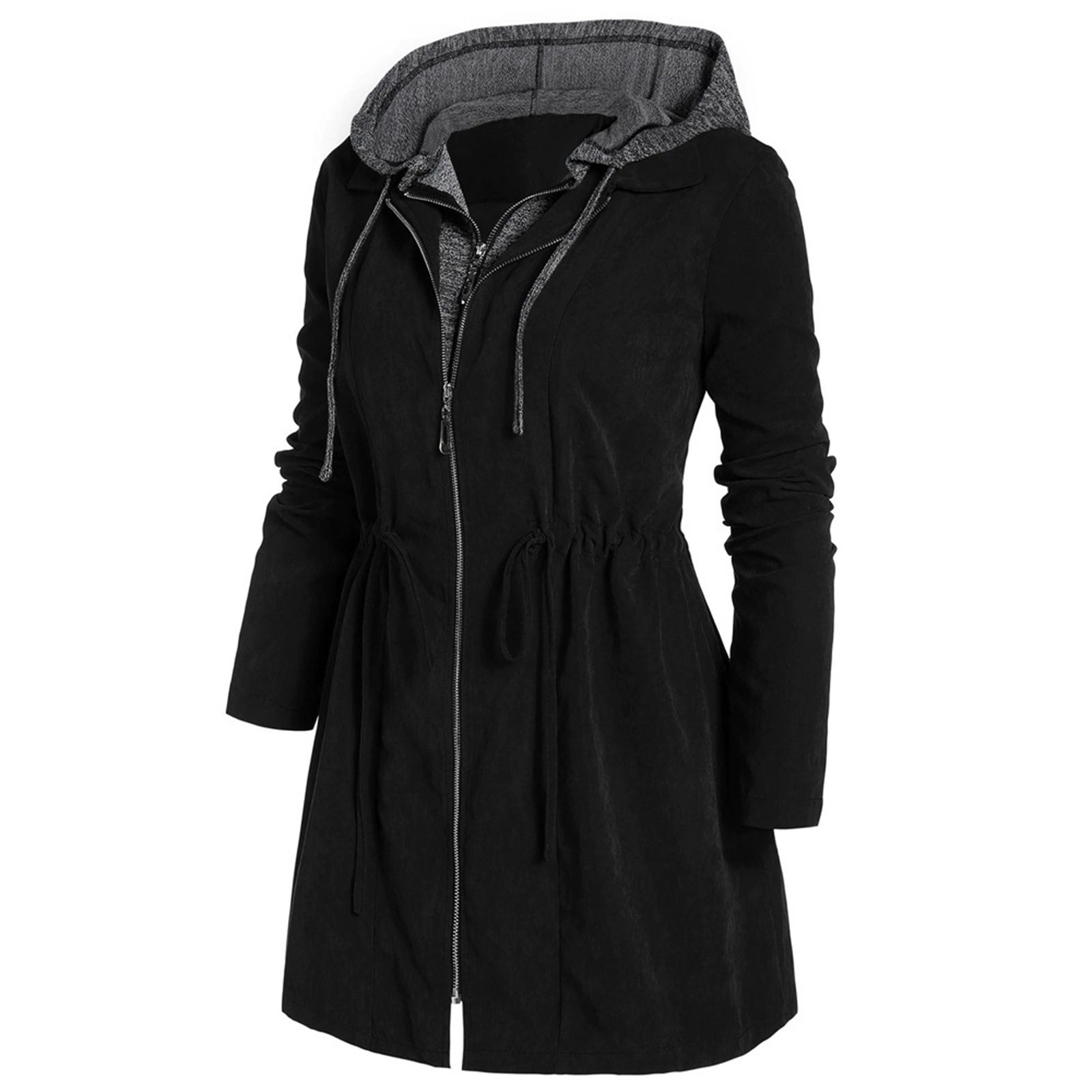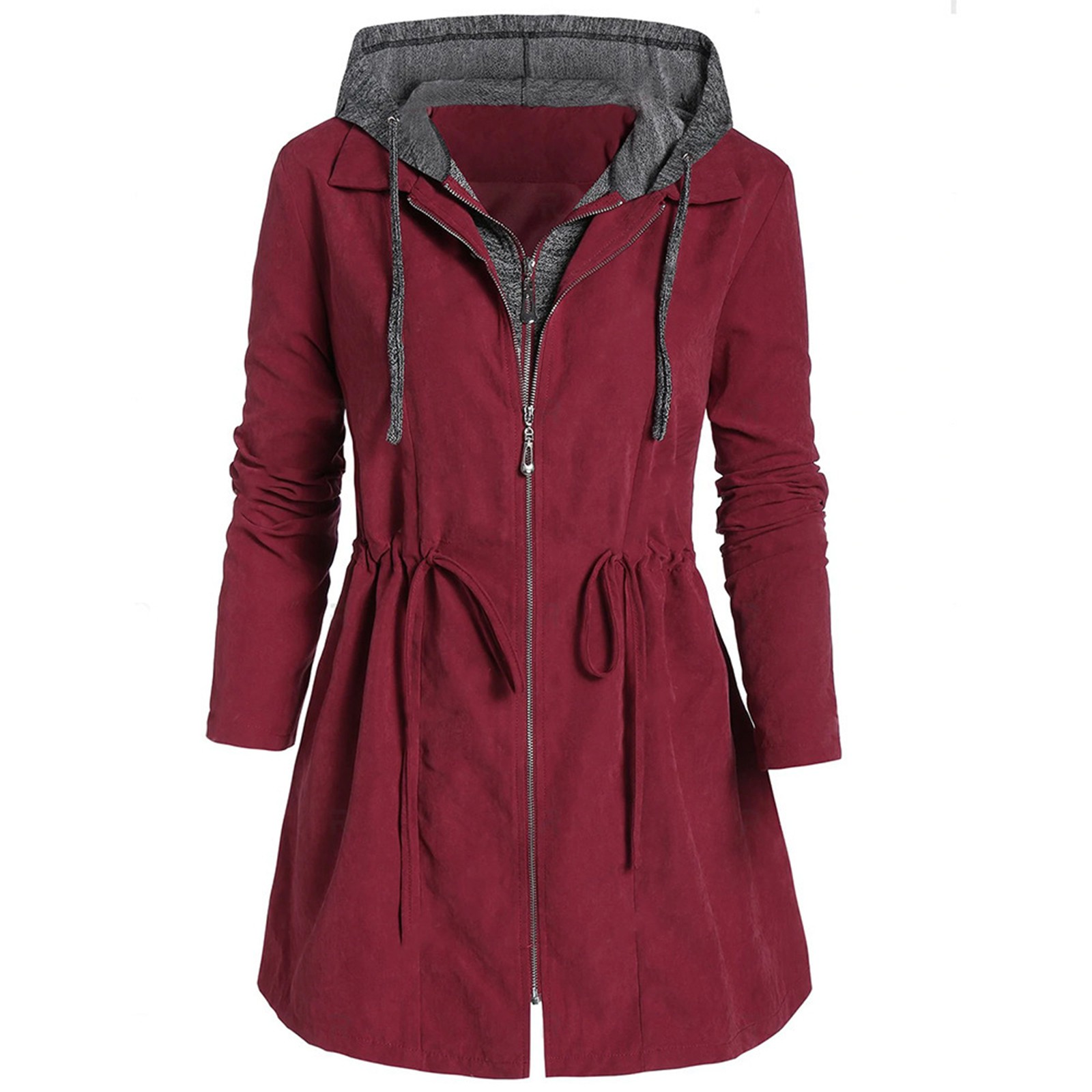 ❤Особенности: Женская куртка с капюшоном; Застежка-молния на пуговицах; Длинный рукав; Сплошной цвет; Два функциональных кармана для вместительного хранения; Регулируемый пояс на завязках, дайте больше места в части талии и для лестной посадки зимой, чтобы вы выглядели красиво.