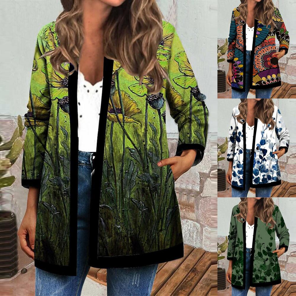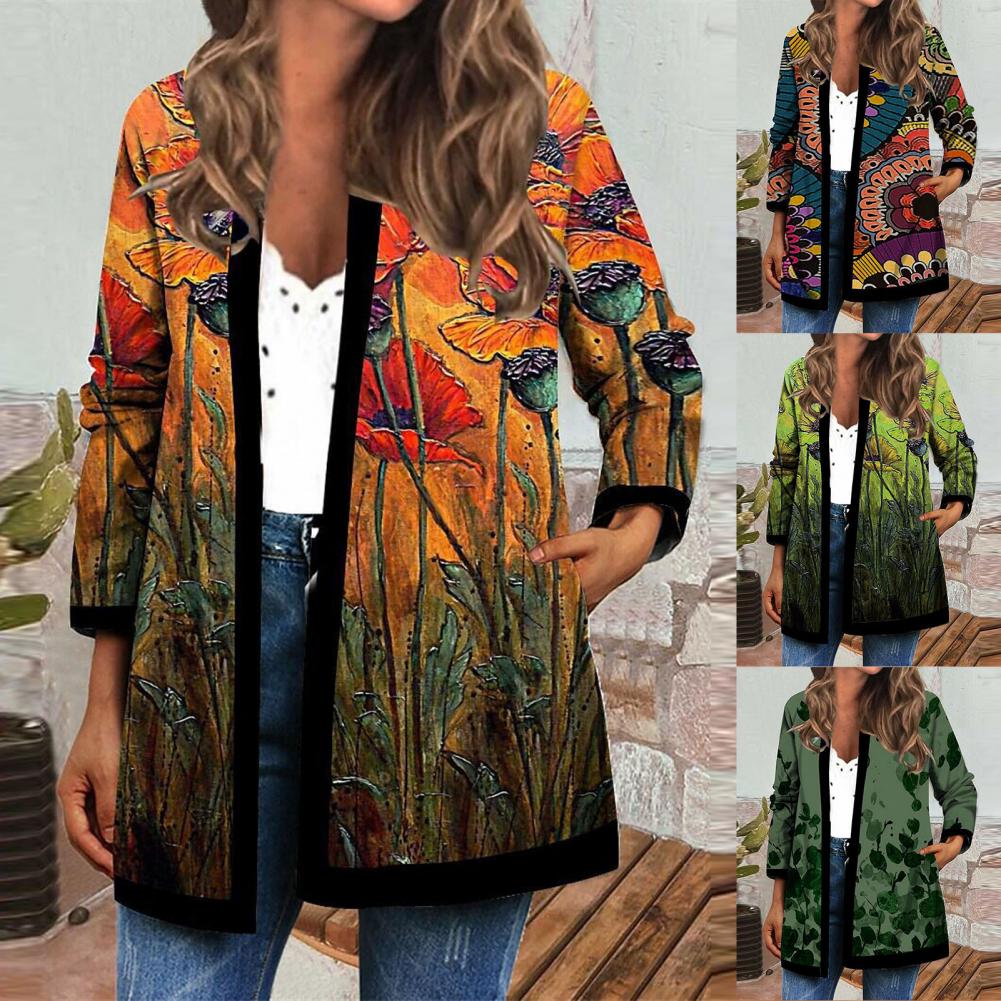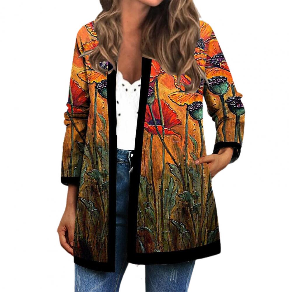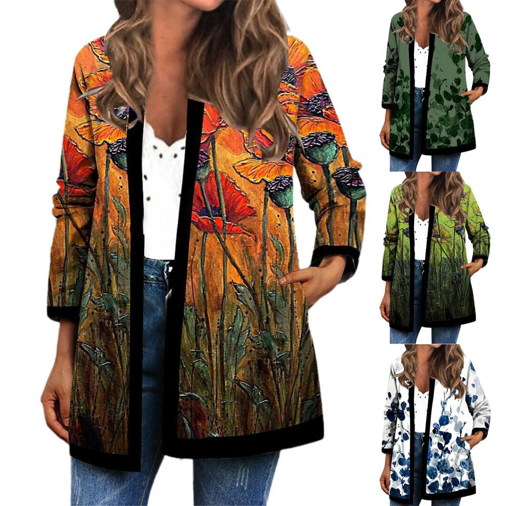 Пальто-кардиган с боковыми карманами сделает вашу руку теплой. Когда вы носите это винтажное пальто-кардиган с цветочным принтом, вы будете выглядеть более шикарно и модно.