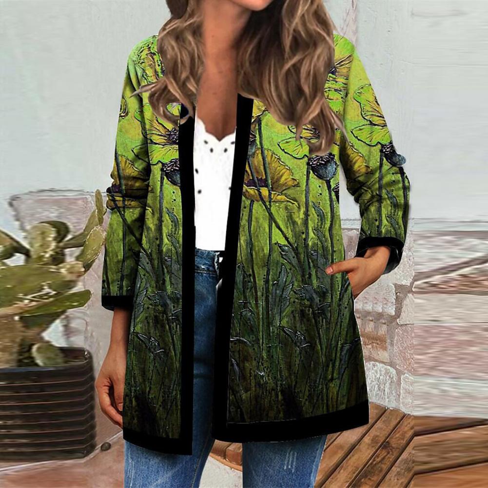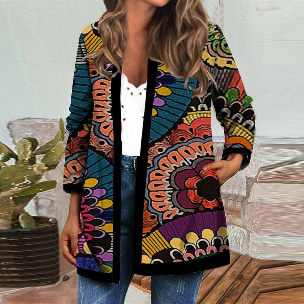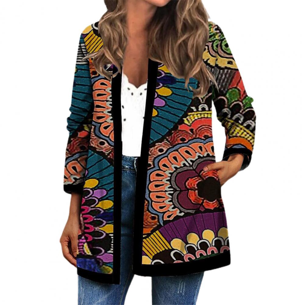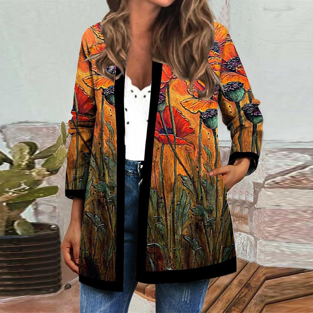 Пальто-кардиган с боковыми карманами сделает вашу руку теплой. Когда вы носите это винтажное пальто-кардиган с цветочным принтом, вы будете выглядеть более шикарно и модно.