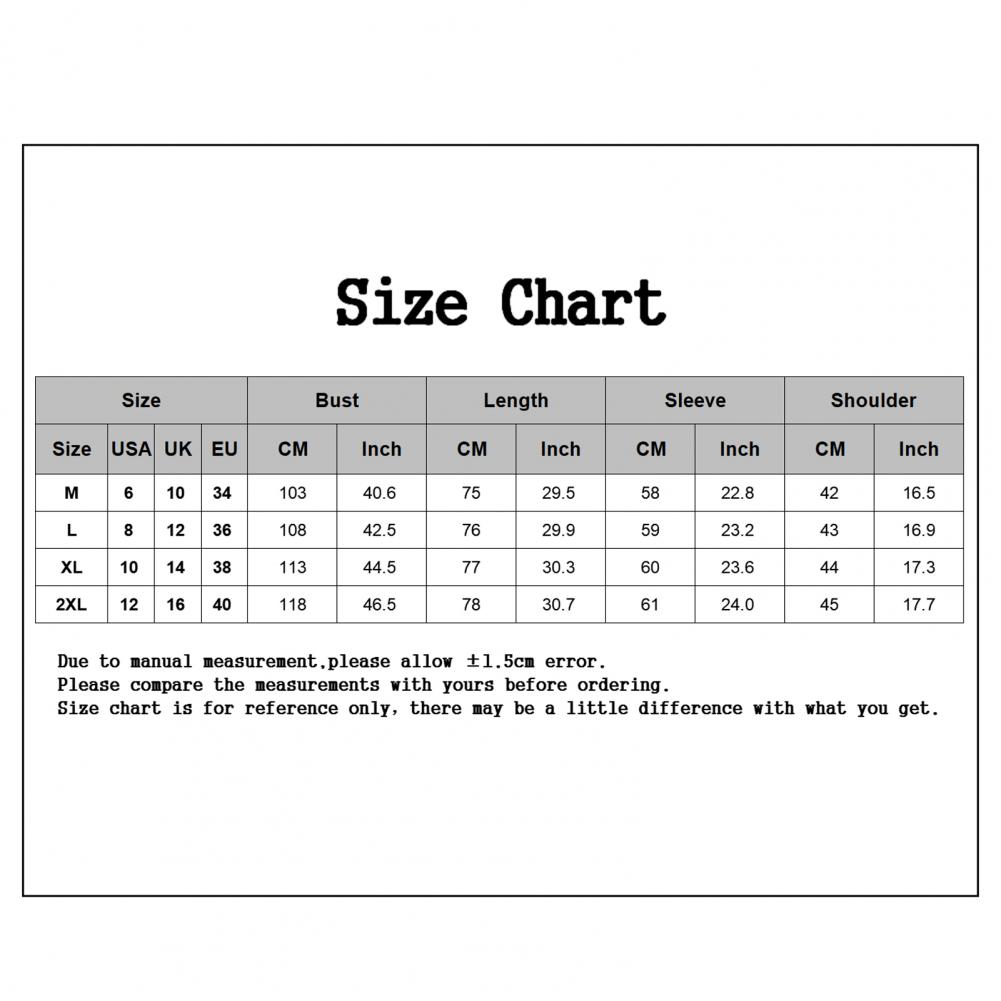 Размеры: XL, плечо: 44 см/17,3 ", Бюст: 113 см/44,5", Длина: 77 см/30,3 ", рукав: 60 см/23,6" (прибл.)