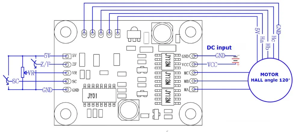 Applicable to hall brushless dc motor with Hall at 120°, not all manufacturers' Hall line sequence are corresponding, you can adjust the Hall line sequence or motor three-phase line sequence according to the actual situation, to achieve the best driving effect.