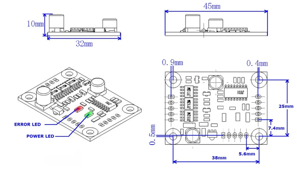 5. Control port distance: 2.54mm,Power port distance:2.54 mm