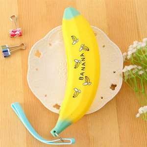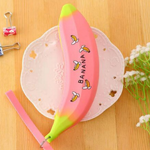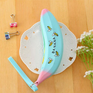 Cute mini silicone banana plastic pencil case children's girls creative stationery pencil bag large capacity zip coin purse