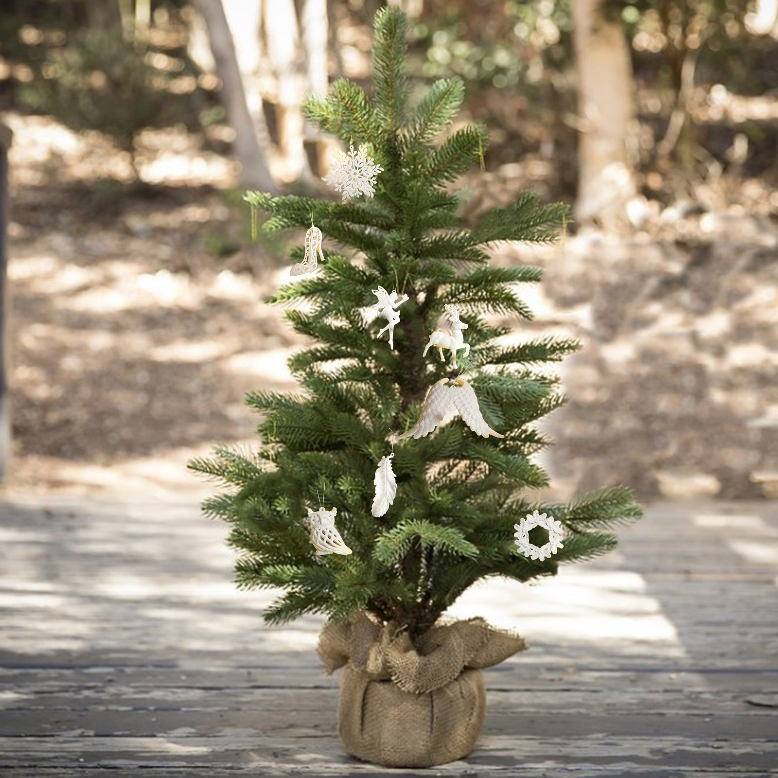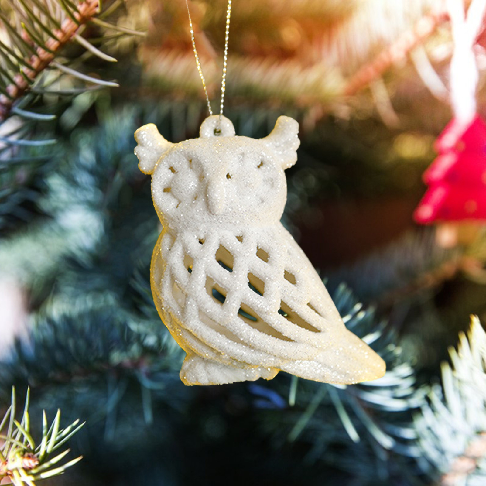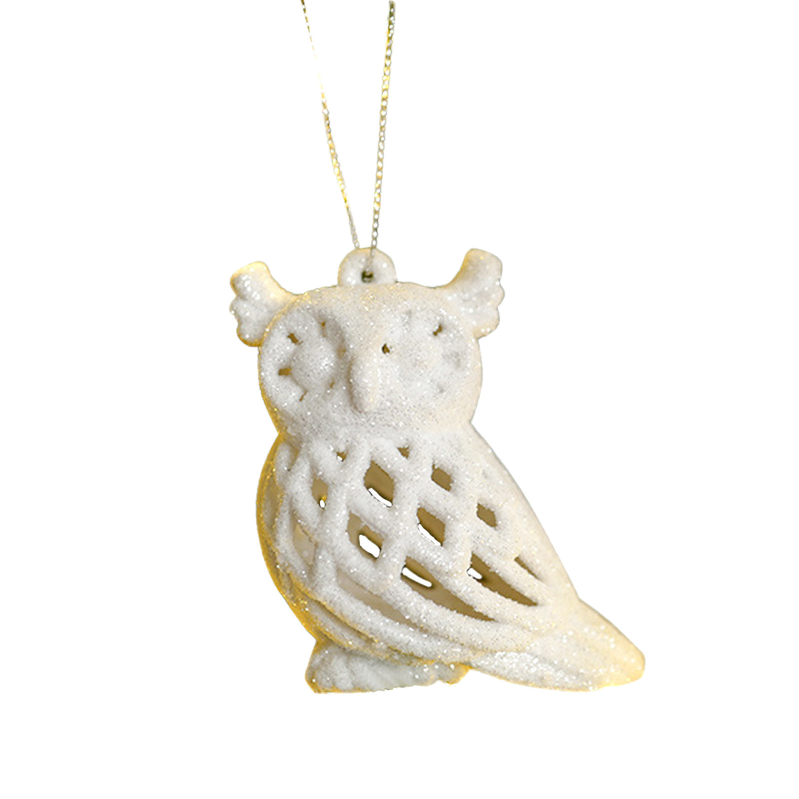 Christmas Decorations Realistic White Pendant Toy Cute Cartoon Mini Xmas Tree Small Pendant Accessories Angel Fawn Owl Figure