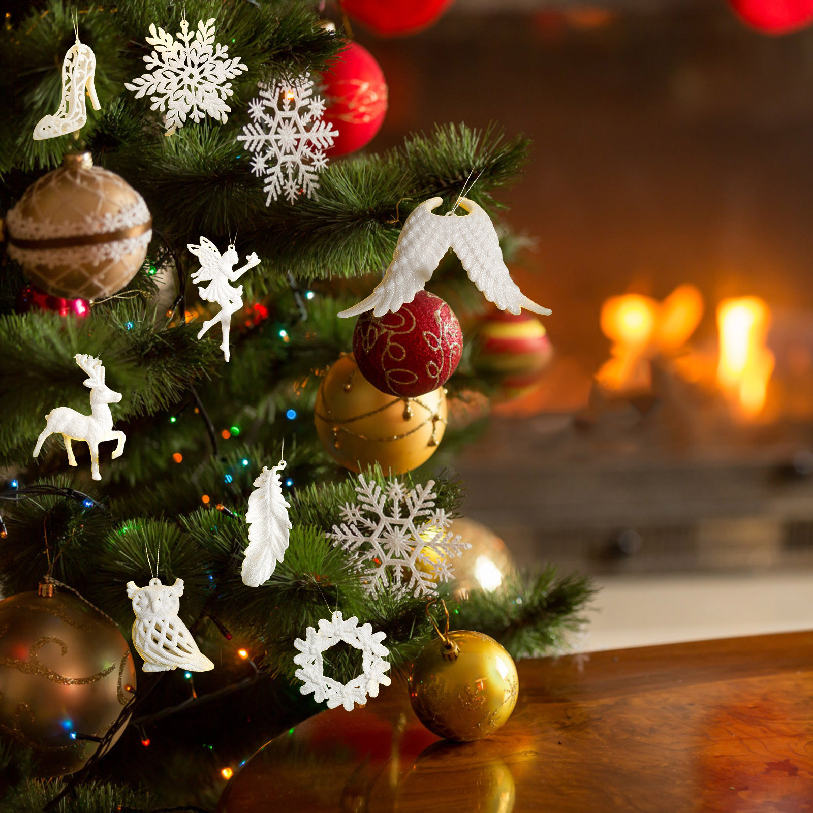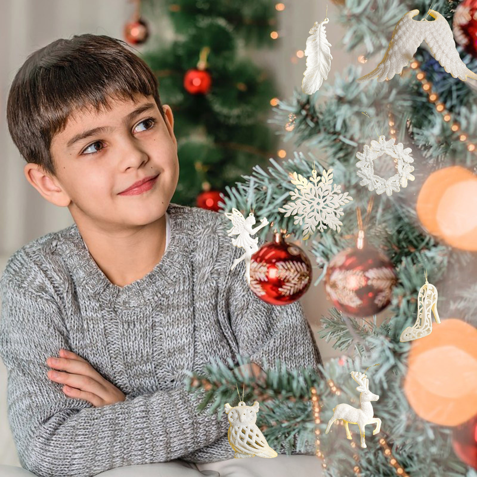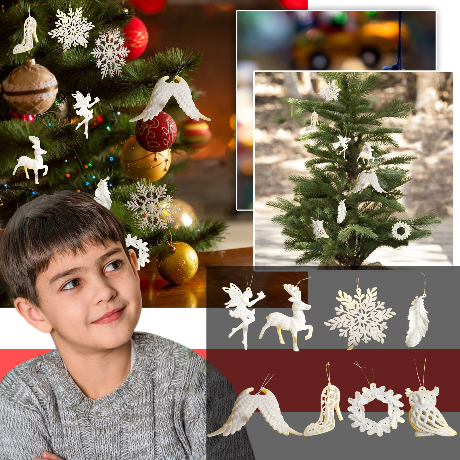 Christmas Decorations Realistic White Pendant Toy Cute Cartoon Mini Xmas Tree Small Pendant Accessories Angel Fawn Owl Figure