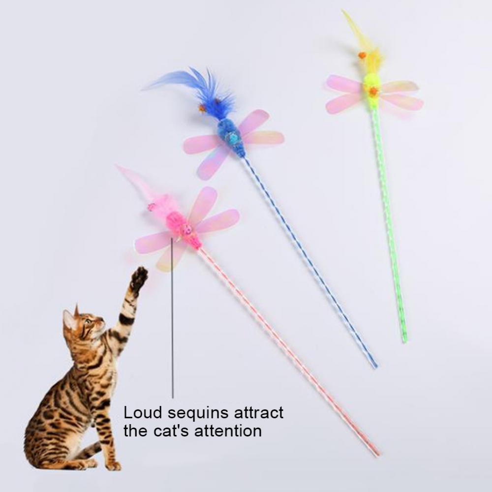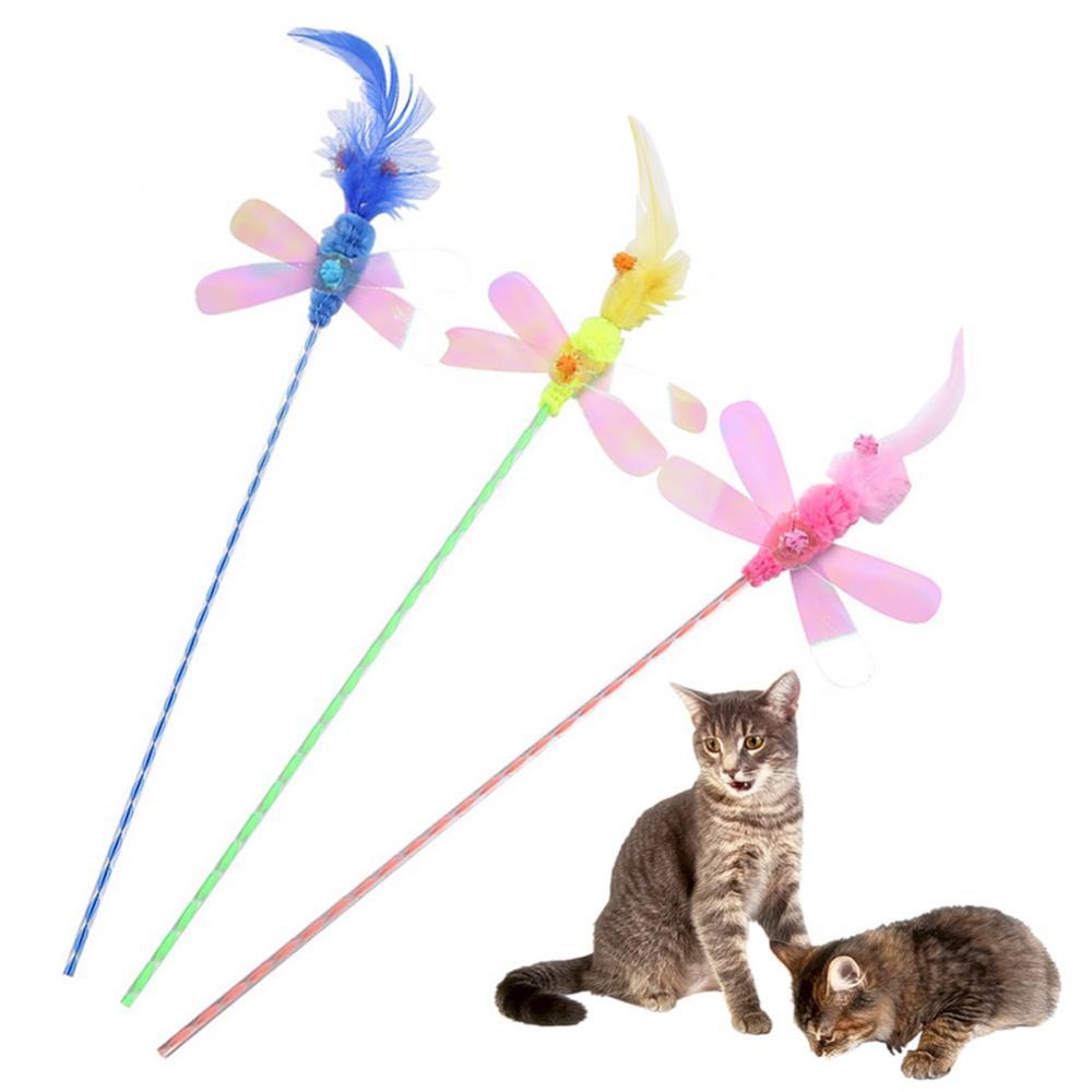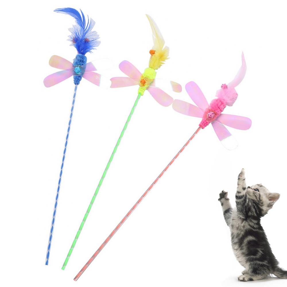 Кошка Котенок Перо Стрекоза блесток тизер палка интерактивная игрушка