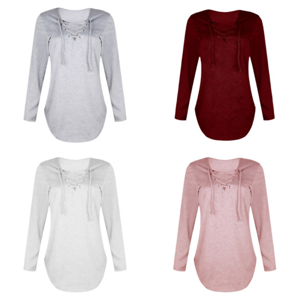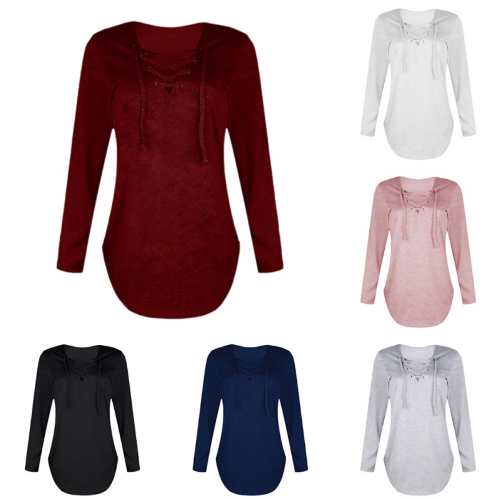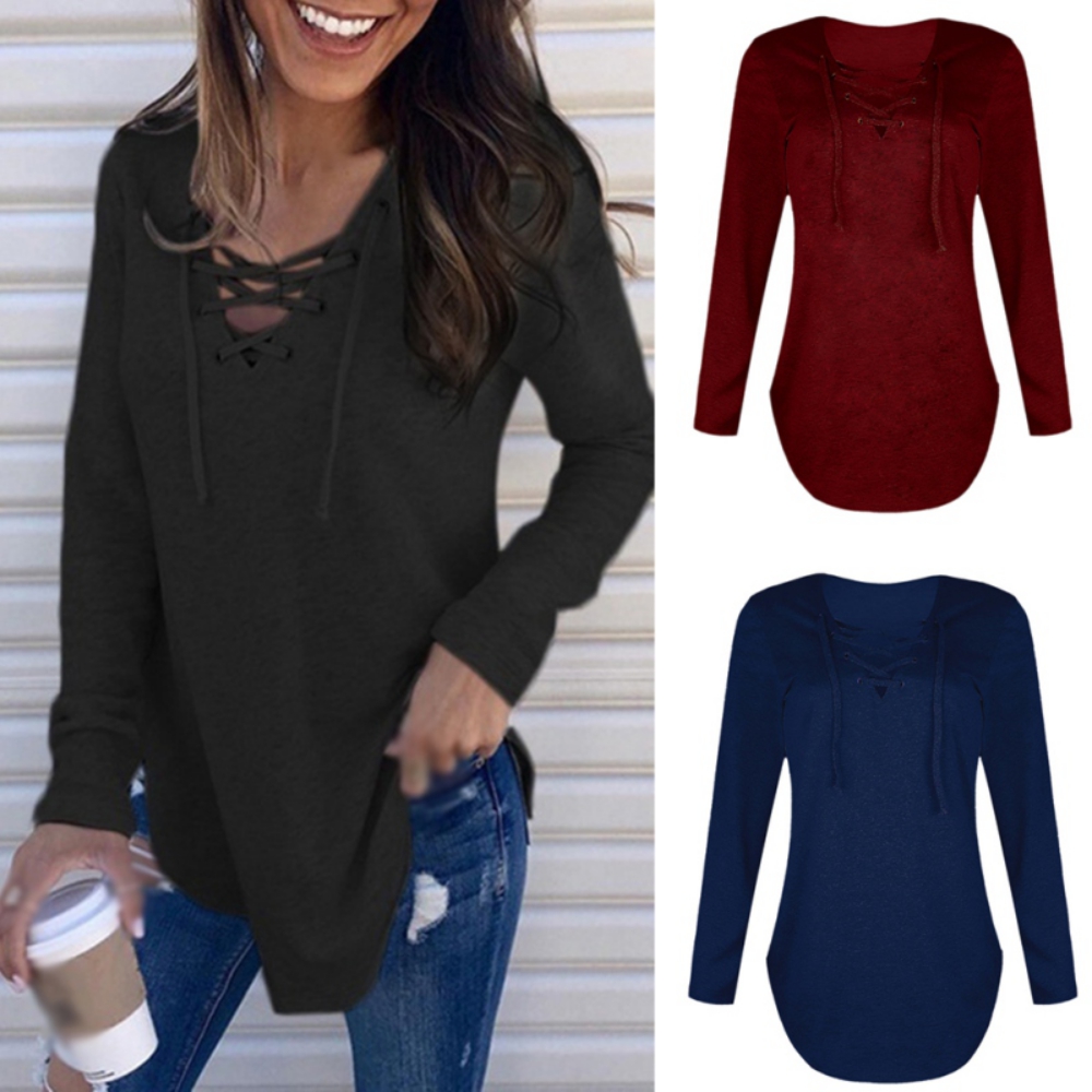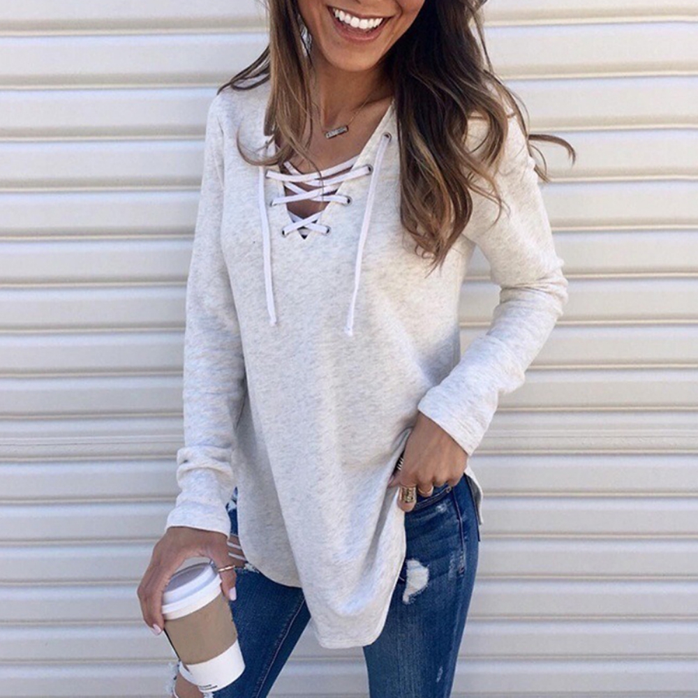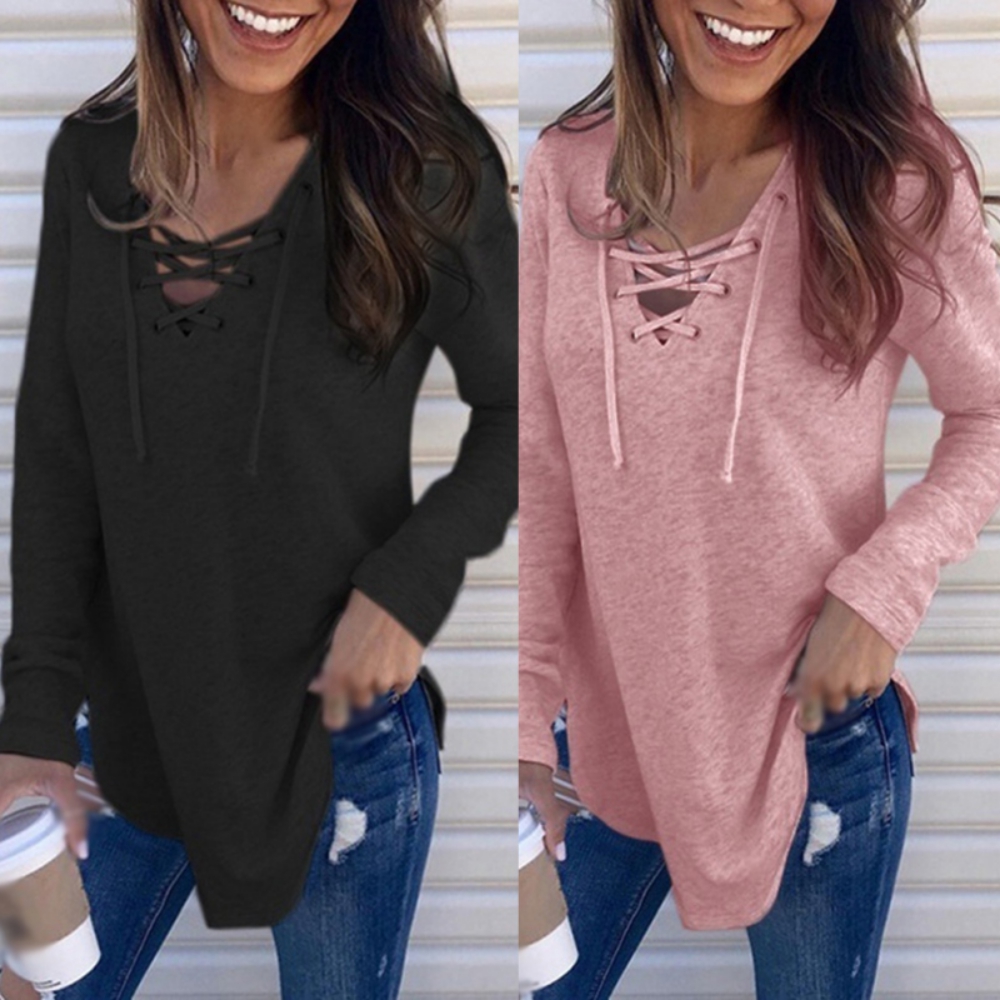 Осенне-зимняя новая Европейская и американская модная однотонная свободная футболка с v-образным вырезом на бретелях