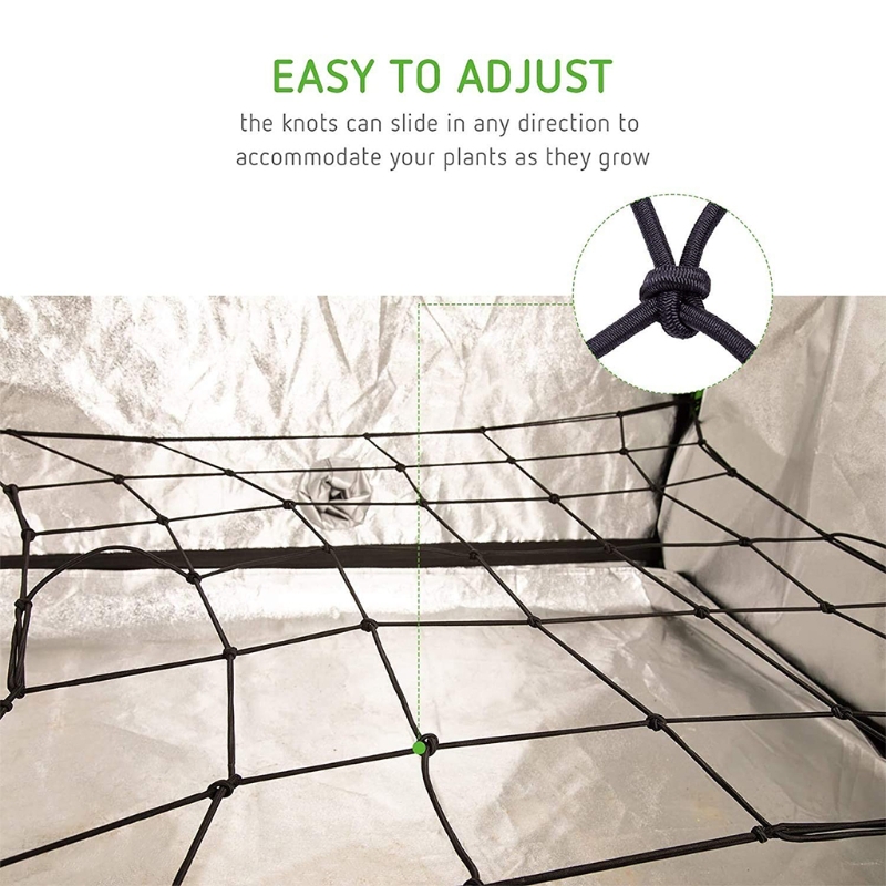 Простота установки и регулировки: каждый квадрат шпалеры составляет 4х4 дюйма, но узлы можно скользить в любом направлении, чтобы точно разместить ваши растения по мере роста. Предназначен для крепления на раму палатки для выращивания 2.5x2.5FT, этот шпалер также легко растягивается до 3X3FT и может быть даже сложен, чтобы соответствовать 3x2.5FT и другим палаткам.