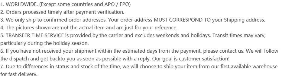 Важное примечание: почтовые коды следующих европейских стран и регионов не могут отправлять посылки, потому что они относятся к отдаленным районам.Покупатели, принадлежащие к следующим почтовым кодам, не должны размещать заказ для оплаты.Большое спасибо за сотрудничество!