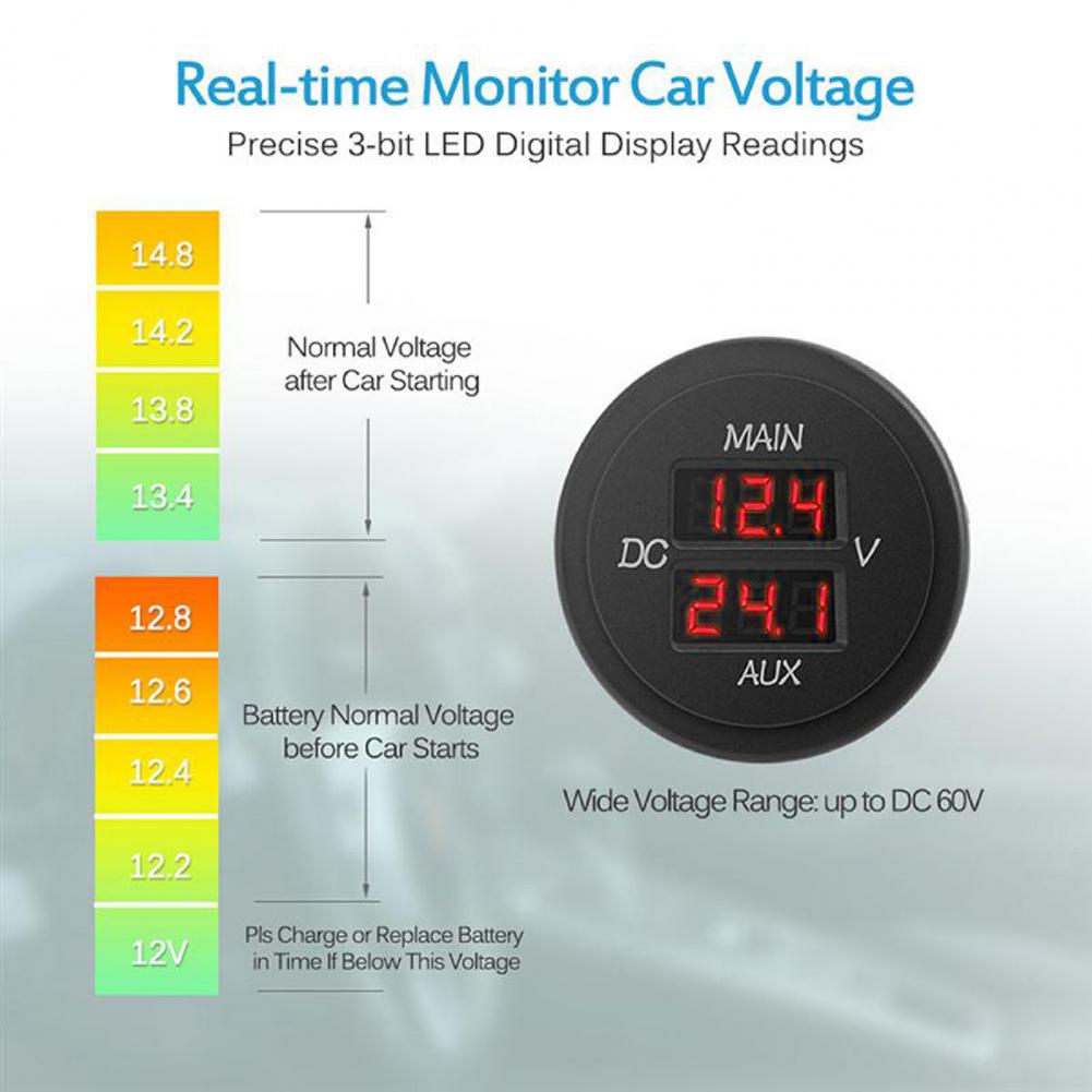 Вольтметр Высокая точность монитор батареи экологичный 12-24V двойной цифровой светодиодный вольтметр автомобиля для мотоцикла