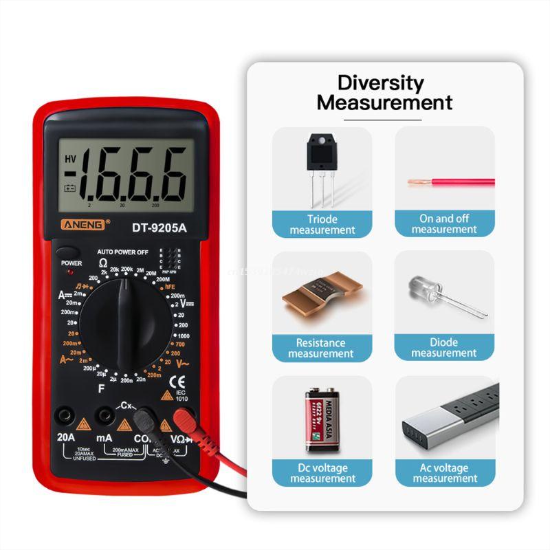DT9205A hFE AC DC LCD Display Professional Electric Handheld Tester Meter Digital Multimeter Multimetro Ammeter Multitester