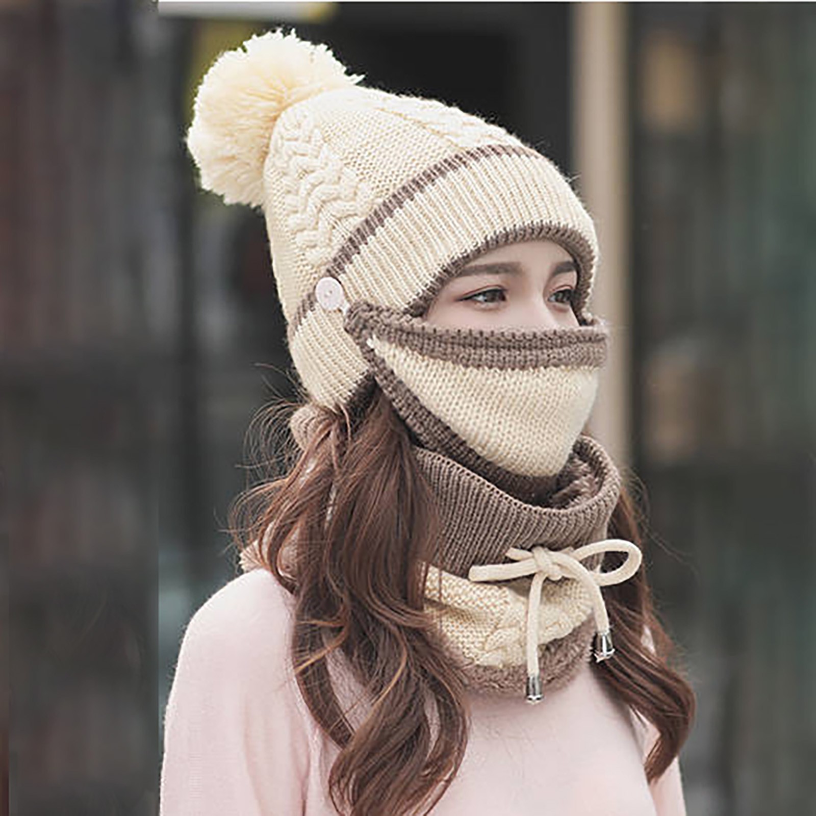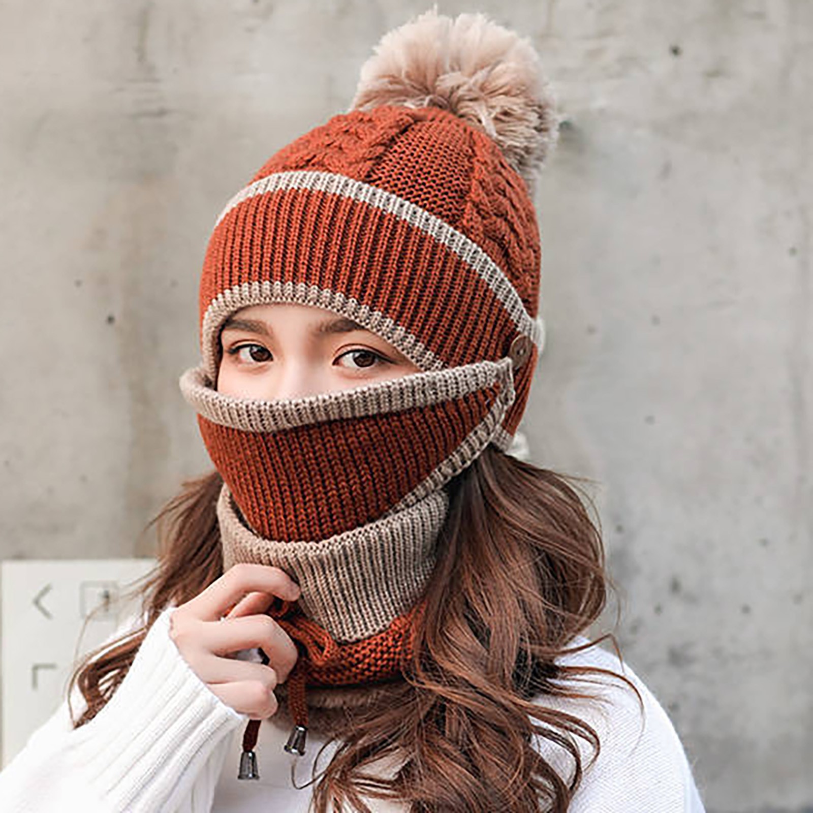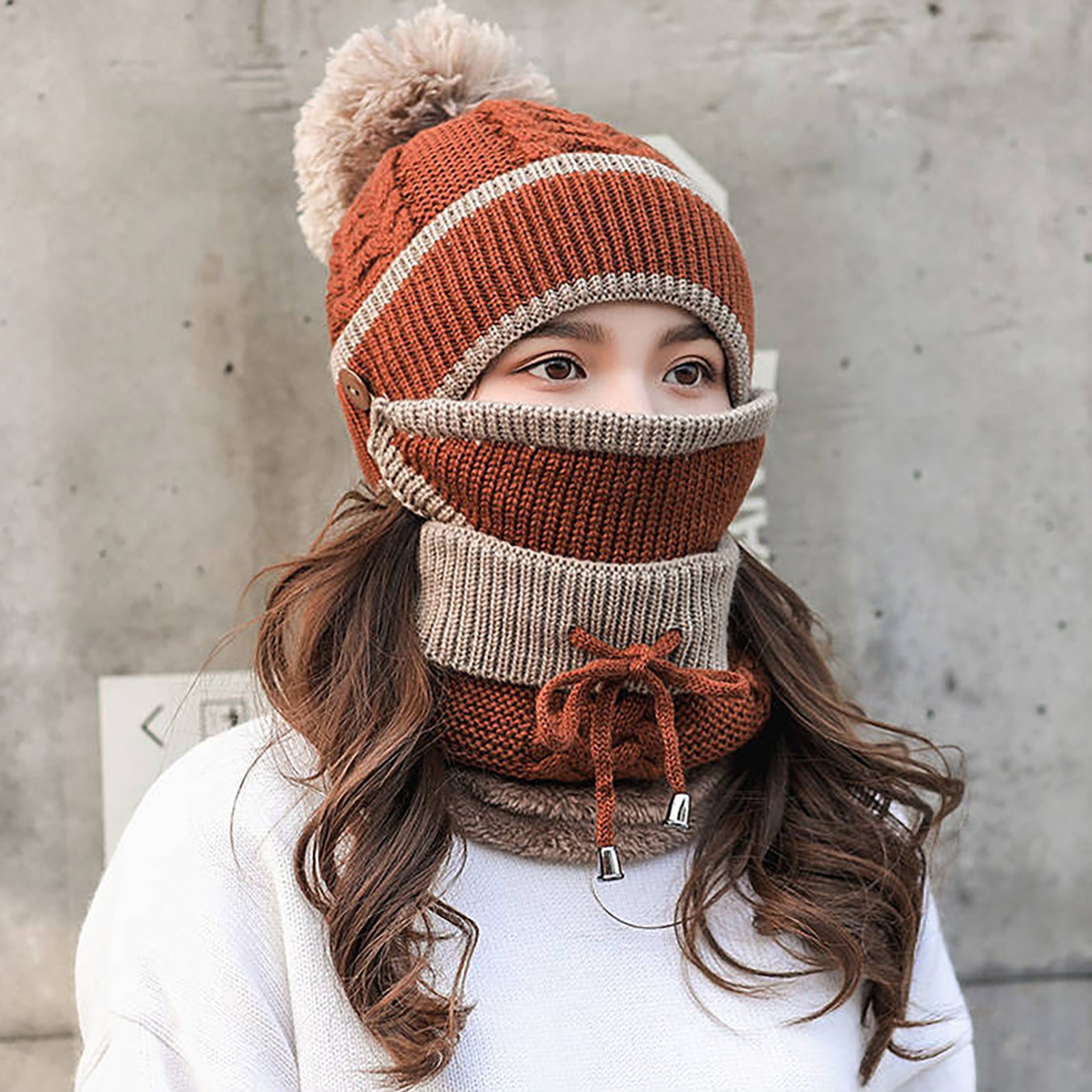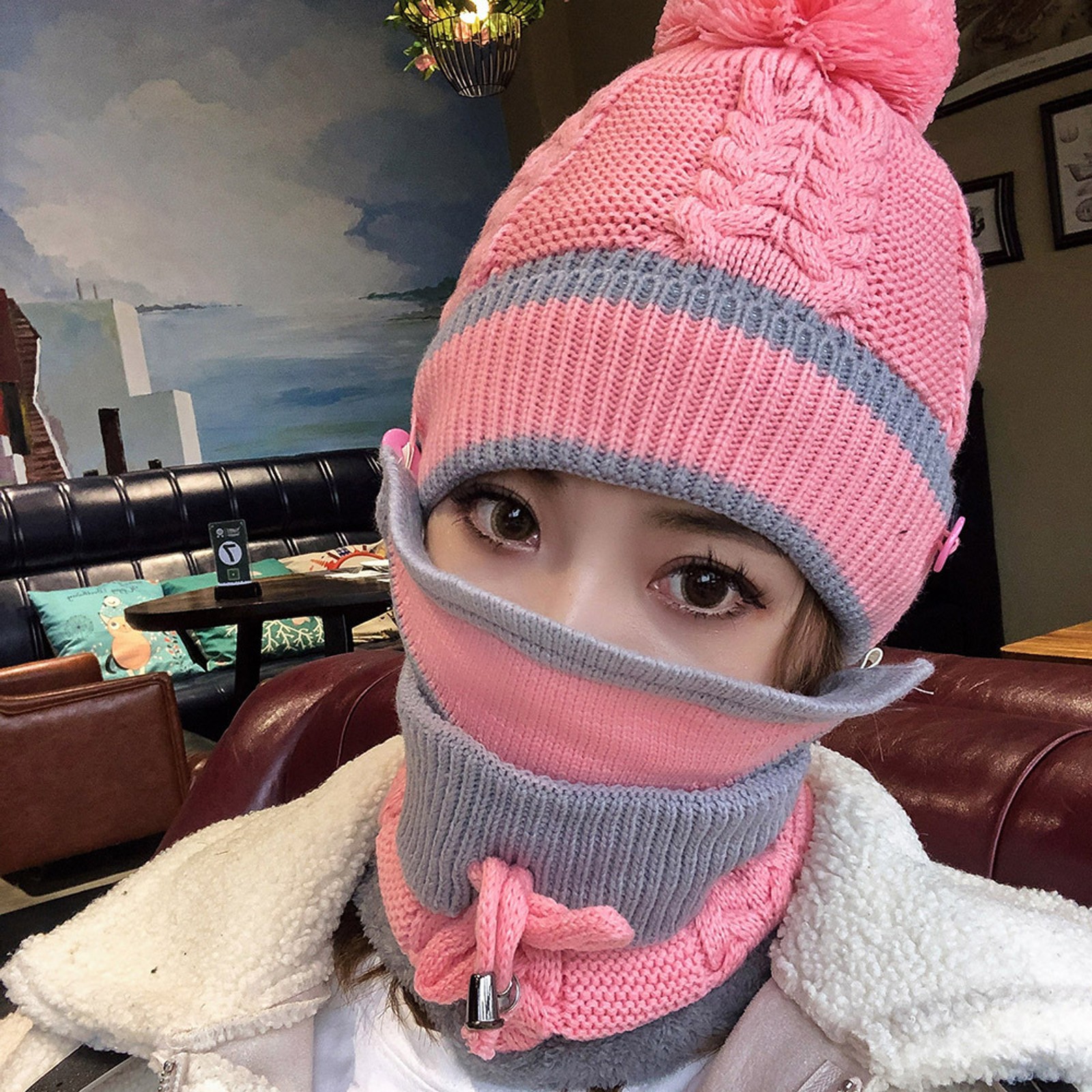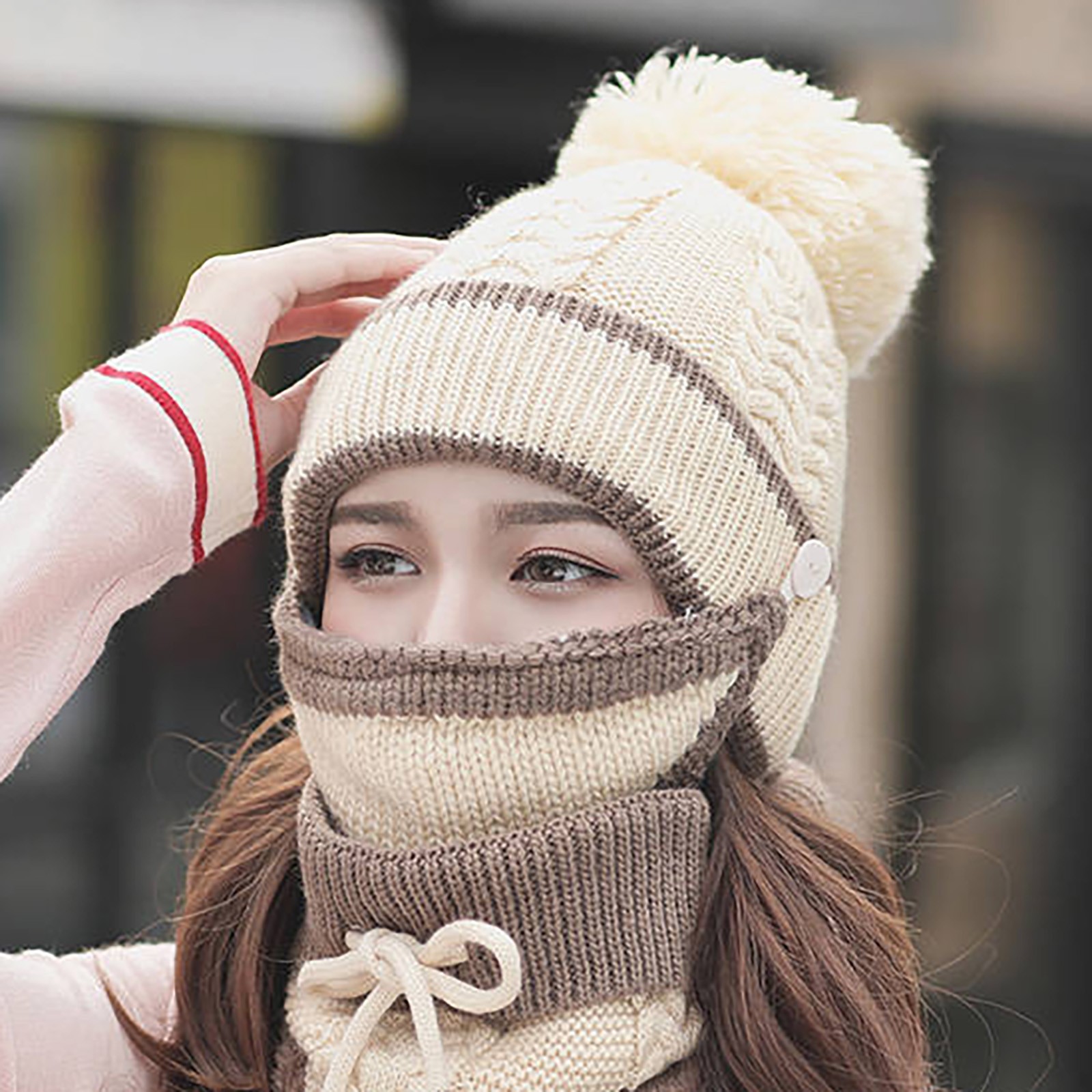 Женская модная зимняя теплая и ветрозащитная шапка, шарф, маска для улицы, костюм из трех предметов
