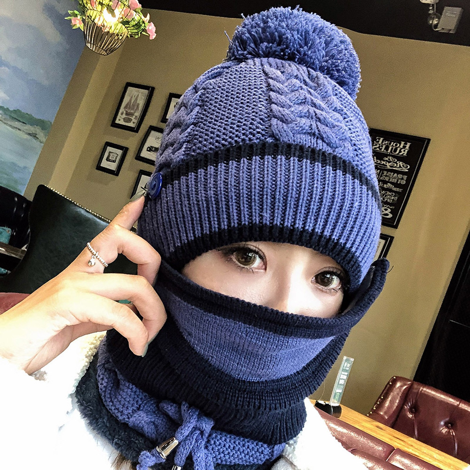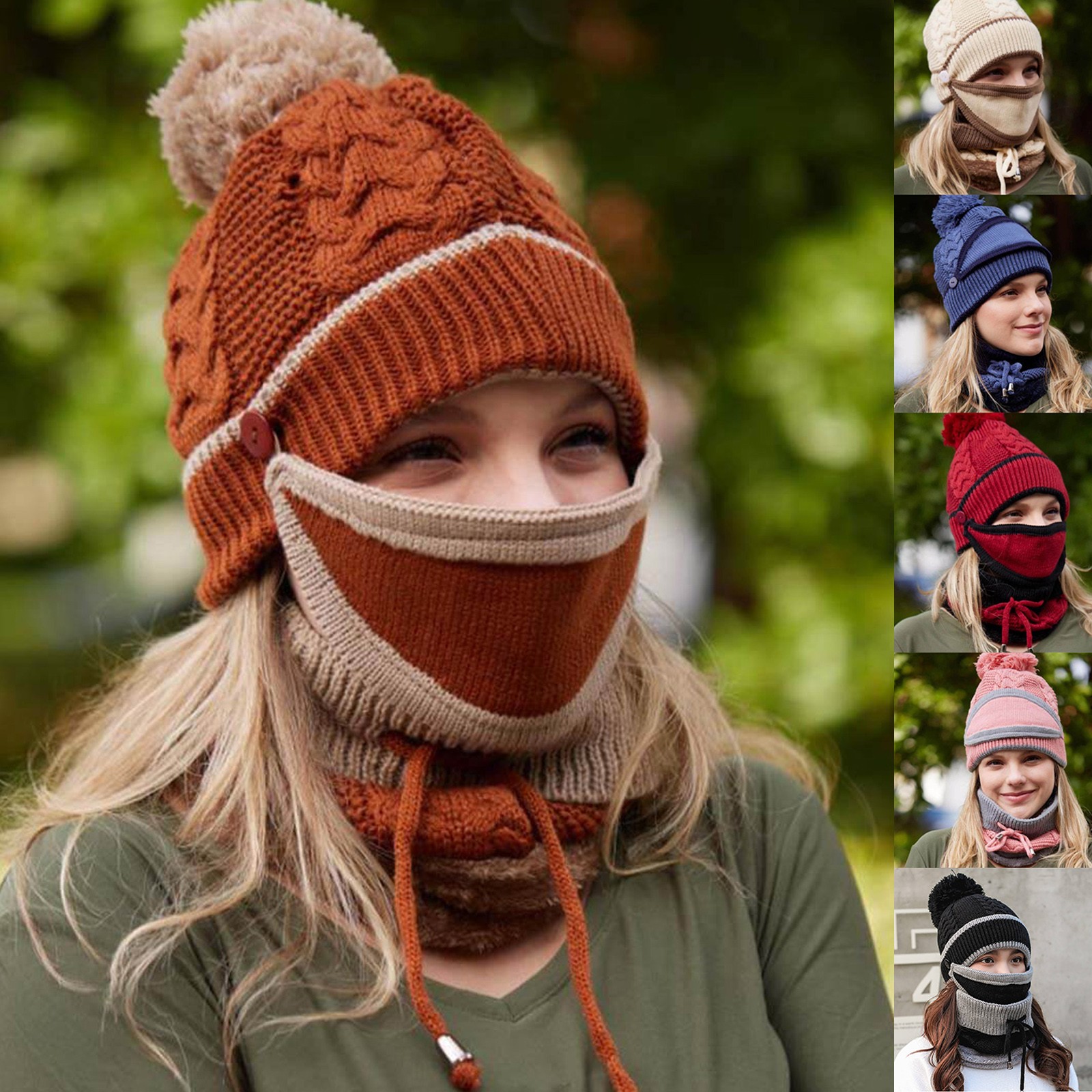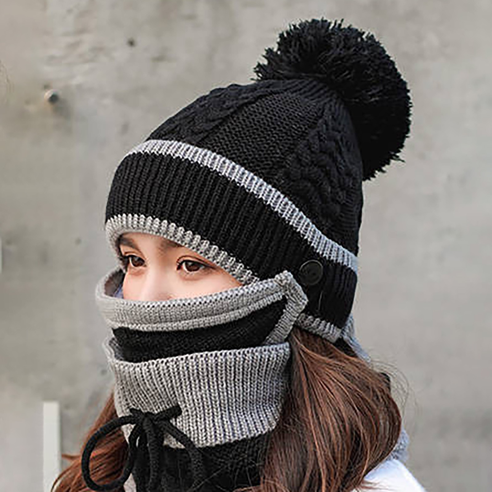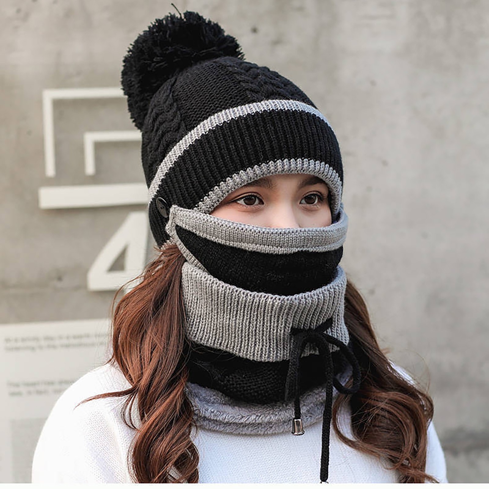 Женская модная зимняя теплая и ветрозащитная шапка, шарф, маска для улицы, костюм из трех предметов