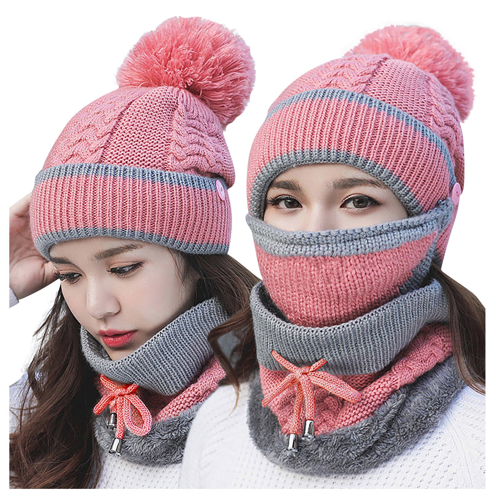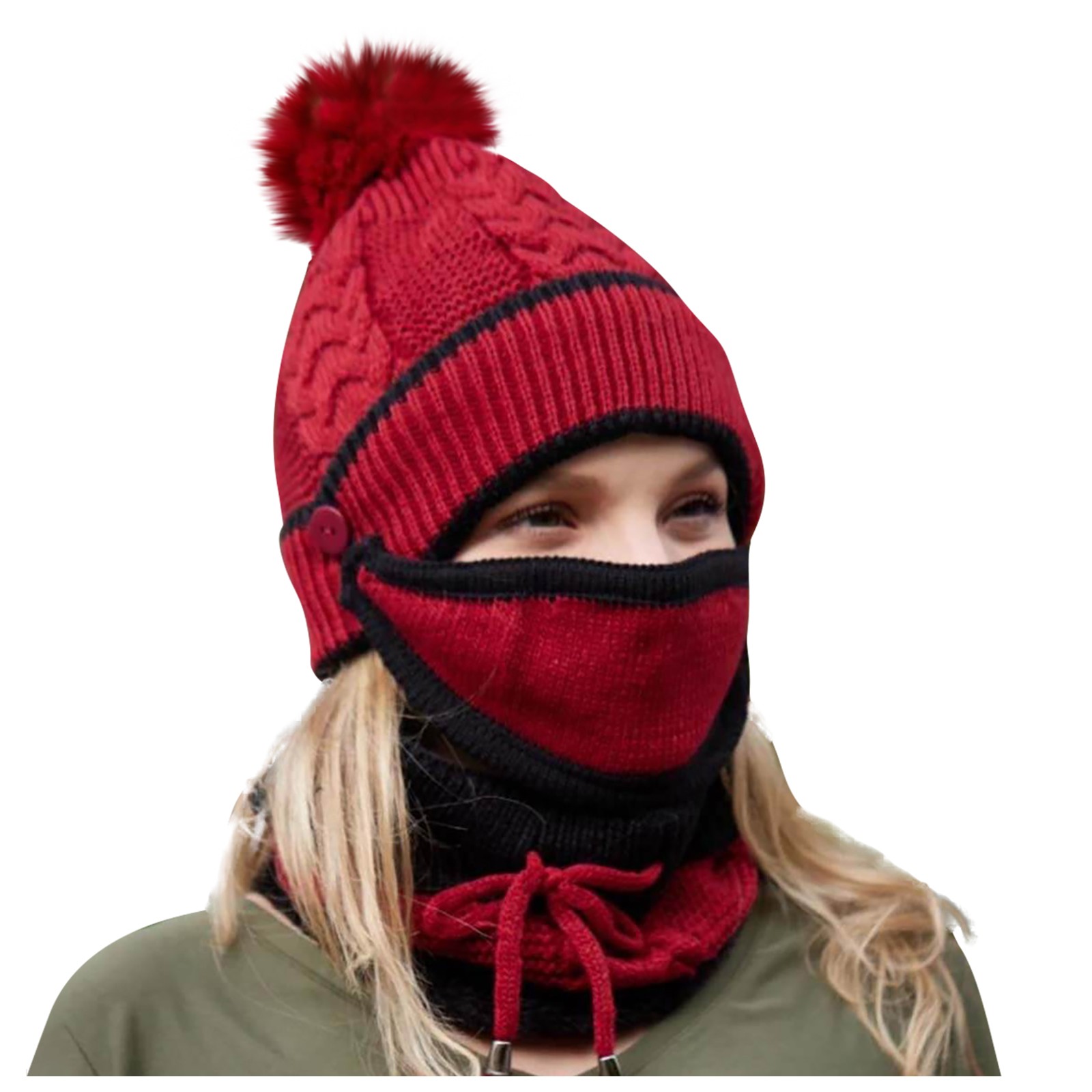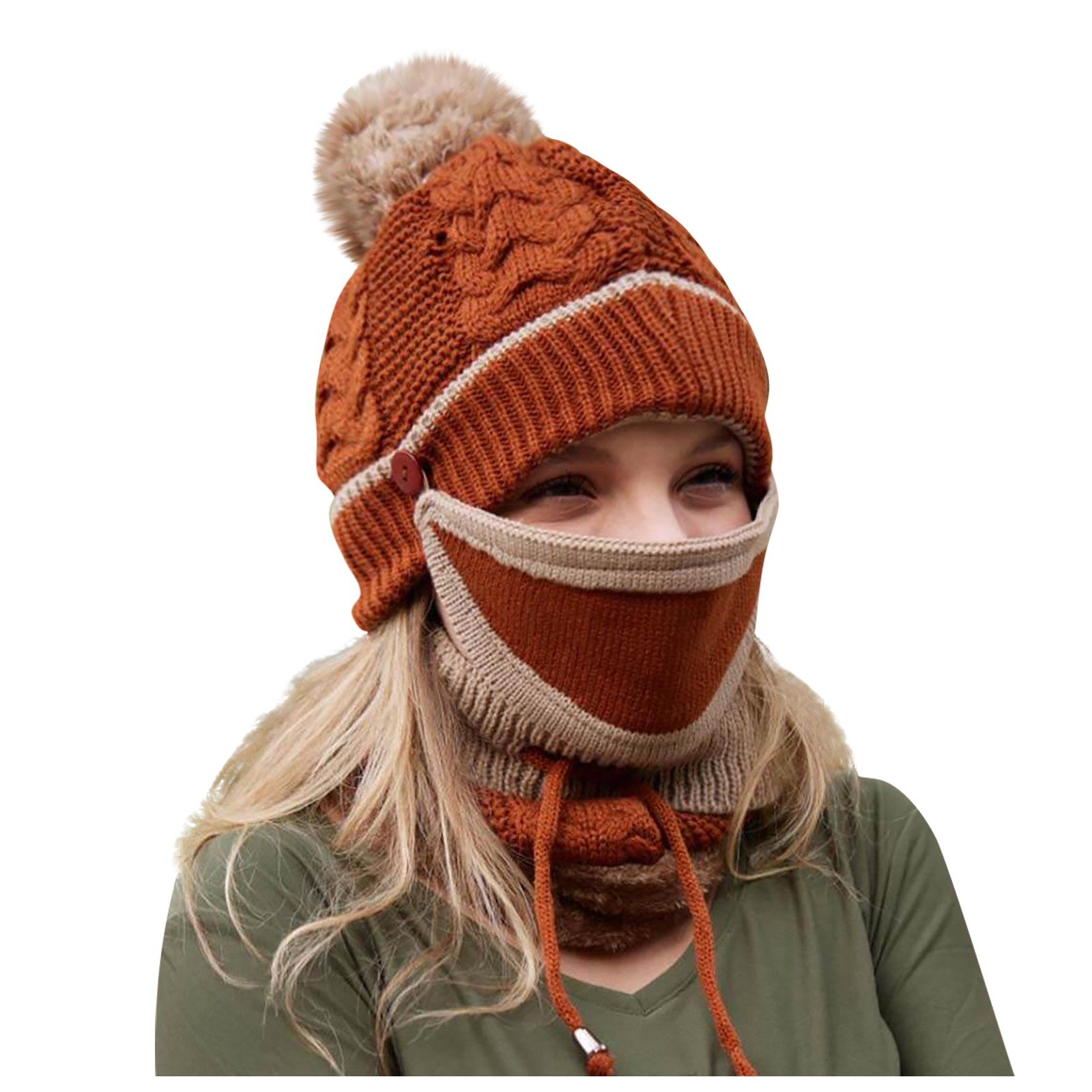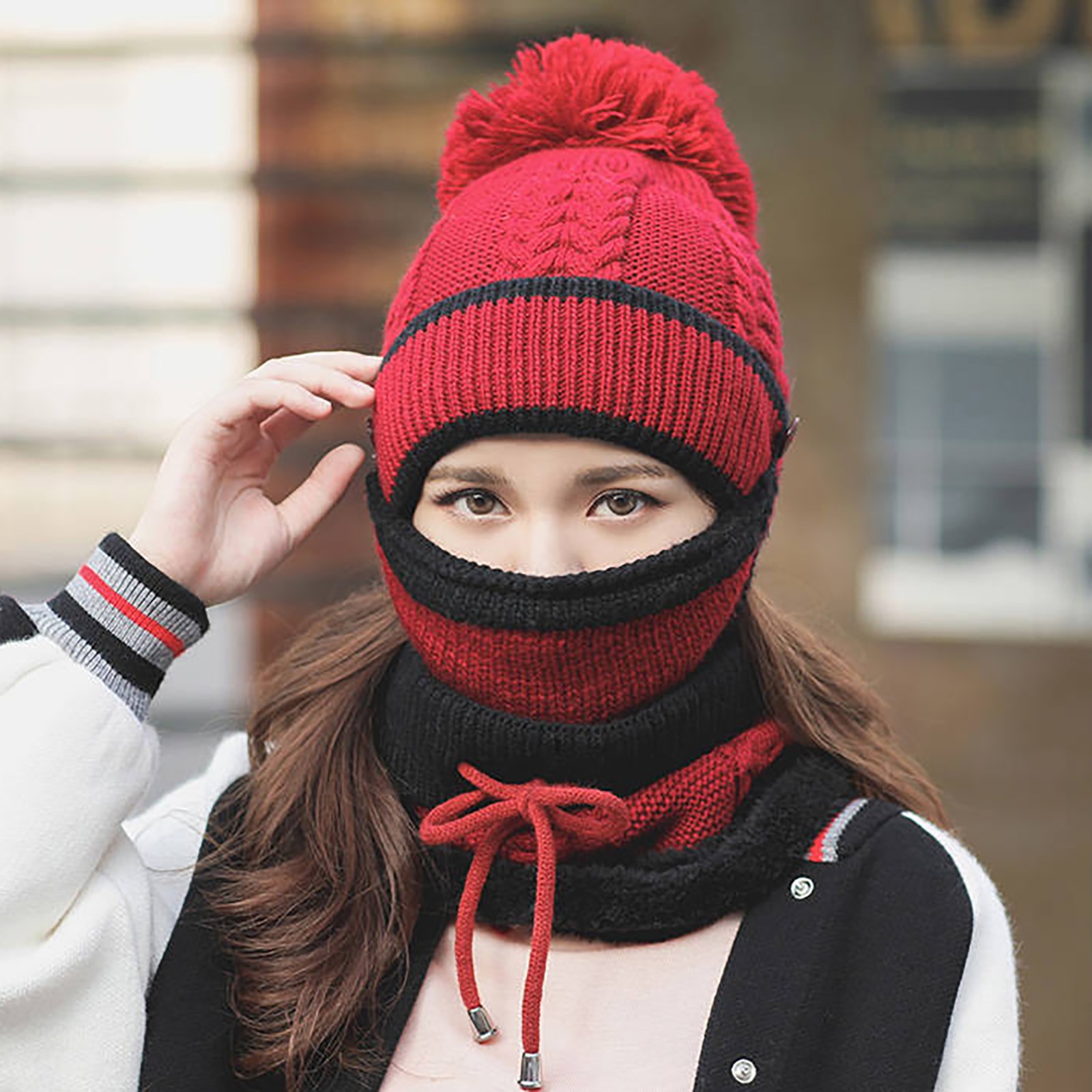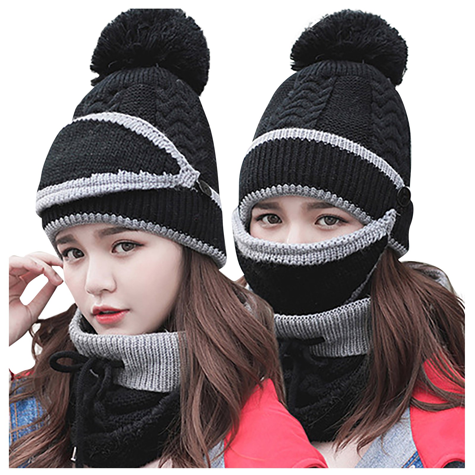 Женская модная зимняя теплая и ветрозащитная шапка, шарф, маска для улицы, костюм из трех предметов