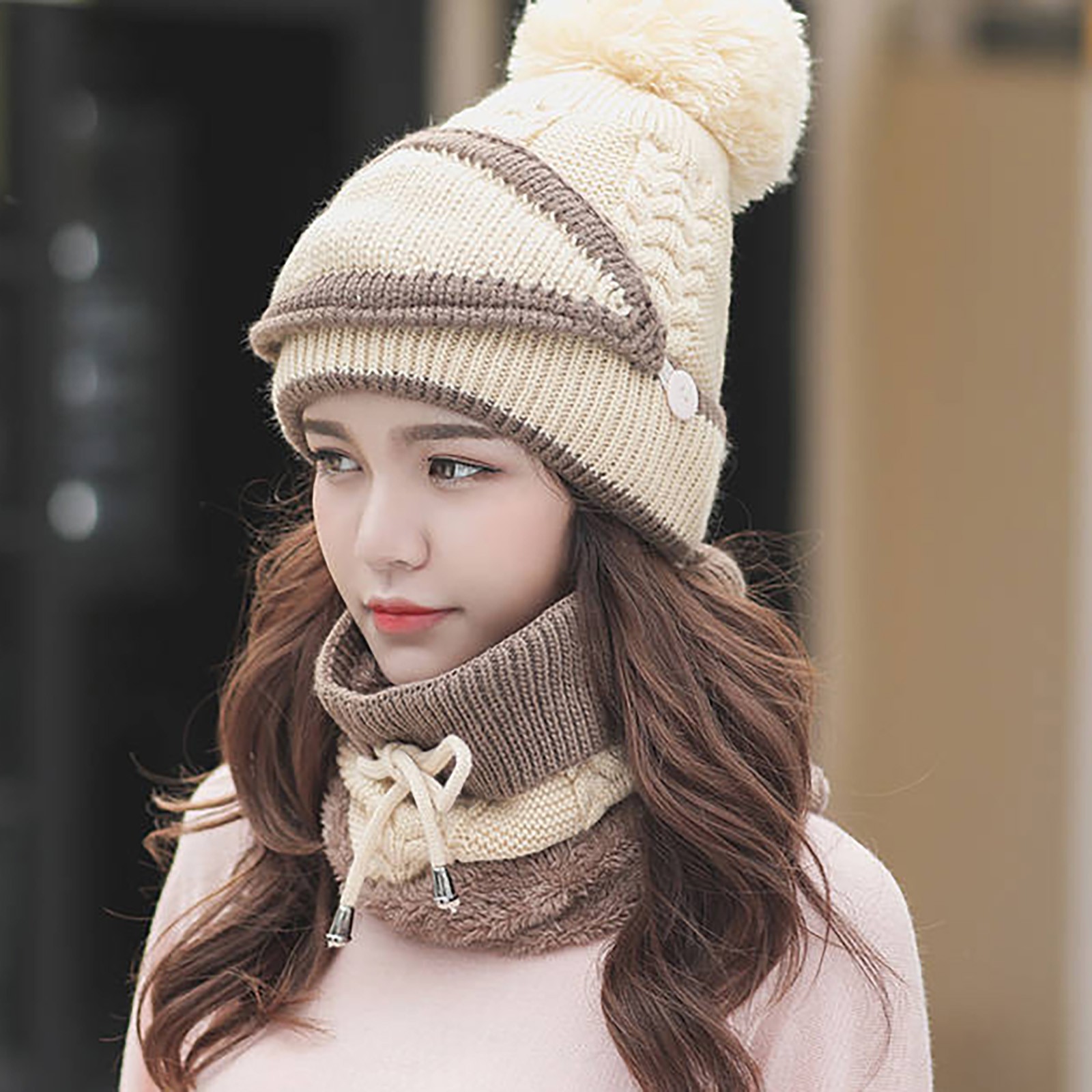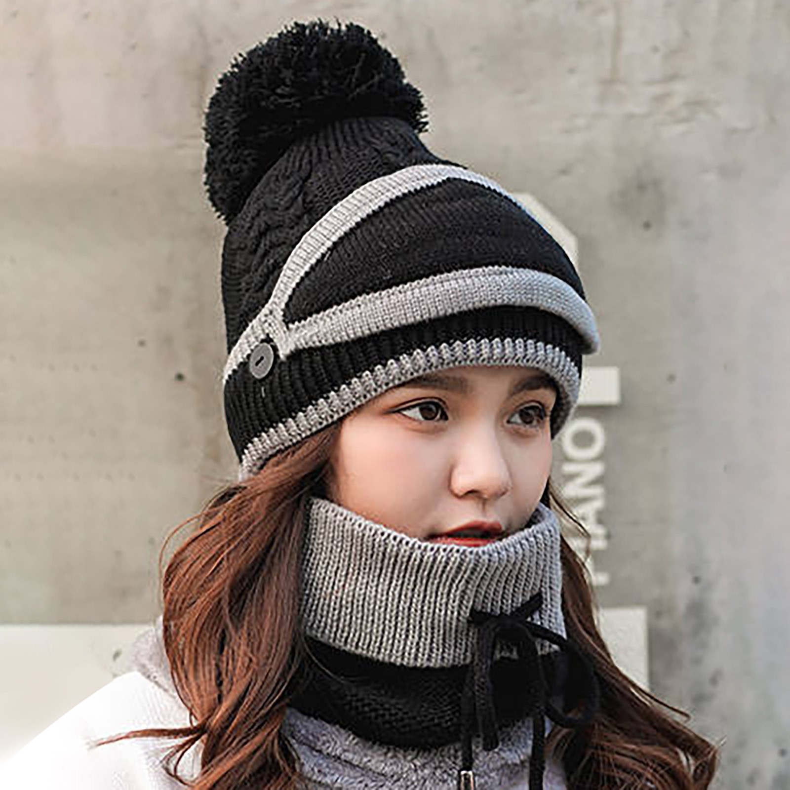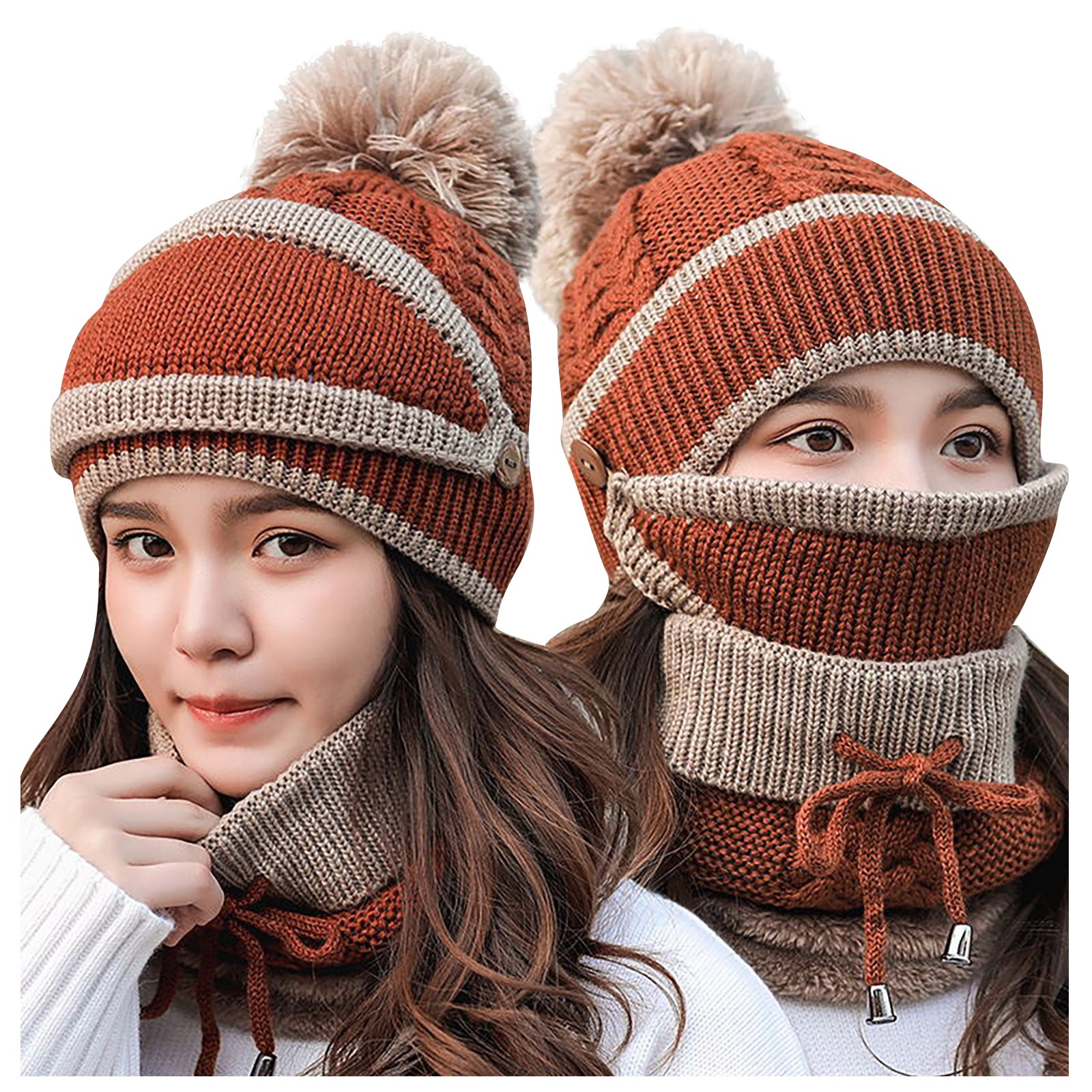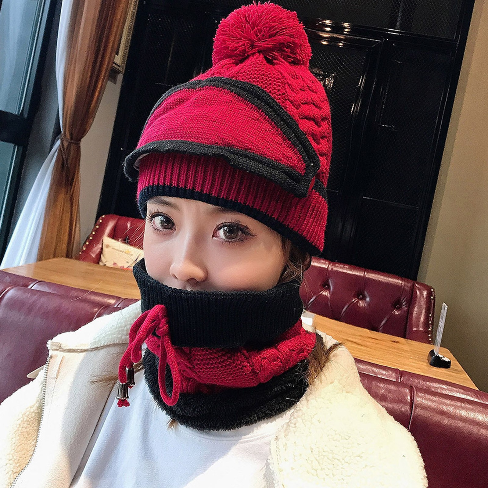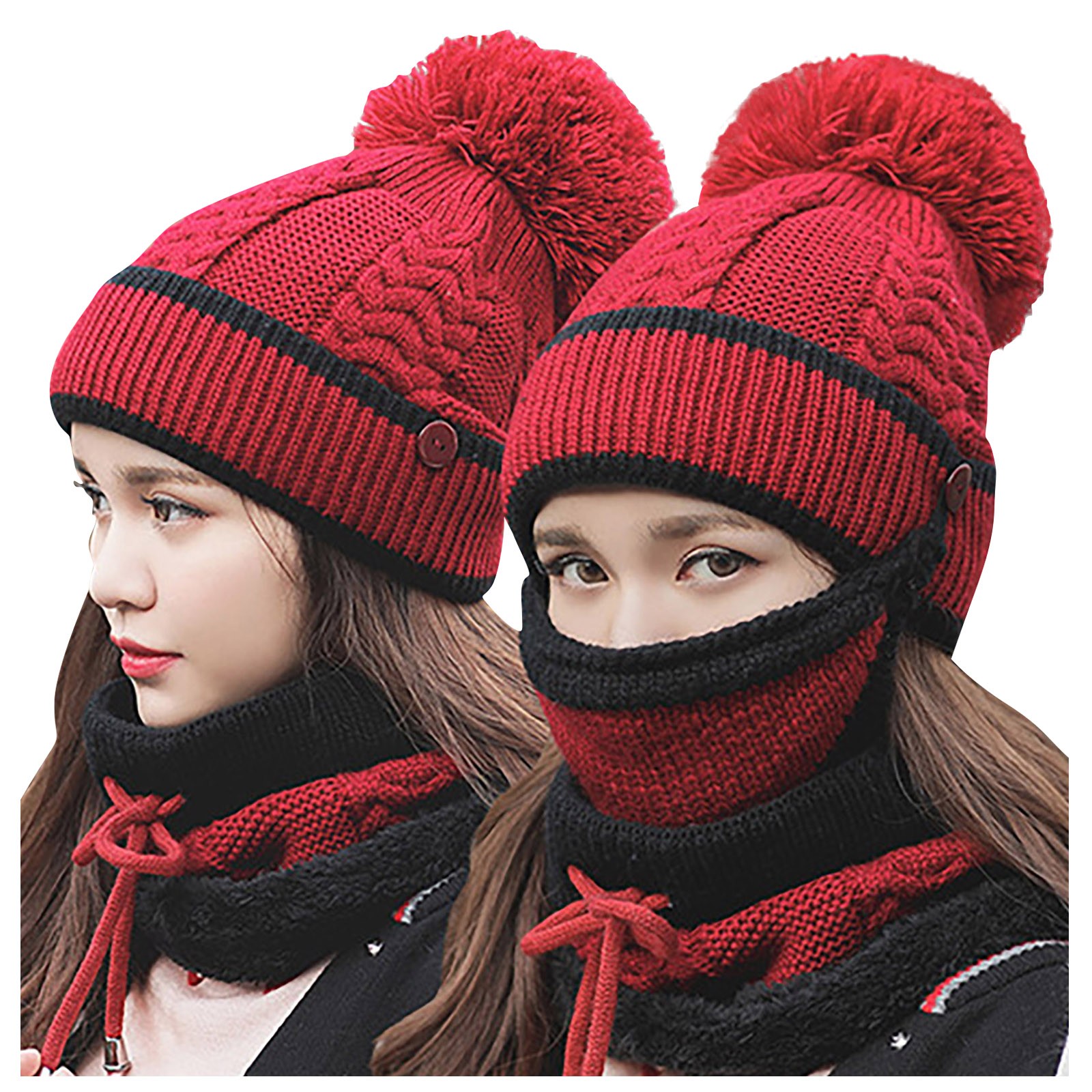 Женская модная зимняя теплая и ветрозащитная шапка, шарф, маска для улицы, костюм из трех предметов