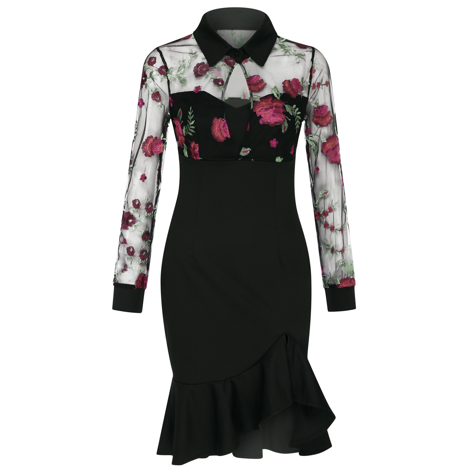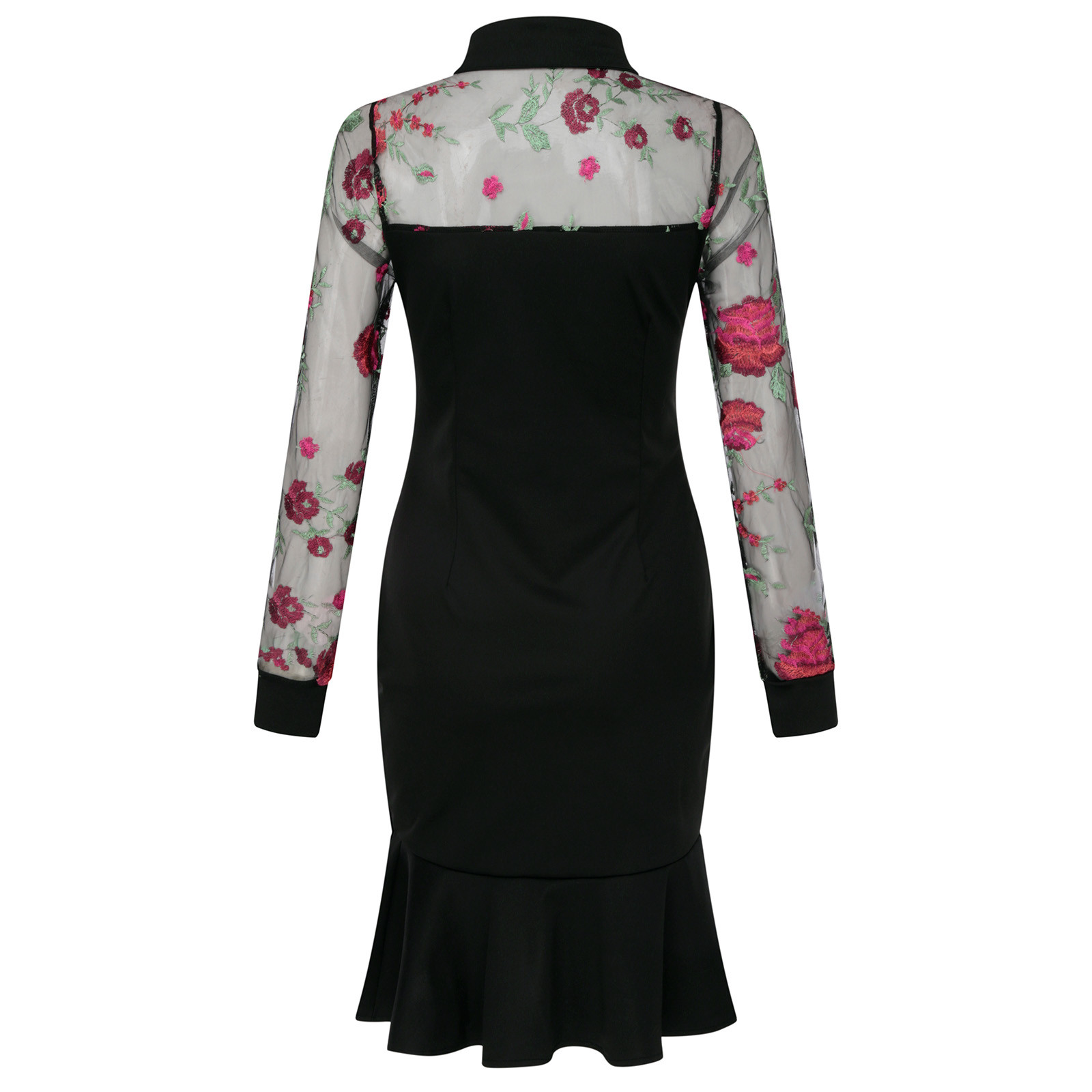 Выходы. Это платье с длинными рукавами и воротником-стойкой с цветочным рисунком