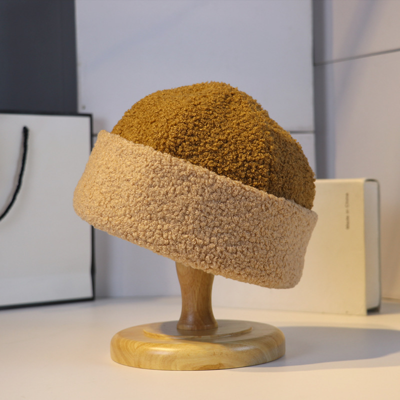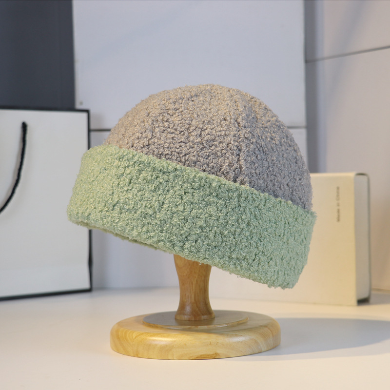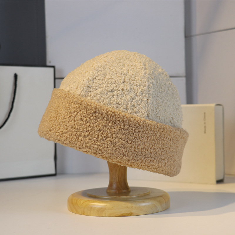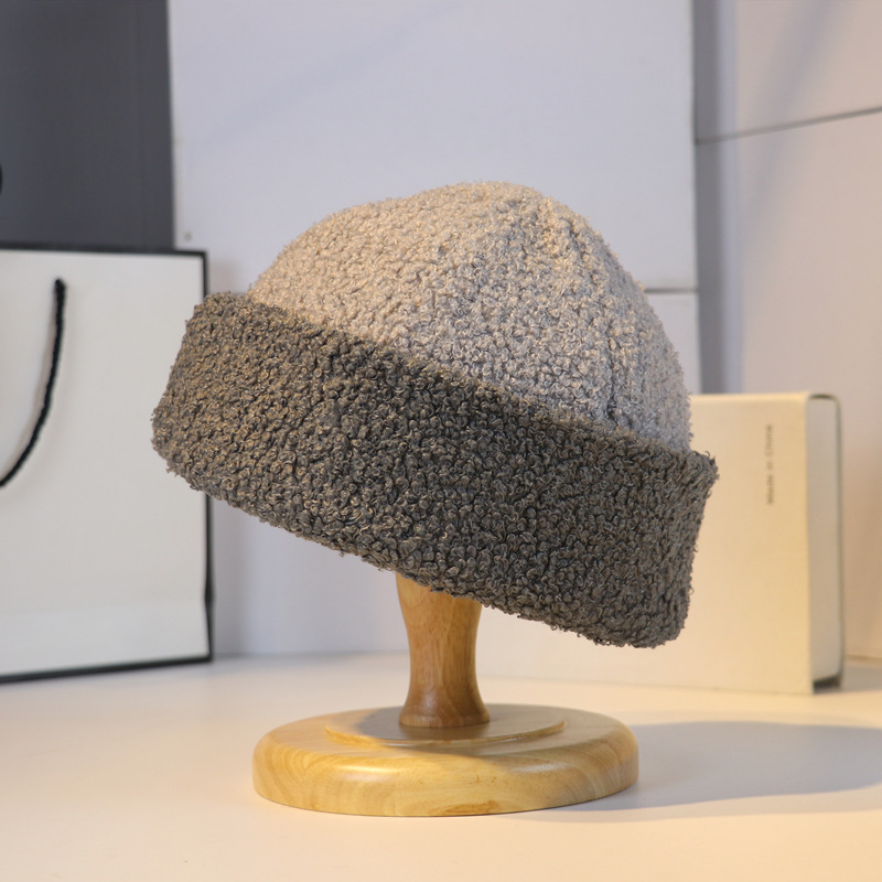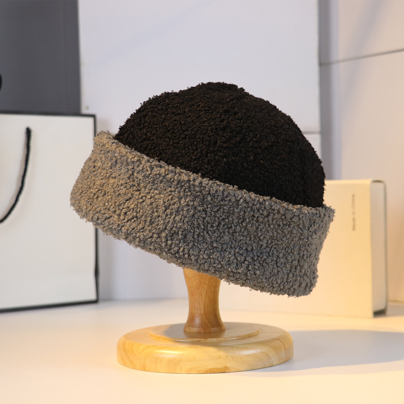 Шапка-бини шапка для женщин черная полосатая вязаная пустая плюс бархатная
