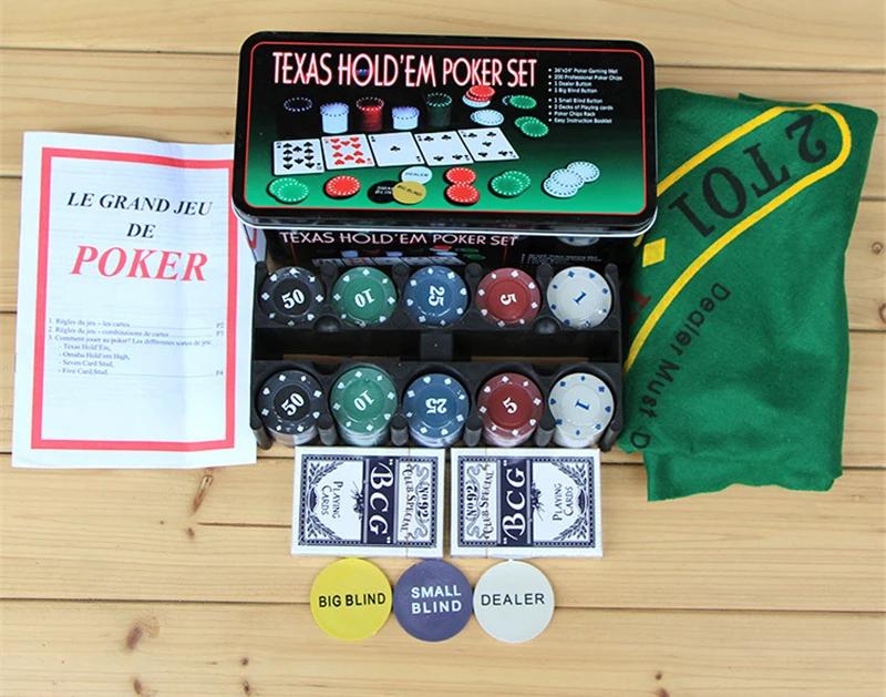 Портативный техасский холдем покер 200 шт набор с фишками покера/скатерти/слепой металлический бокс игра для азартных игр настольные игры Вечерние