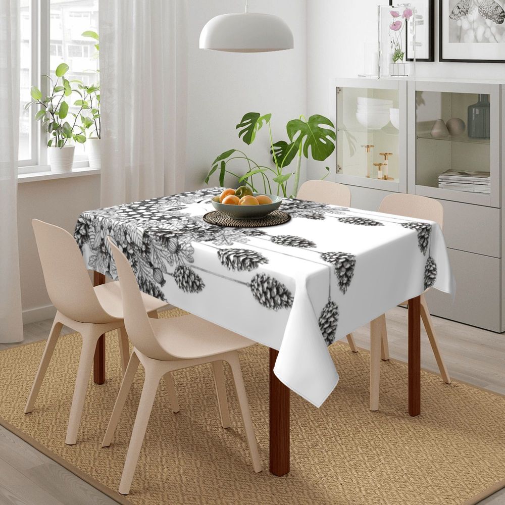 Скатерть из хлопка и льна с вышивкой в клетку | Дом сад