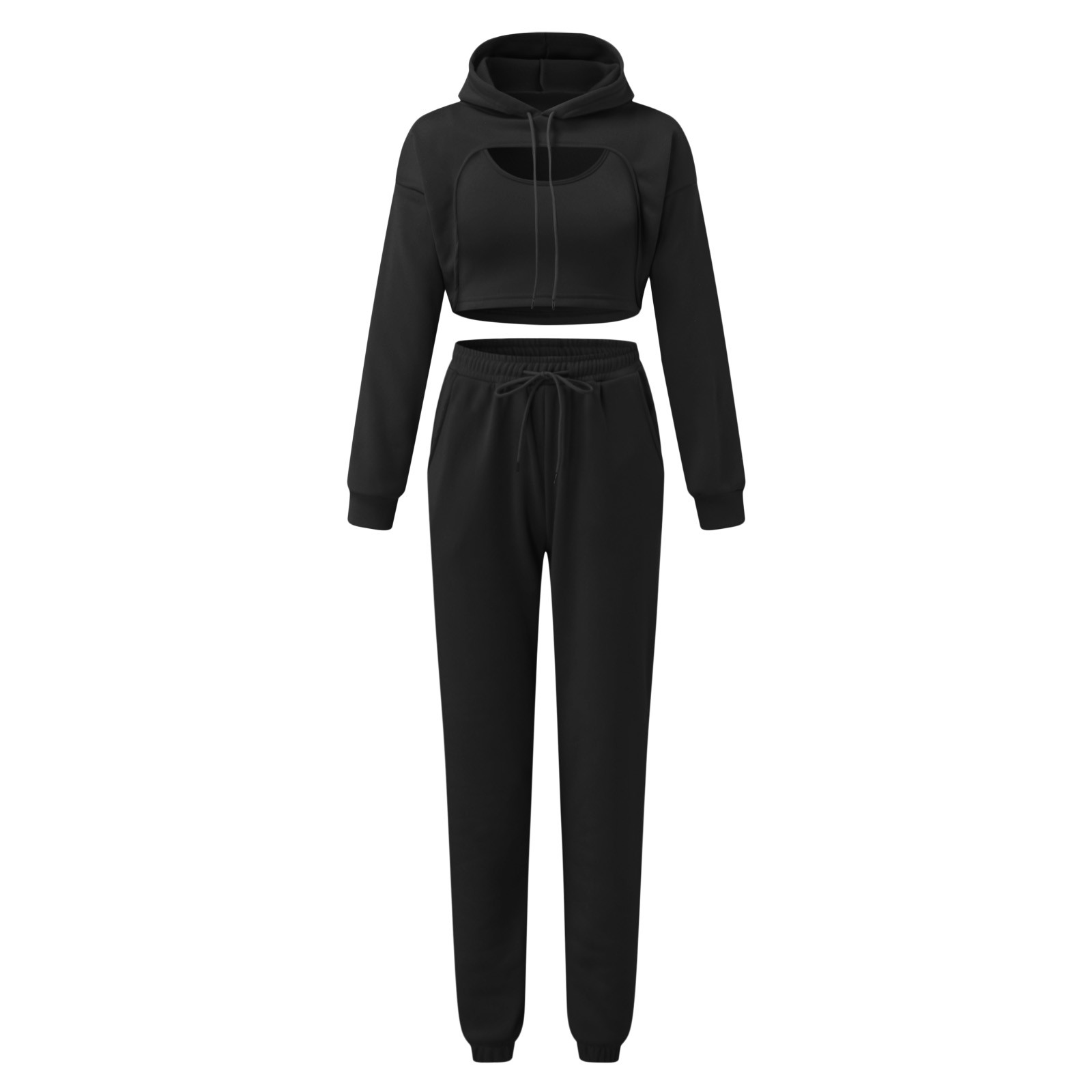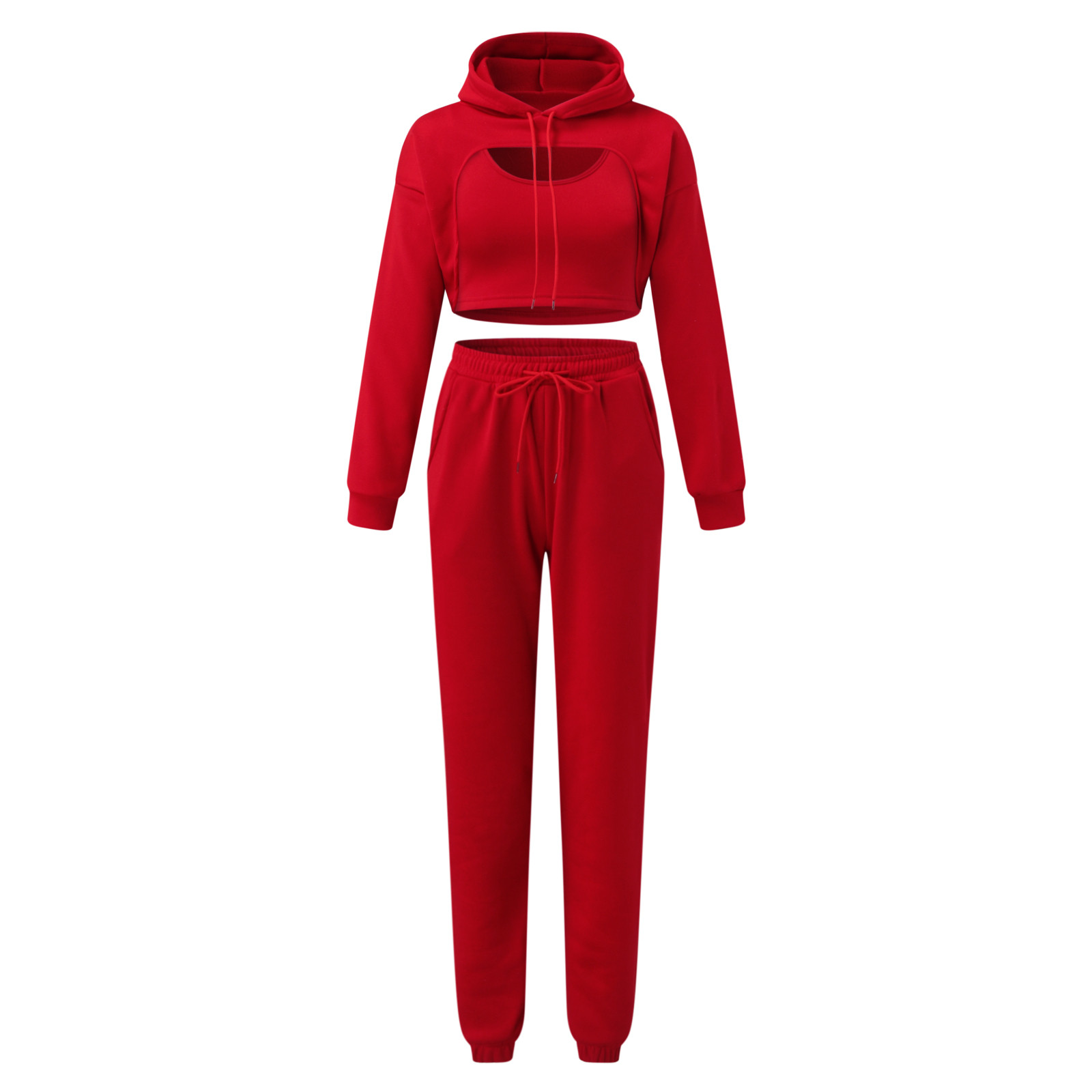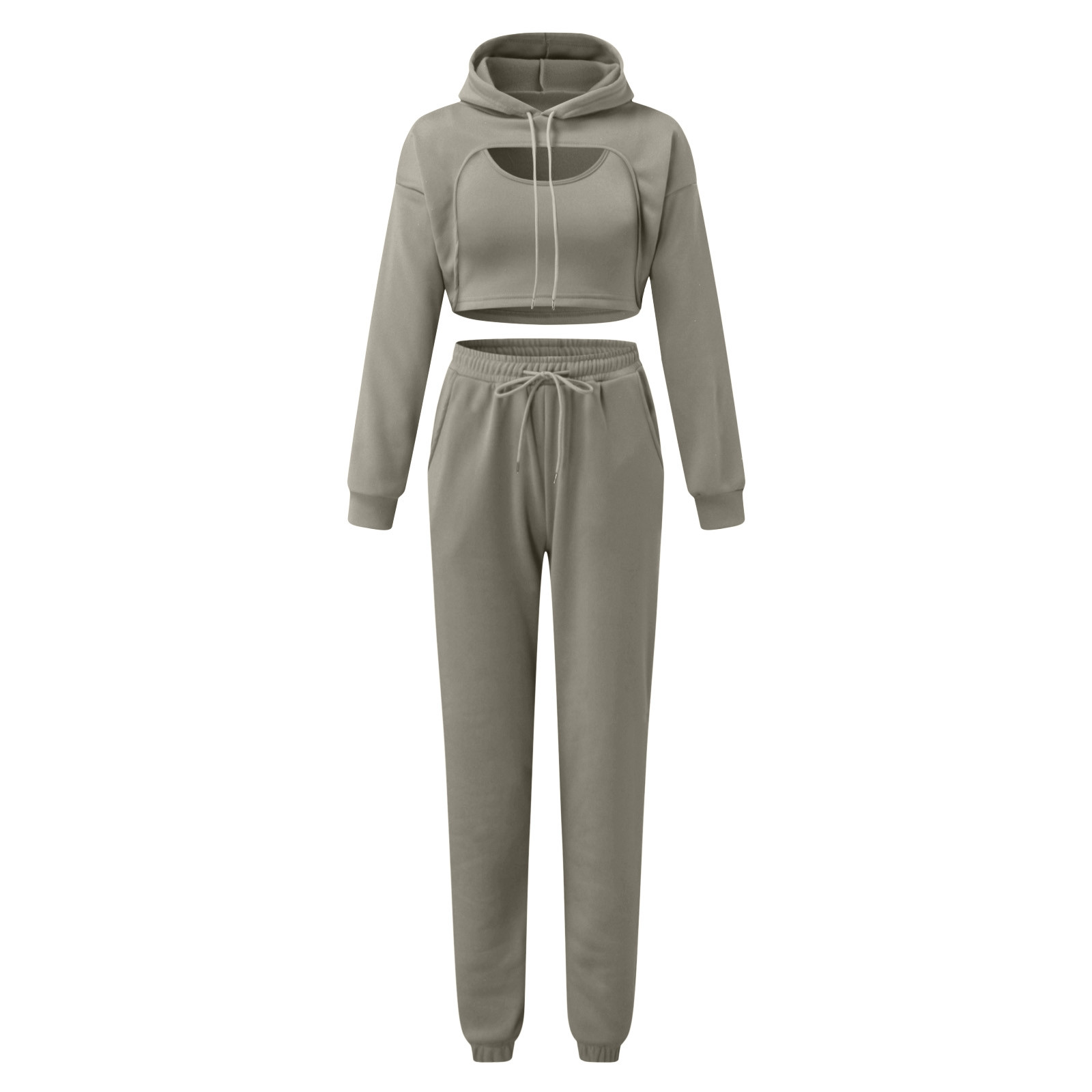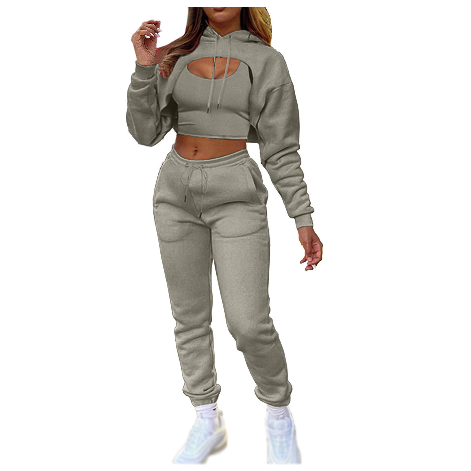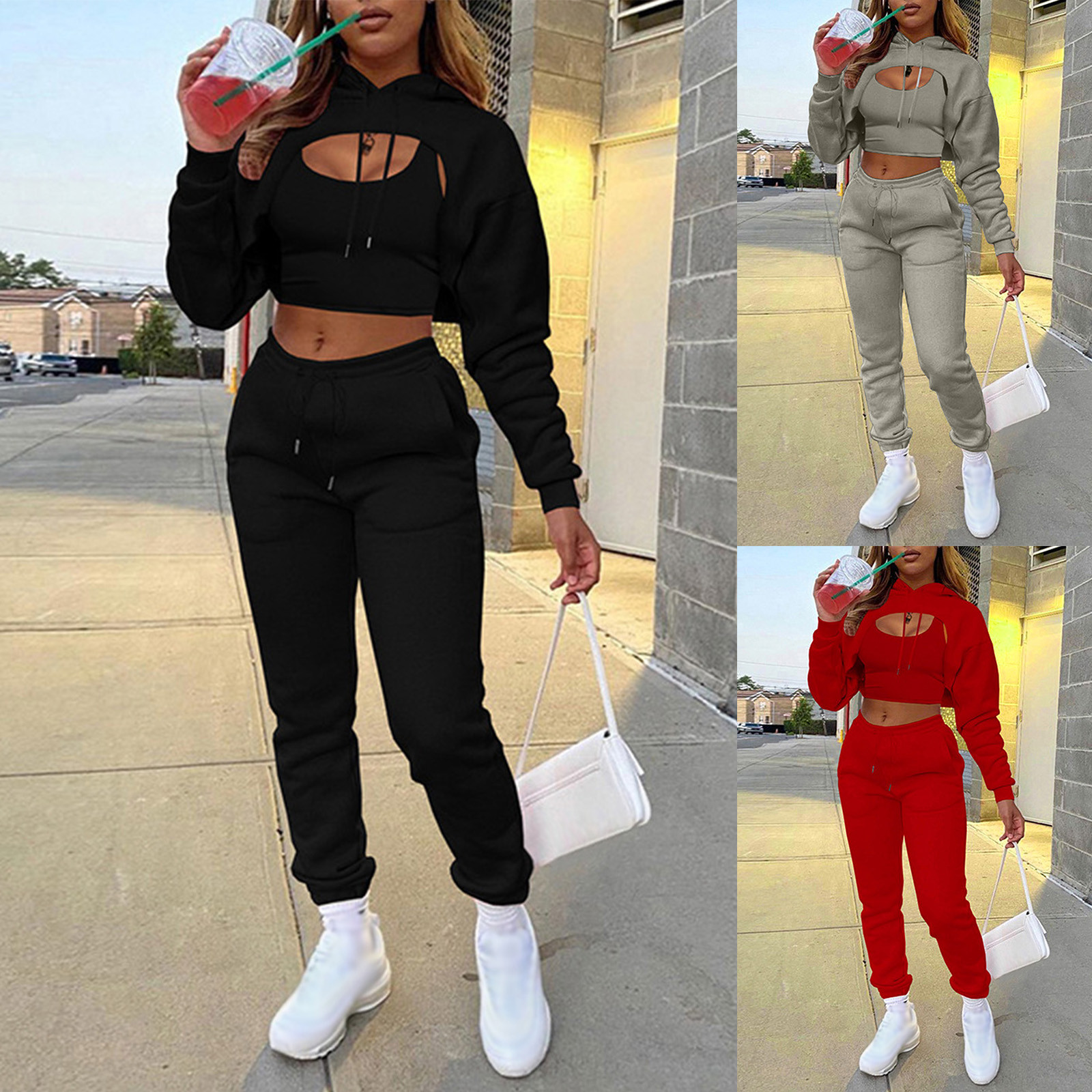 Дизайн: Комплект из трех предметов: укороченный свитер с длинными рукавами Толстовка с капюшоном, жилет и длинные спортивные штаны с двумя наклонными карманами спереди Брюки с эластичной резинкой на талии, всегда готовы к ежедневной ходьбе, пробежке, спорту и Тренировочный костюм; Комплект со штанами для бега; Сезон осень-зима-весна