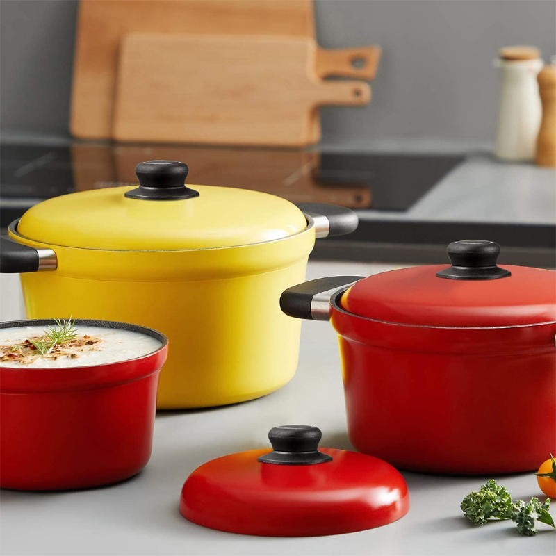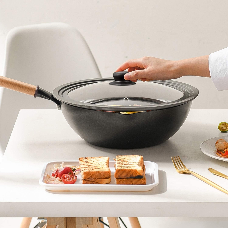 The pan lid holding handles are made of bakelite, durable and sturdy, heat-resistance and lightweight.