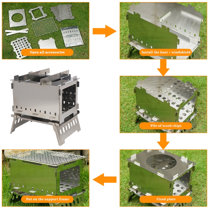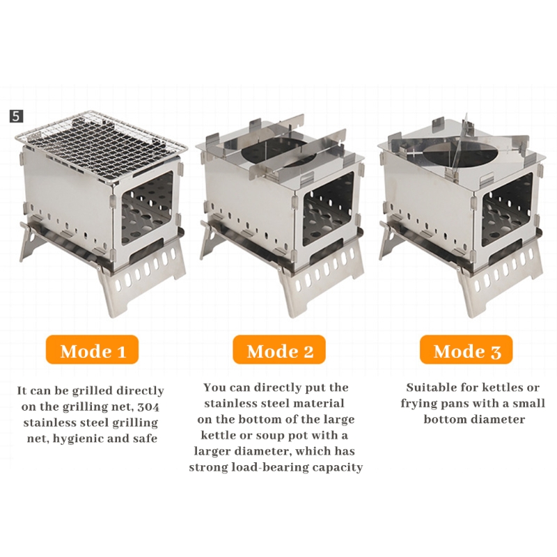Гриль для кемпинга и барбекю Портативная Складная угольная печь из нержавеющей стали