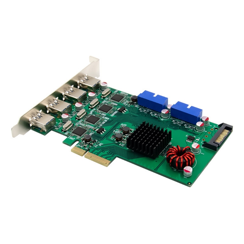 Обеспечивает 4 независимых порта USB 3,0 с общей пропускной способностью 20 Гбит/с. Скорость передачи каждого интерфейса USB 3,0 составляет до 5 Гбит/с; 4 внешних порта USB 3,0, в 10 раз быстрее, чем USB2.0; PCI-E X4 дизайн, совместим с PCIE X4, X8, x16 слотами.