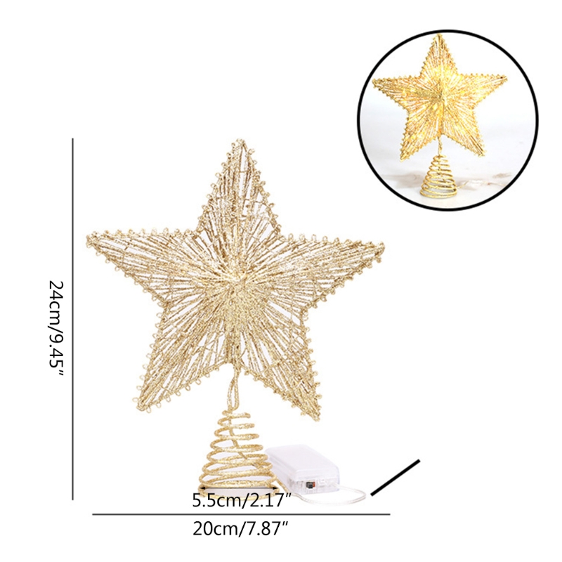 Он имеет 3D пятиконечную звезду с светодиодный подсветкой внутри. И он покрыт большим количеством блестящего материала на поверхности, что делает ваше дерево очень блестящим под светильник. Добавляет красивый и элегантный стиль вашей рождественской елке и сделает ваш дом более красивым.