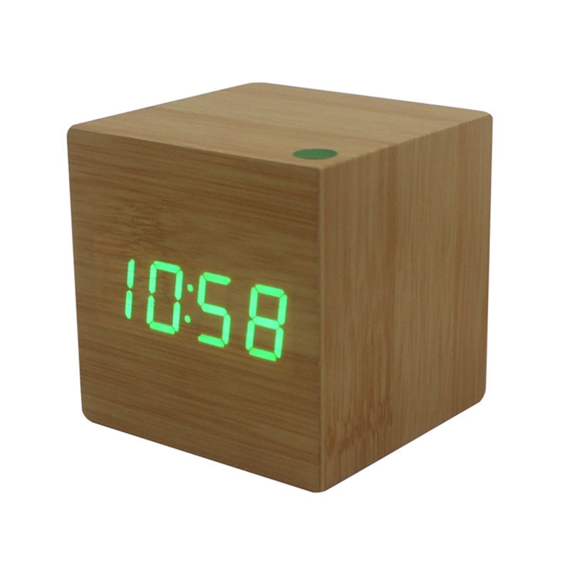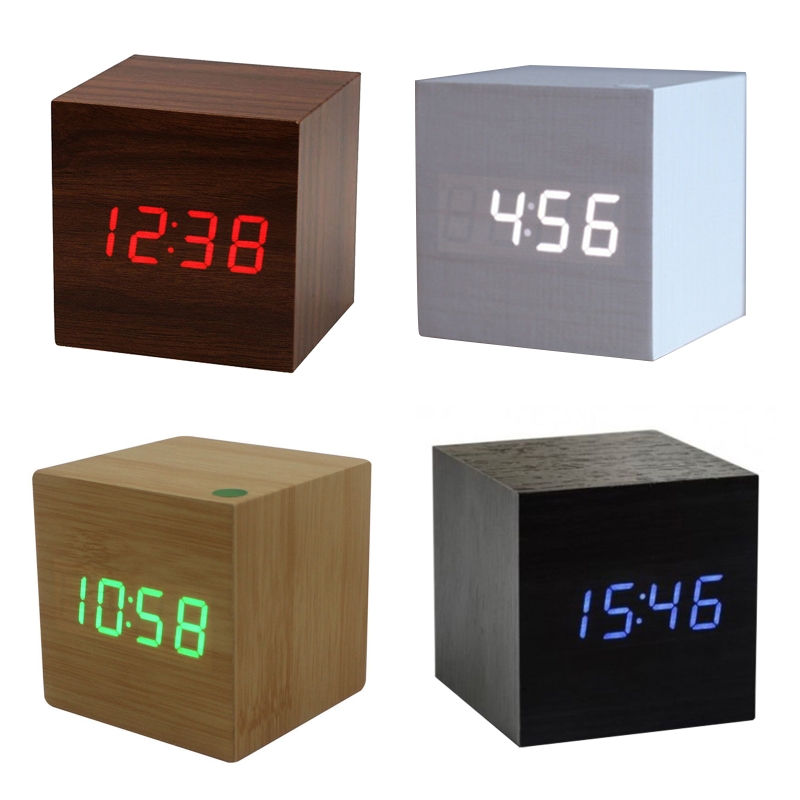 Wooden Led Alarm Clock Electronic Digital Display Time Clock Mute Cube Clocks for Home Bedroom Dormitory Waking Up