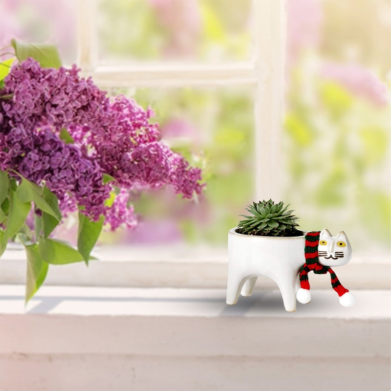 Посылка включает в себя: 1x цветочный горшок и 1xcat шарф. (Растения не прилагаются) Размер Кошка горшок для суккулентов составляет около 15x 9 см/5.9x3.5inches.