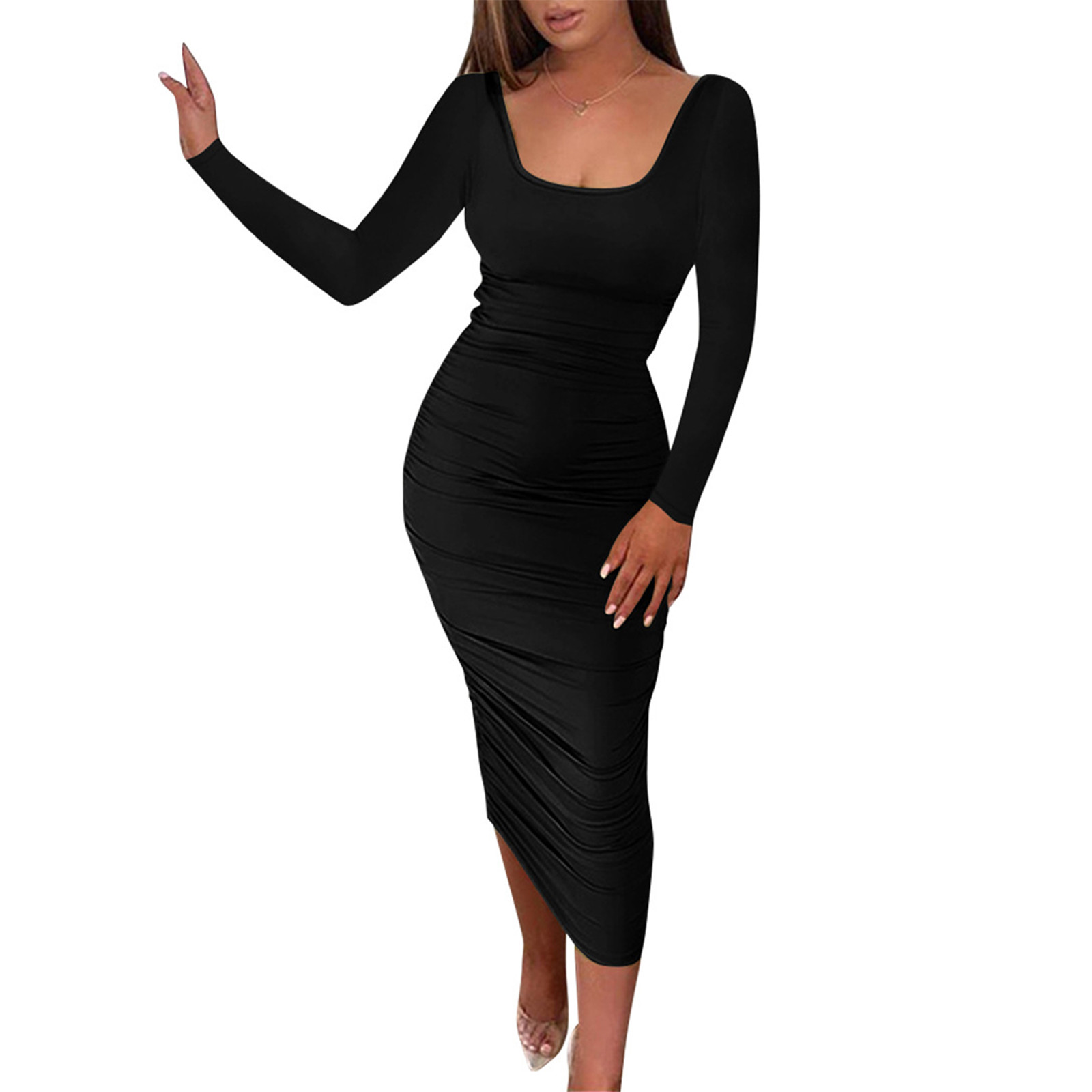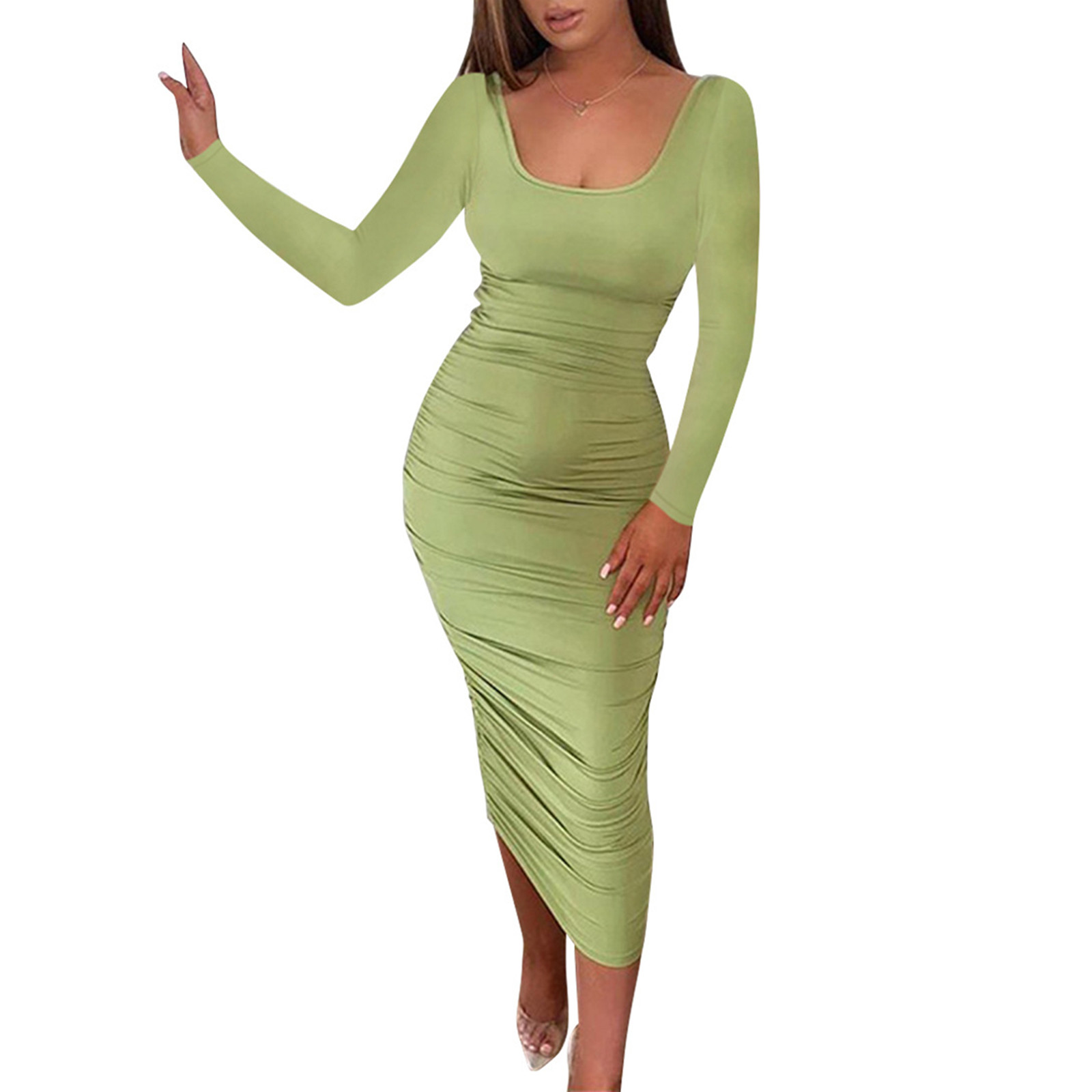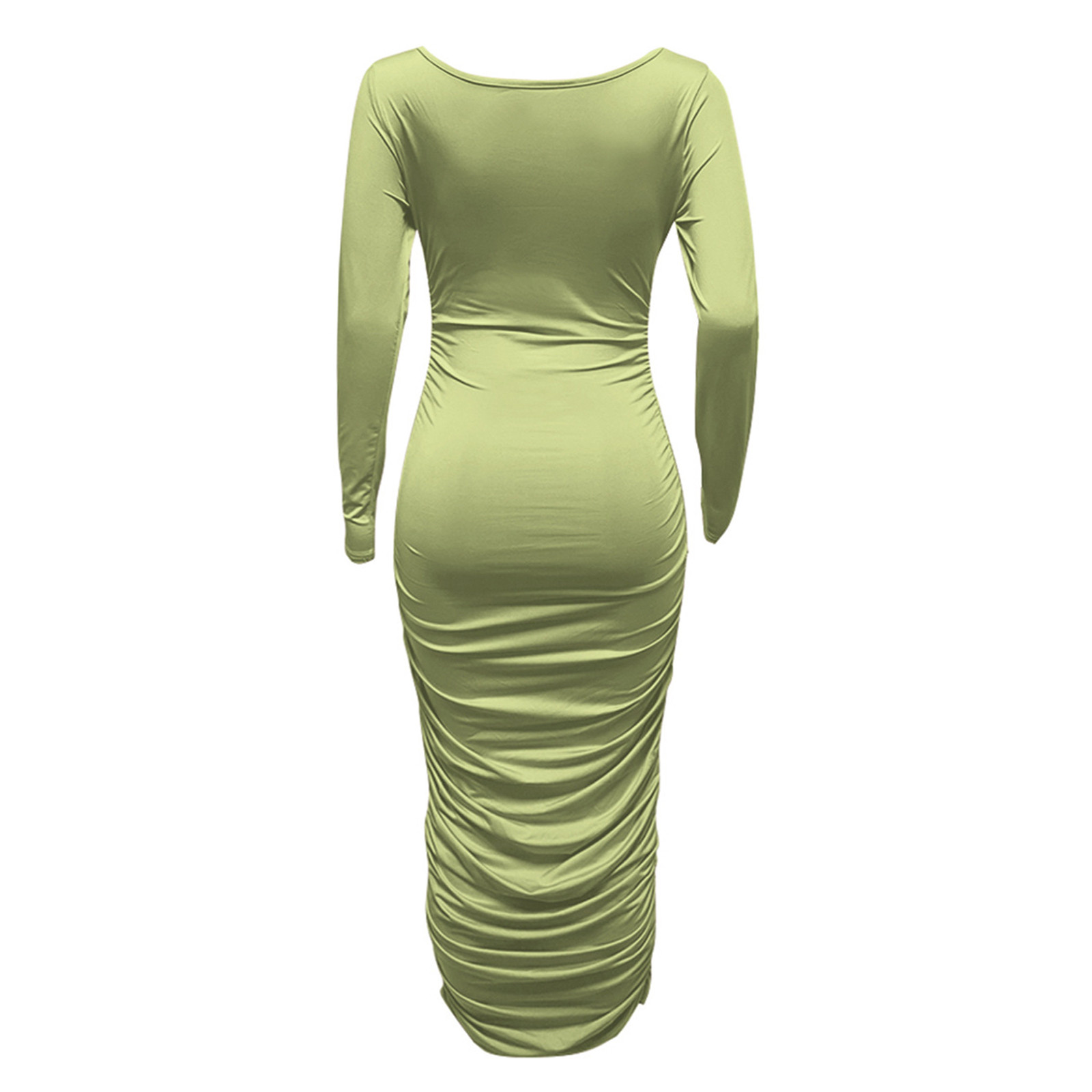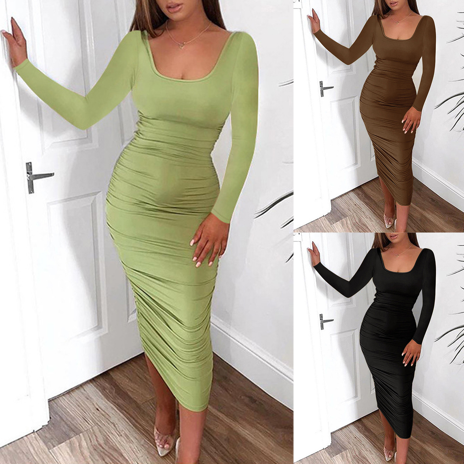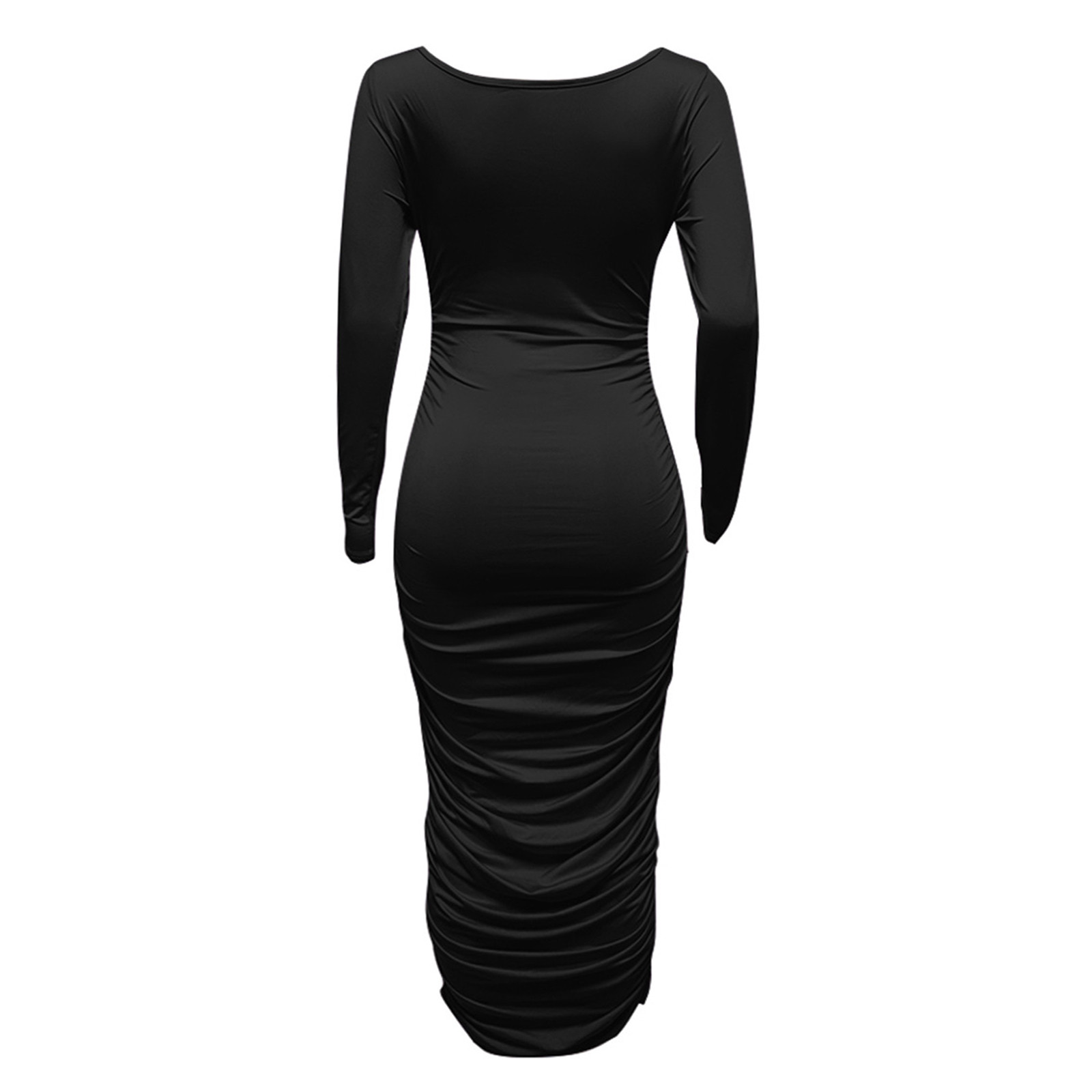 【Уникальный Дизайн 】Твердый, Длинные рукава, женское длинное платье.