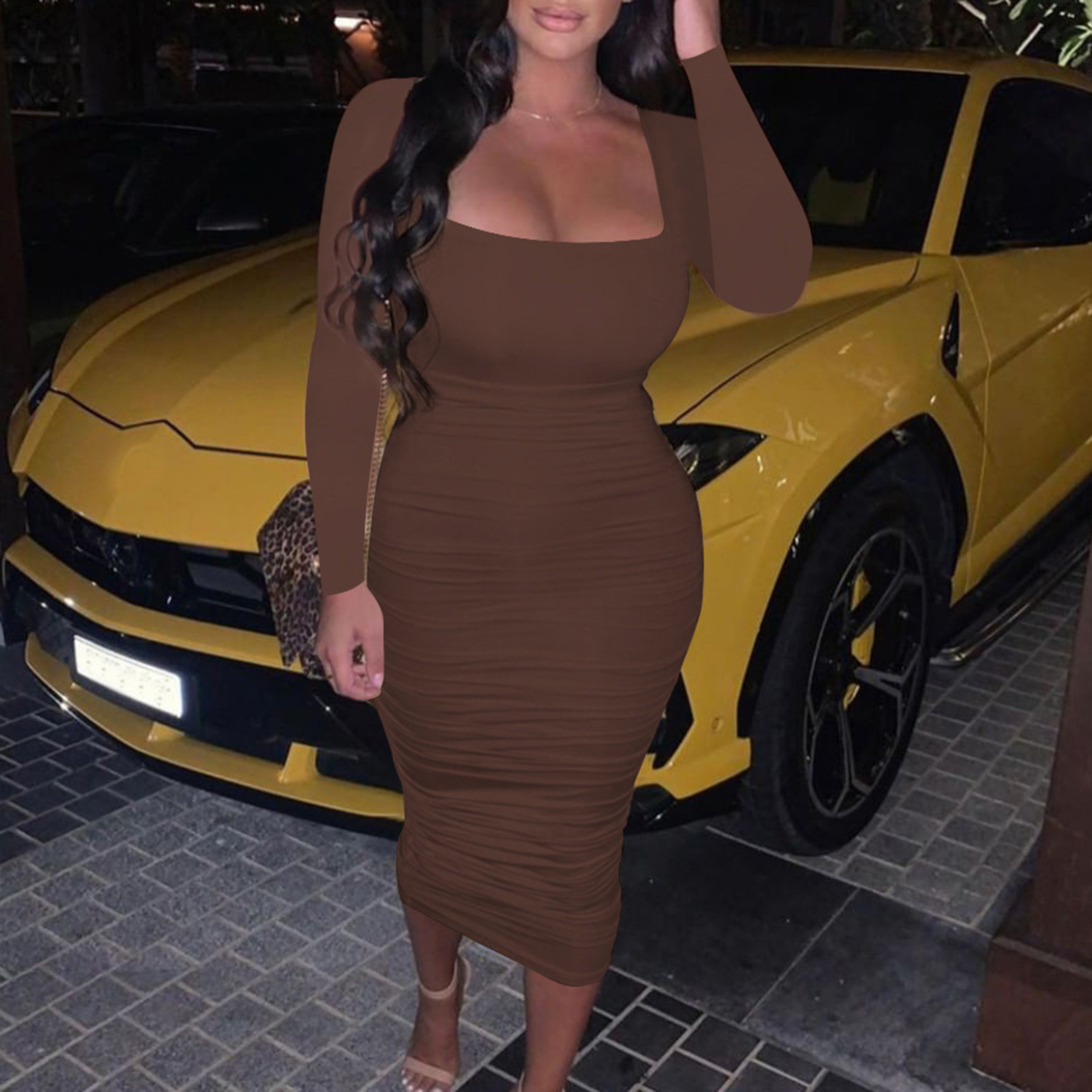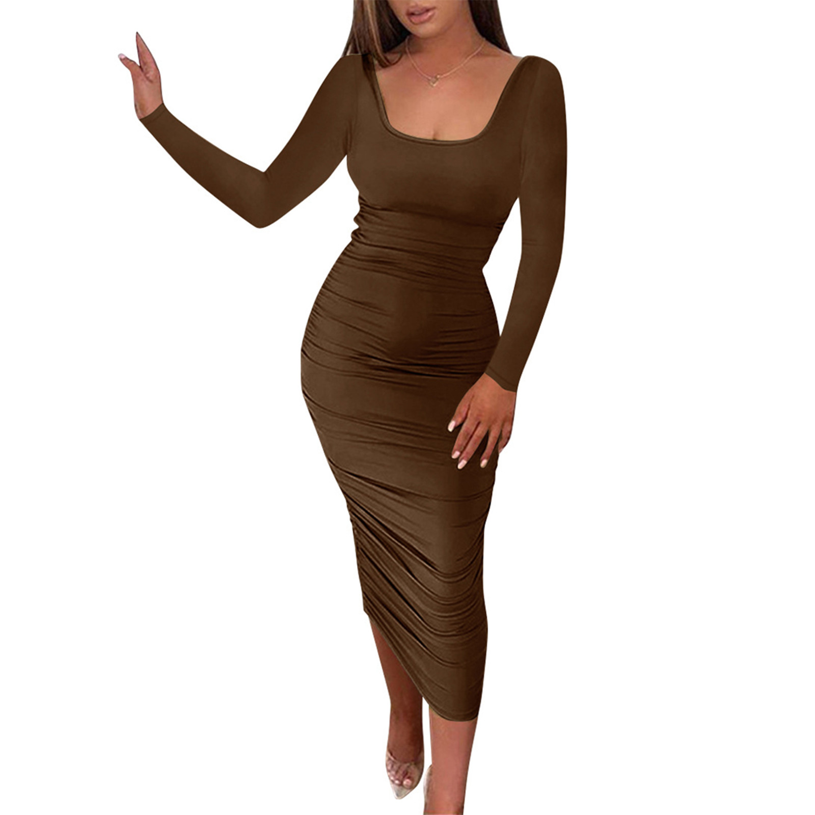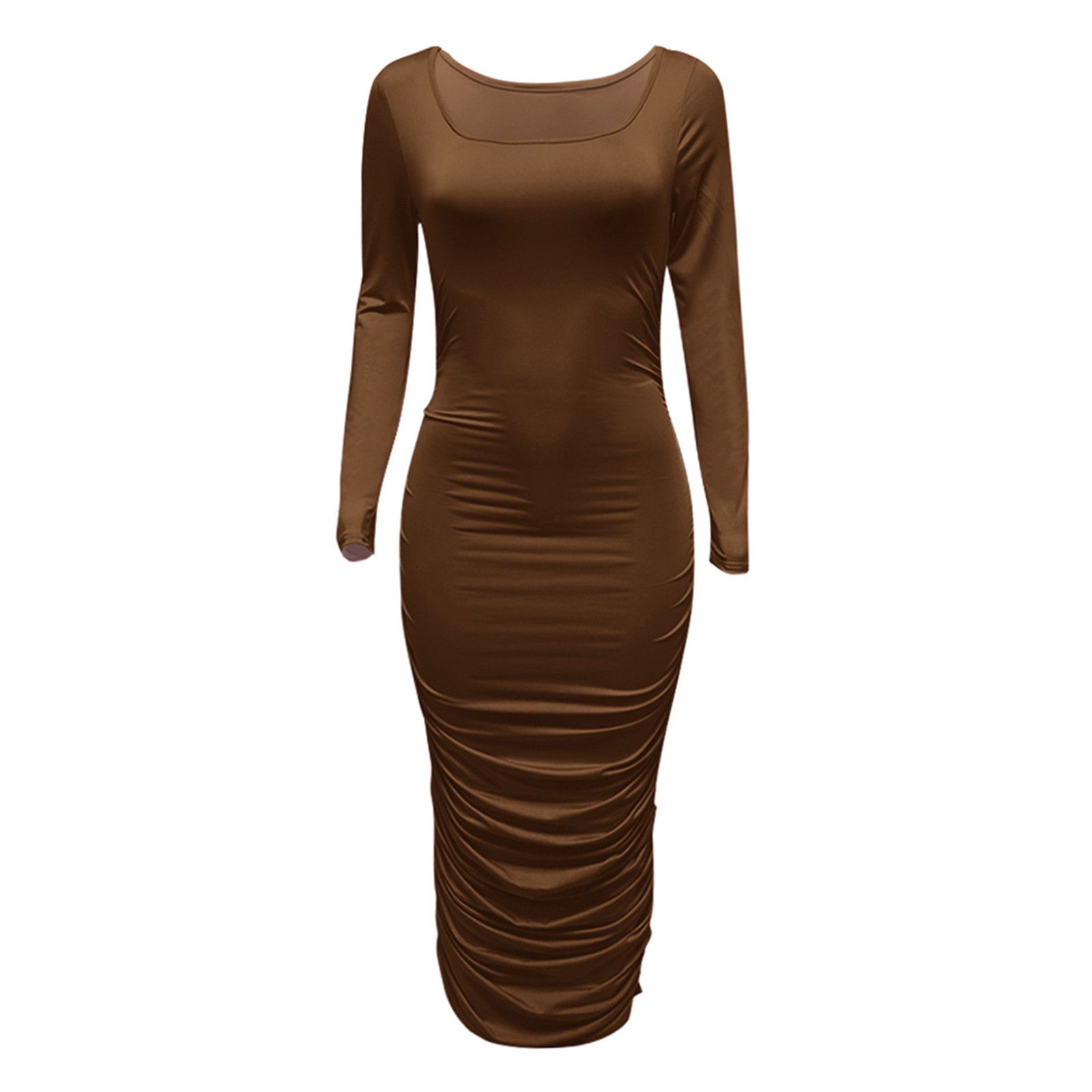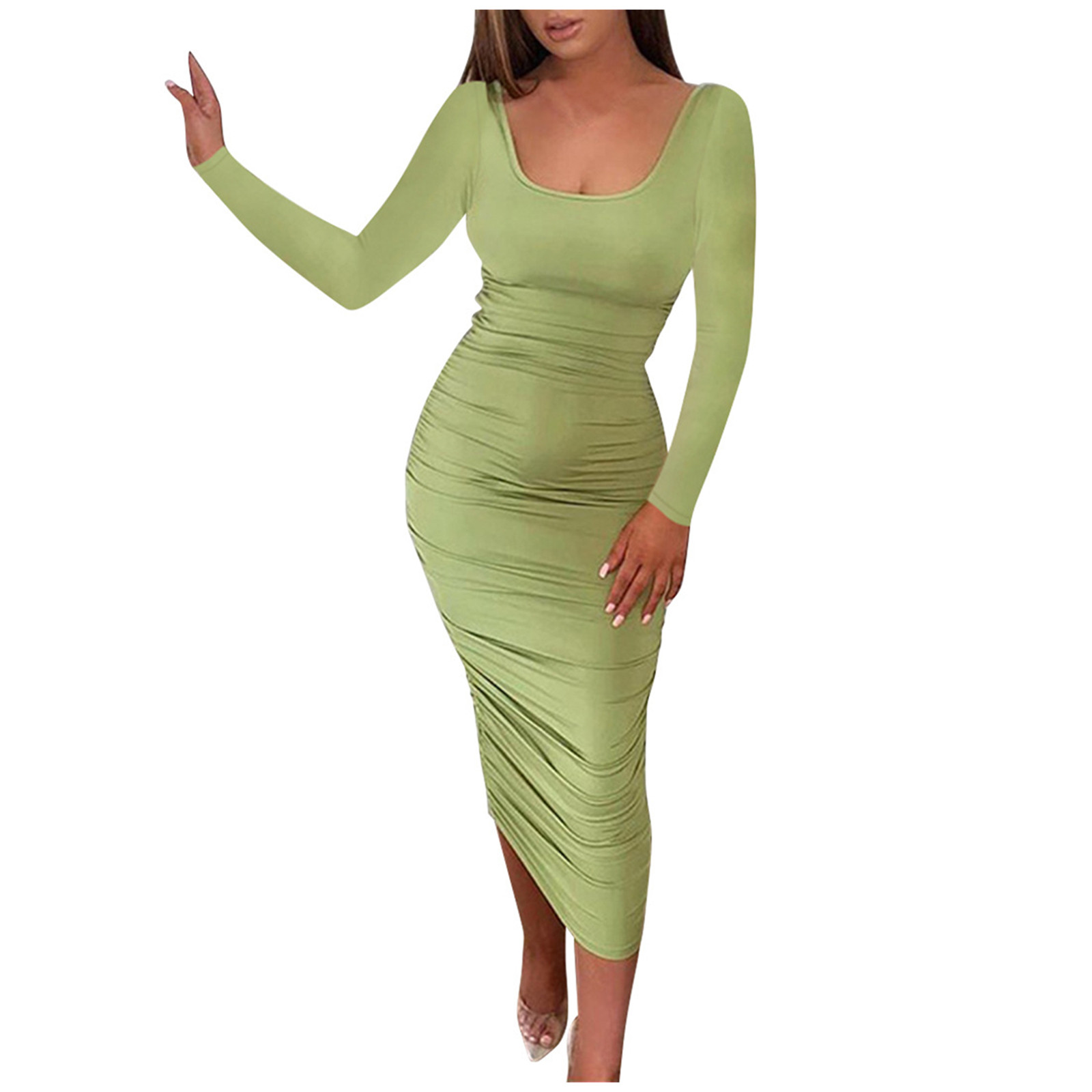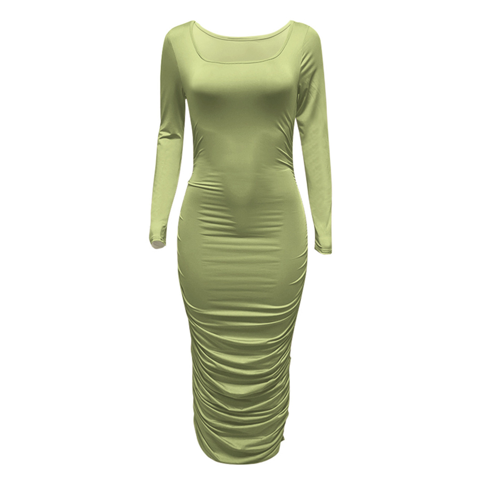 【Уникальный Дизайн 】Твердый, Длинные рукава, женское длинное платье.