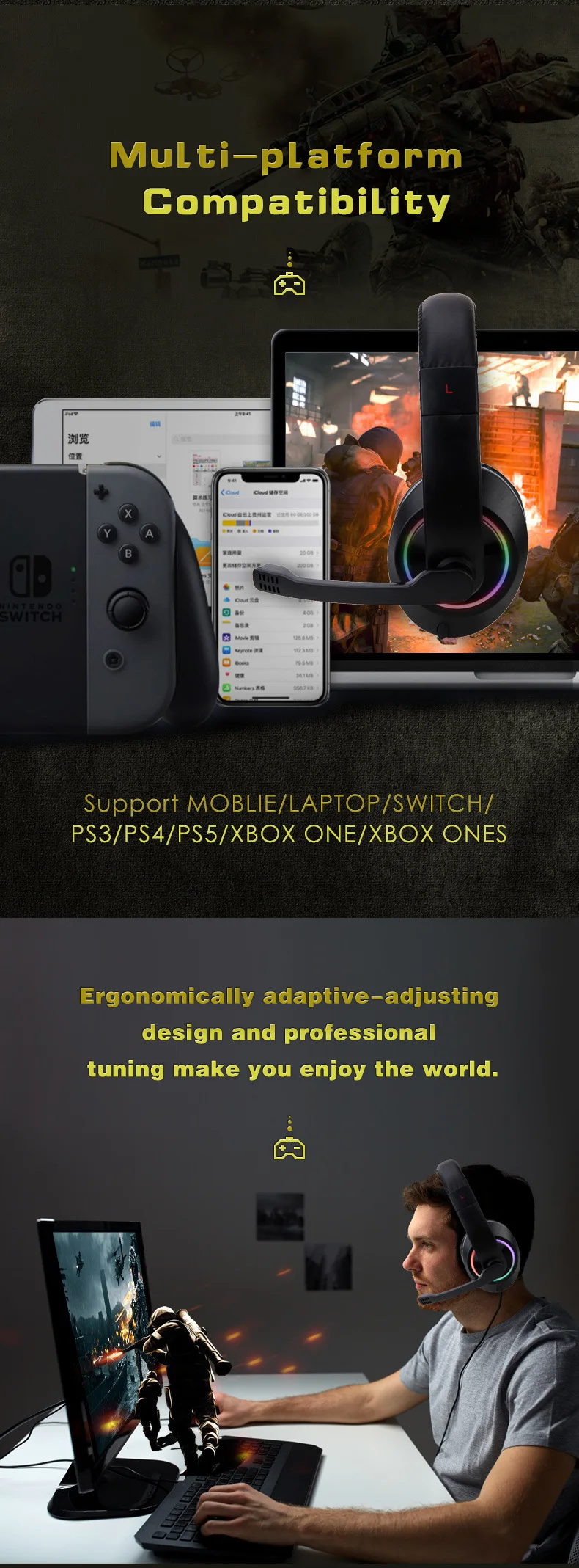 1) Вы будете чувствовать себя комфортно при ношении из-за регулируемого Луча головы и воздухопроницаемые подушки наушников.