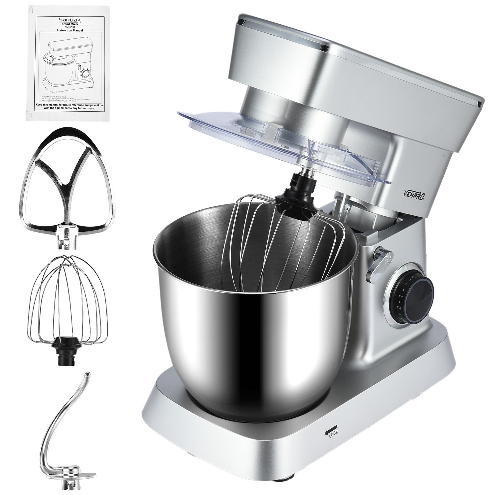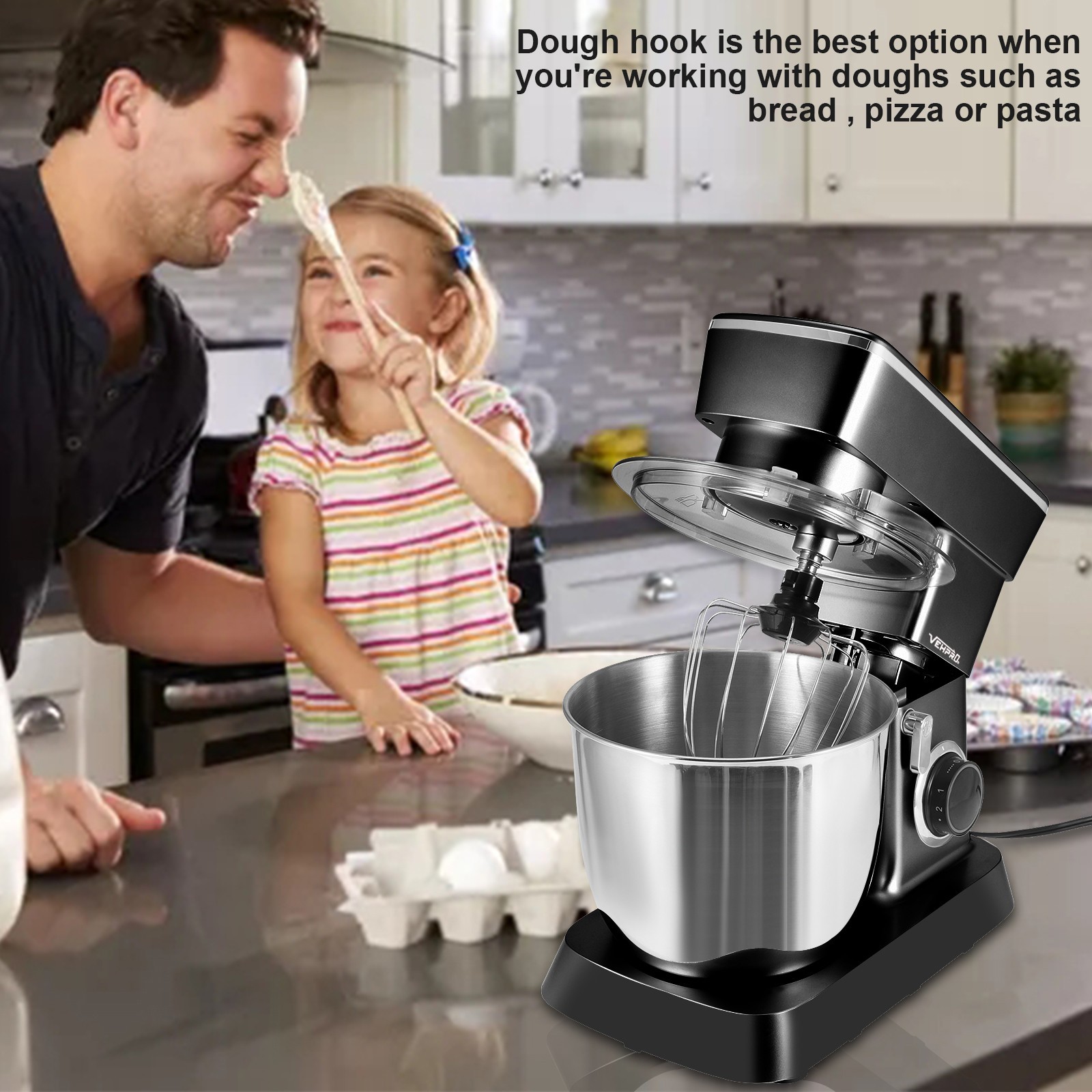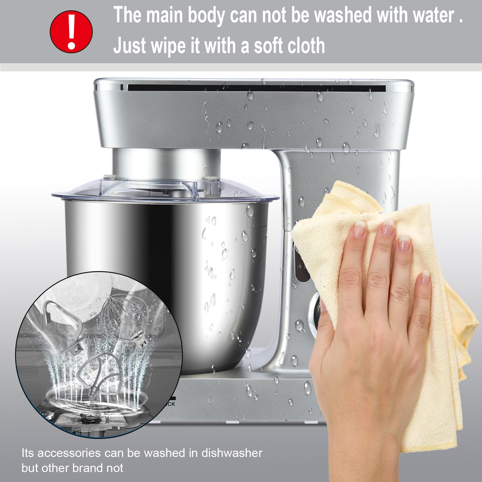 【All-METAL STAND MIXER】 The stable die-cast aluminum housing offers durability and ensures lasting use. The sturdy body and 4 anti-skid pads on the bottom firmly fix the mixer on the platform, it will not shake even under the powerful motor.