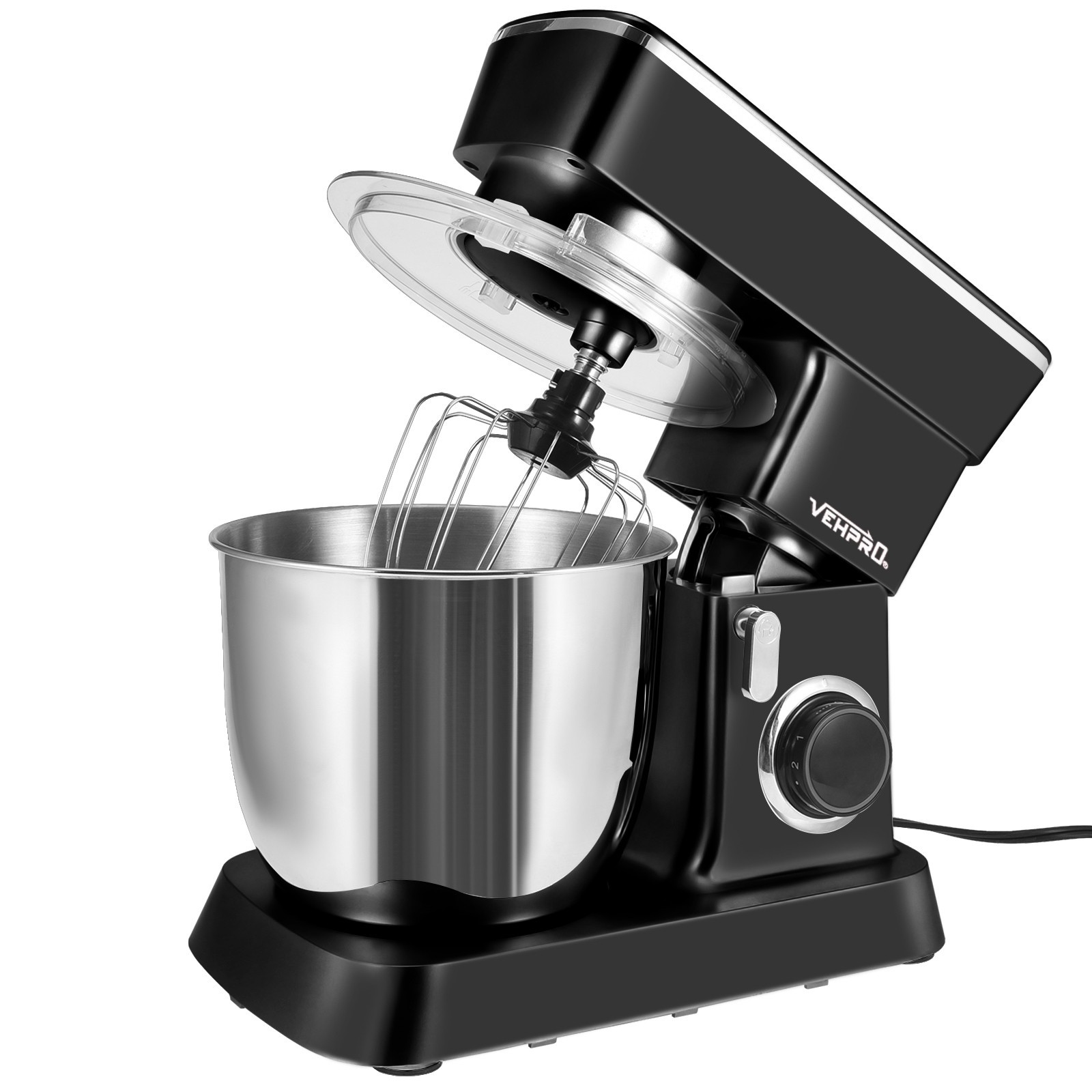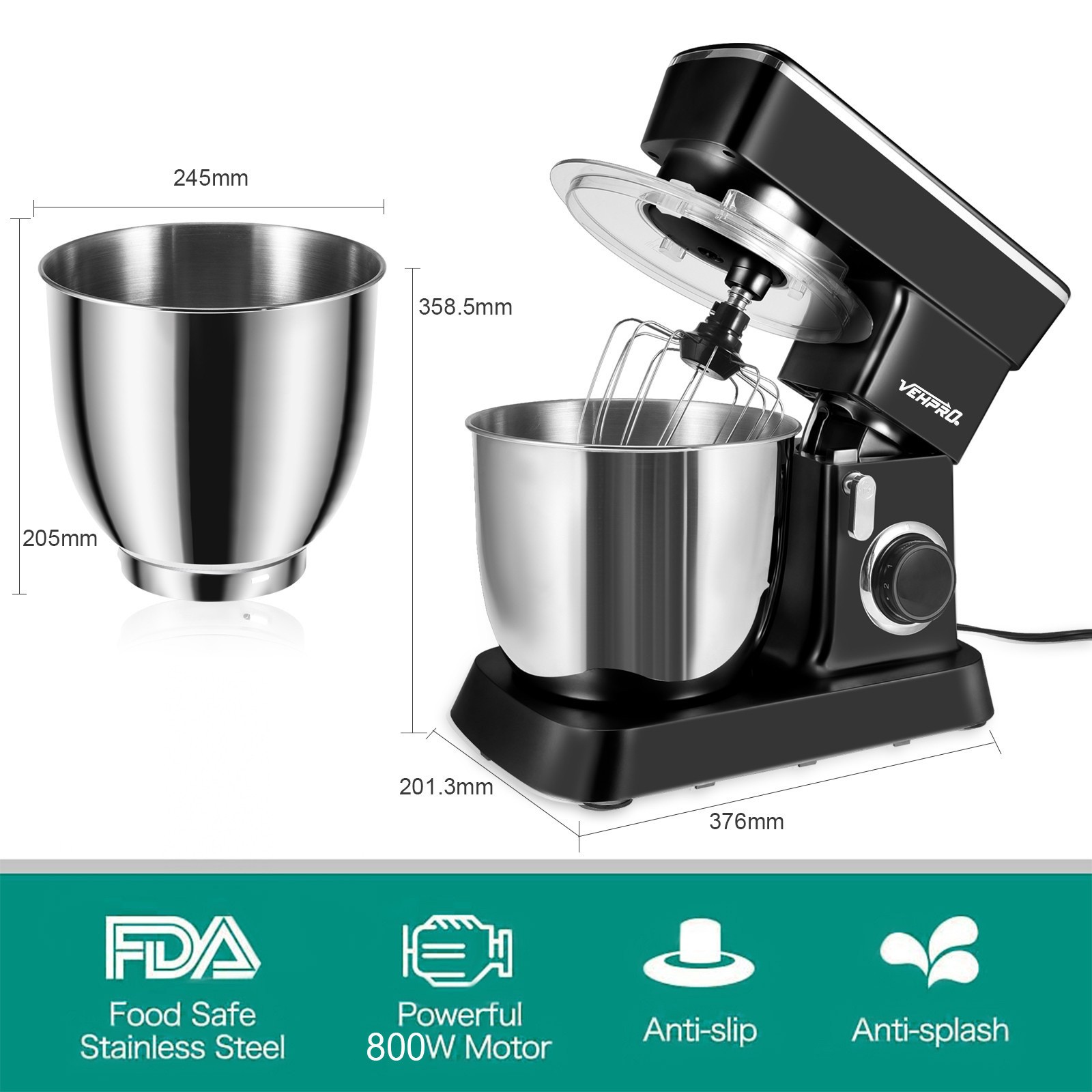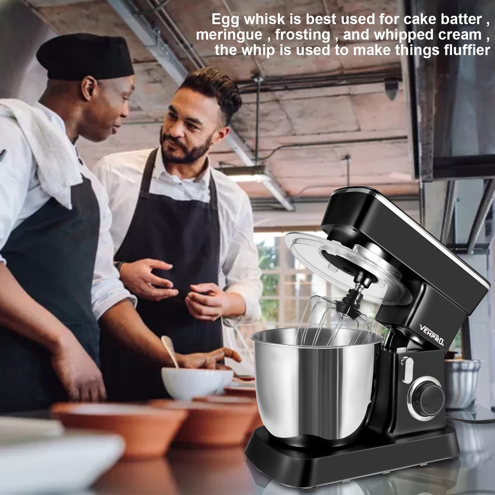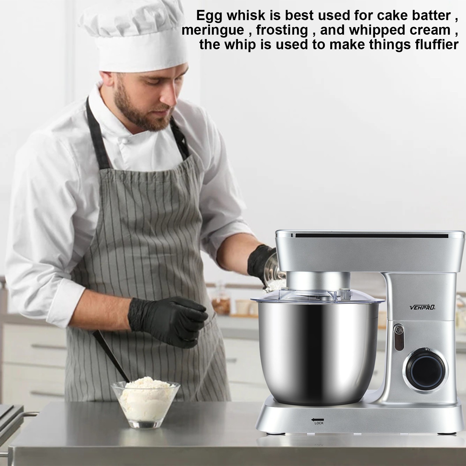 【MULTIPLE ATTACHMENT SET】Stand mixer comes with 6 different attachments: whisk, dough hook, flat beater, eg/g white separator and a scraper. The splash guard with access H/atch helps add ingredients. You can use it to make most things in your home-small batches of muffins or cookies, cakes, icing, bread, mashed potatoes etc.