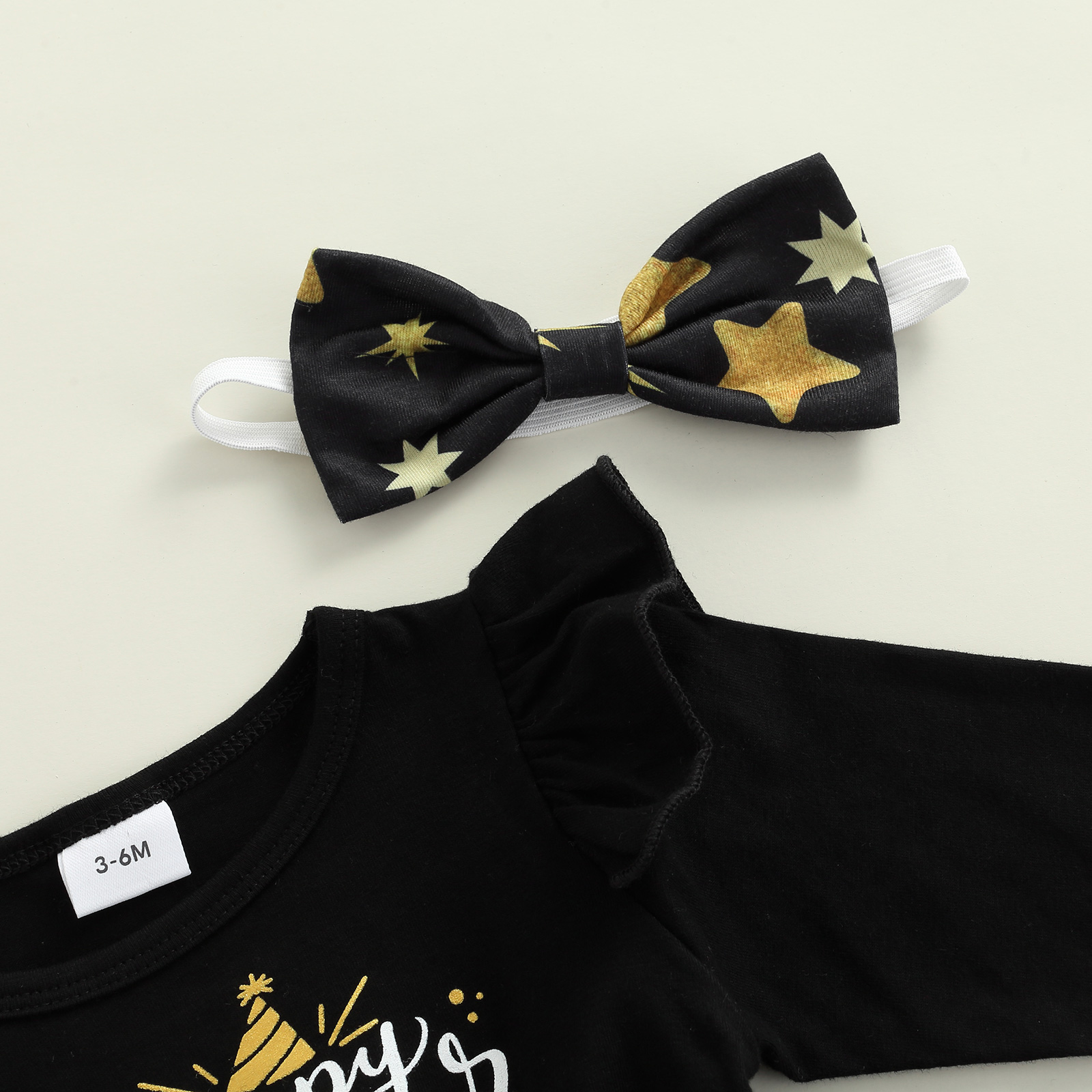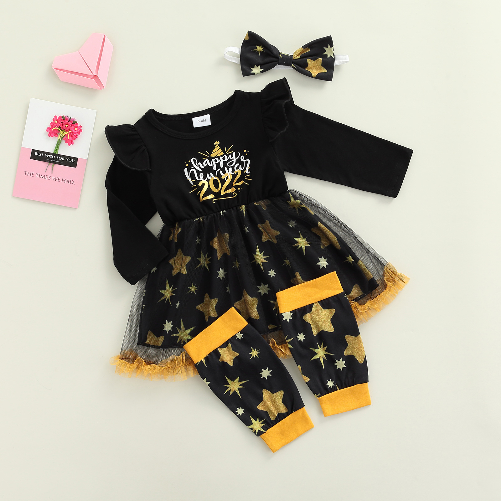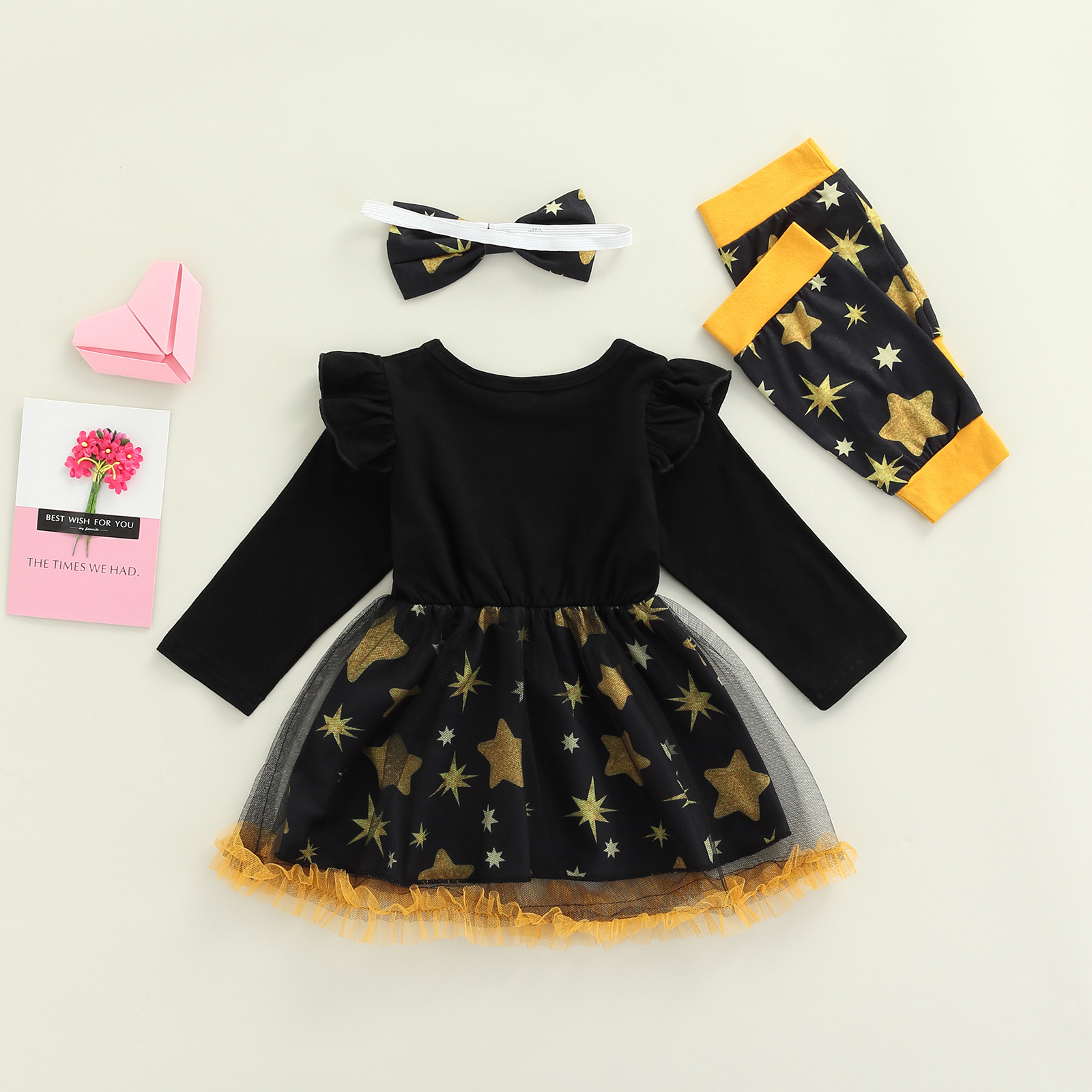 Костюм из трех предметов с платьем для маленьких девочек платье с длинными рукавами и принтом в виде букв и звезд повязка на голову с бантом