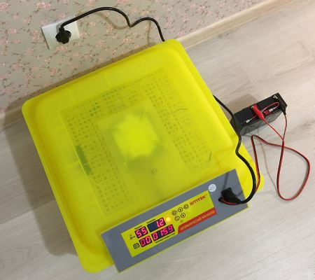 Инкубатор в действии с подключенным опциональным аккумулятором