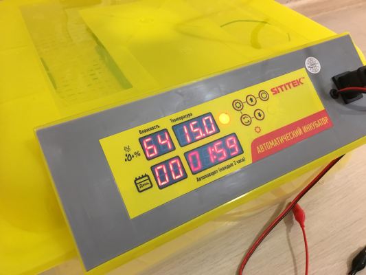 Цифровой инкубатор "SITITEK 48" имеет прозрачный корпус и рассчитан на 48 куриных яиц. Встроенный микропроцессор самостоятельно осуществляет переворот яиц и поддерживает заданные пользователем влажность и температуру в камере с яйцами. При выходе параметров за заданные пределы срабатывает тревожная сигнализация (звуковой сигнал). Питается прибор от сети 220 В или аккумулятора на 12 В на случай отключения электросети. Для определения пригодности яиц к инкубации в комплект входит внешний овоскоп.