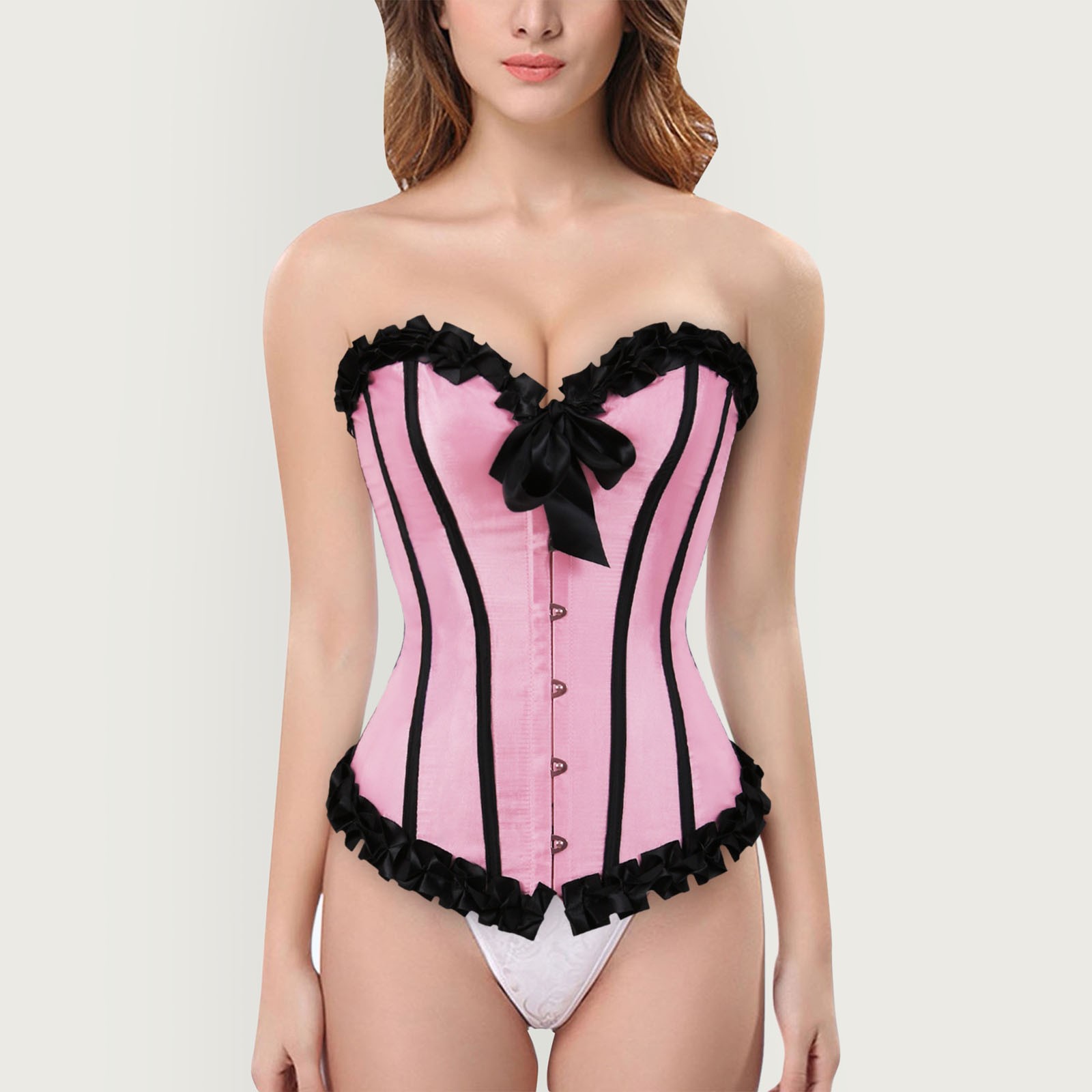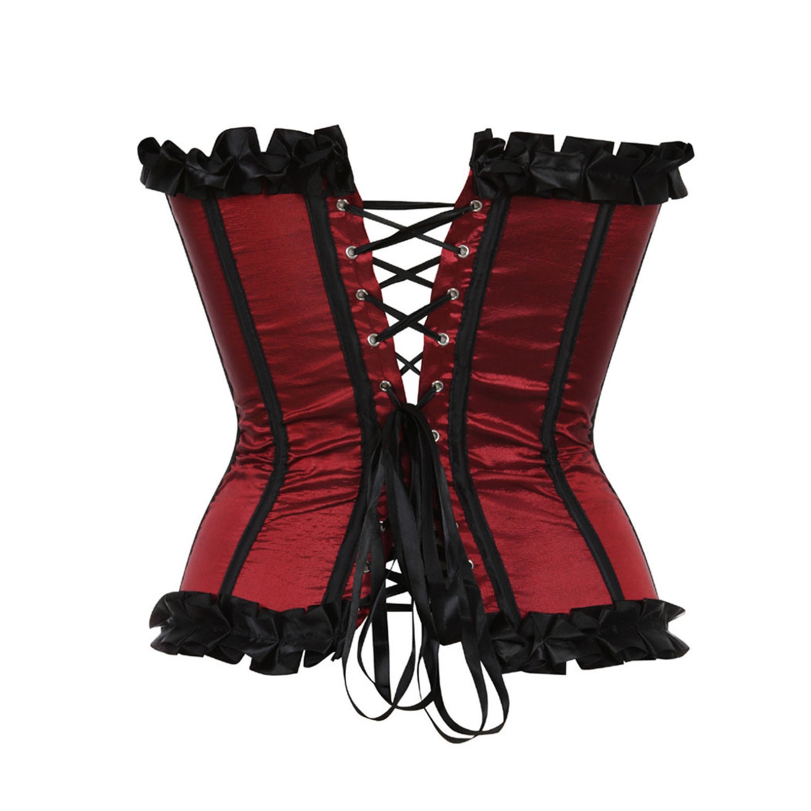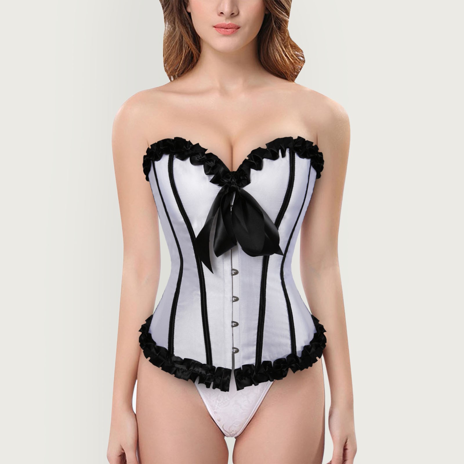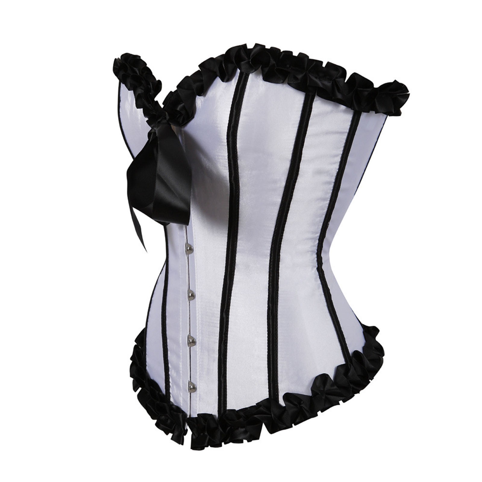 Женский атласный корсет контрастного цвета с кружевом и пряжкой