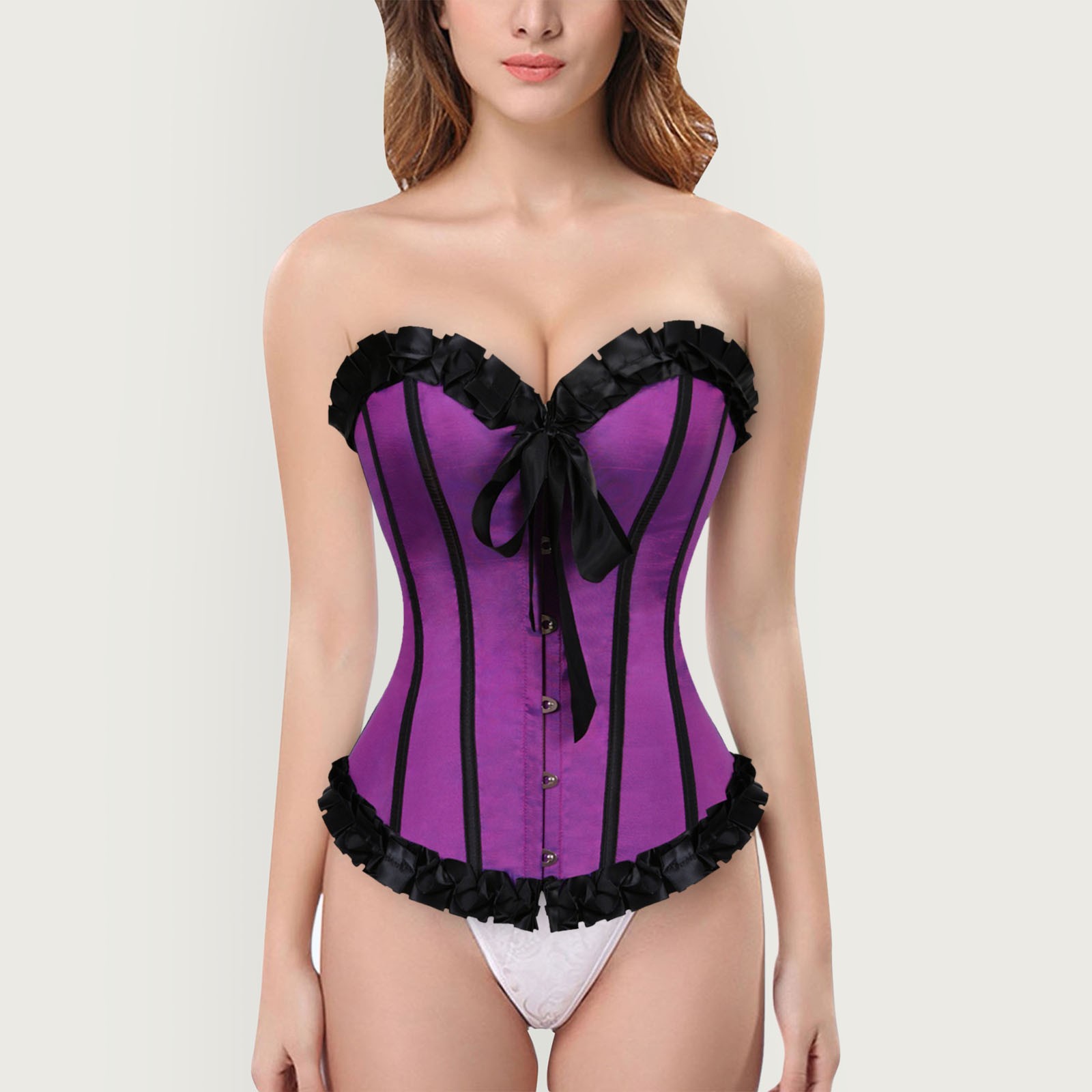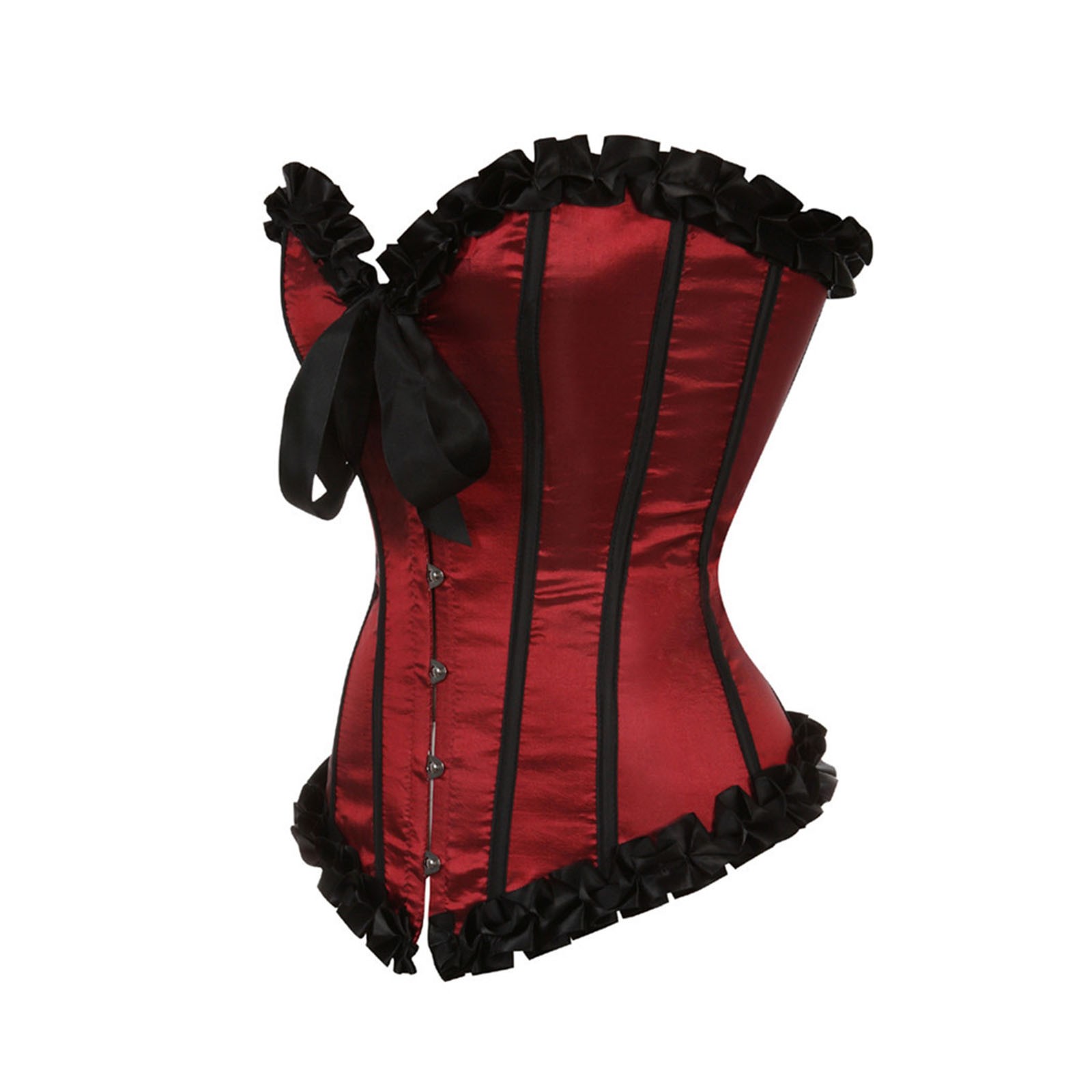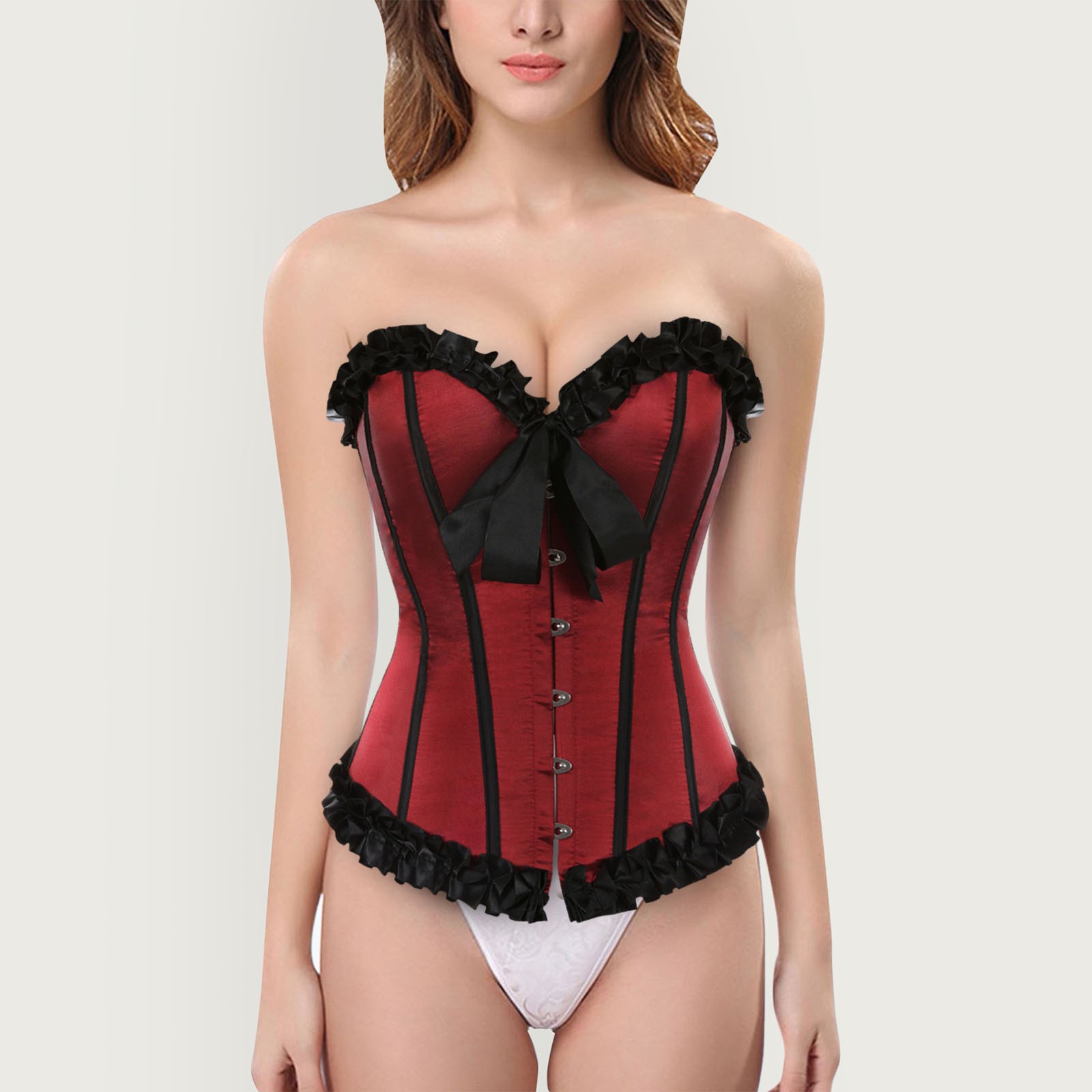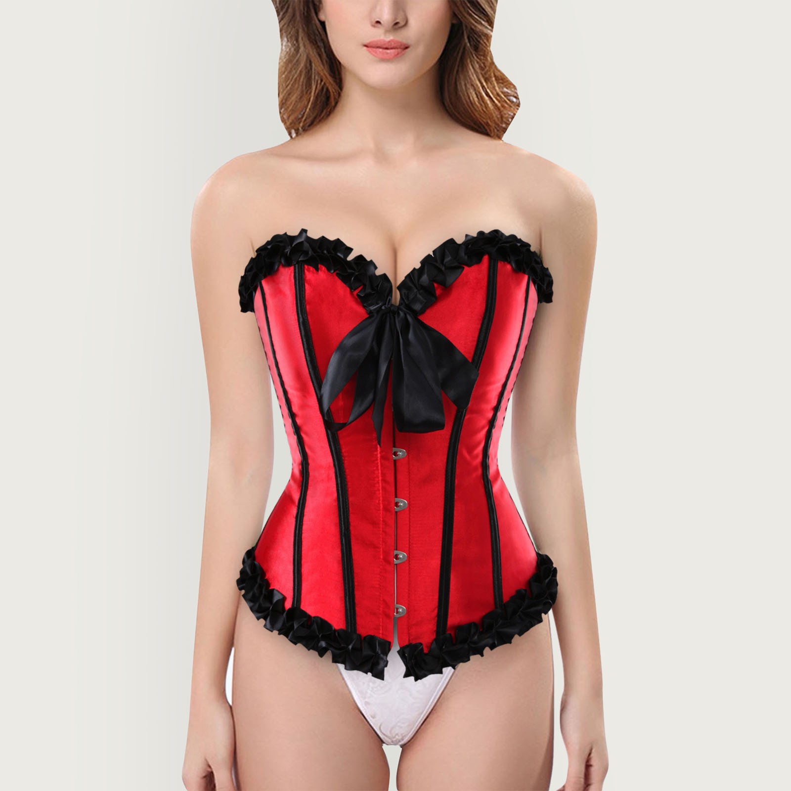 Женский атласный корсет контрастного цвета с кружевом и пряжкой