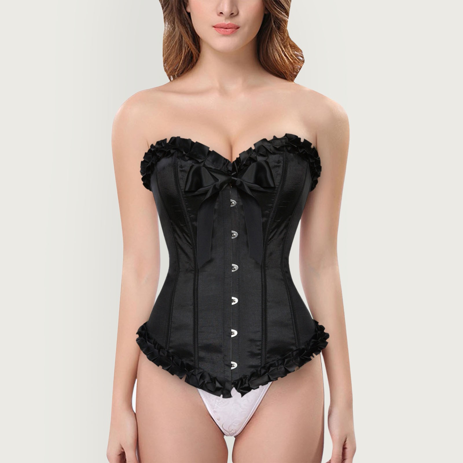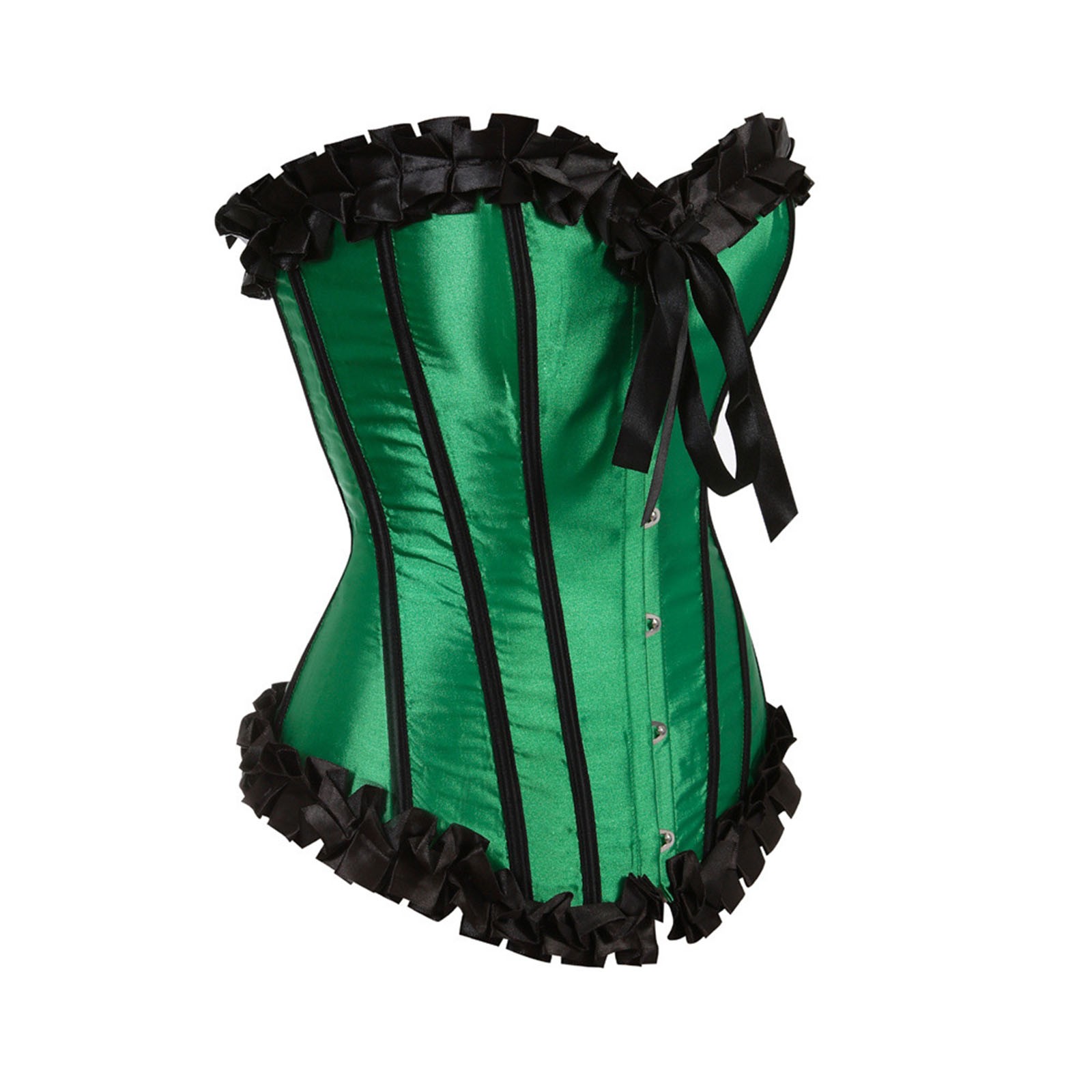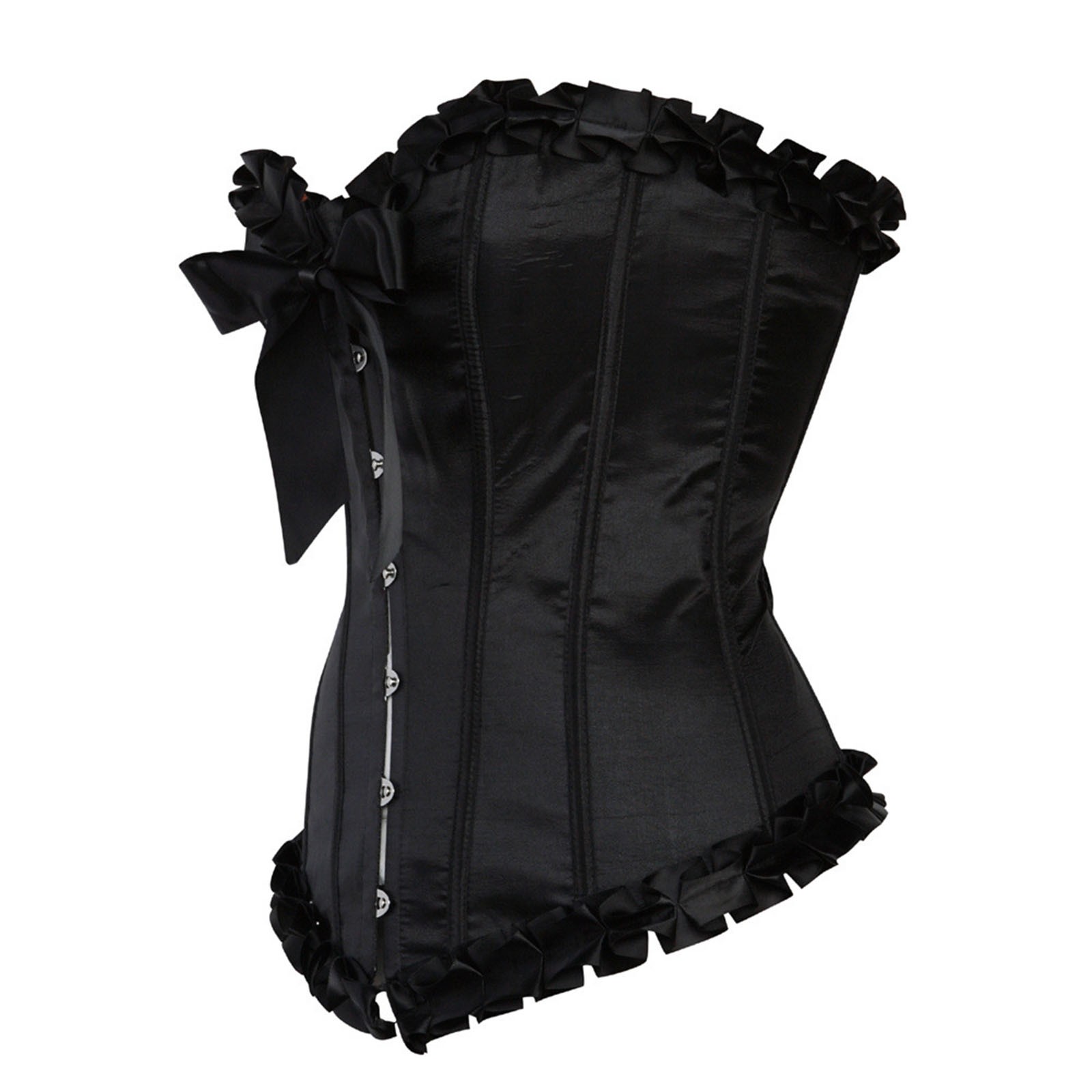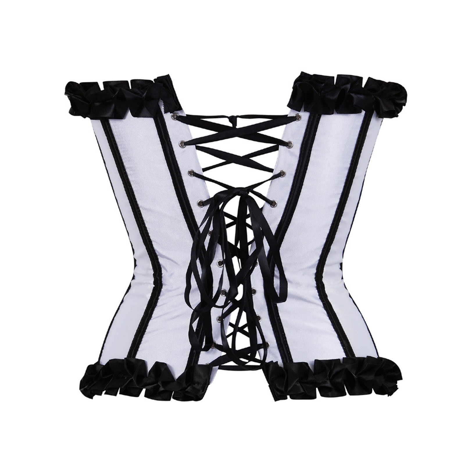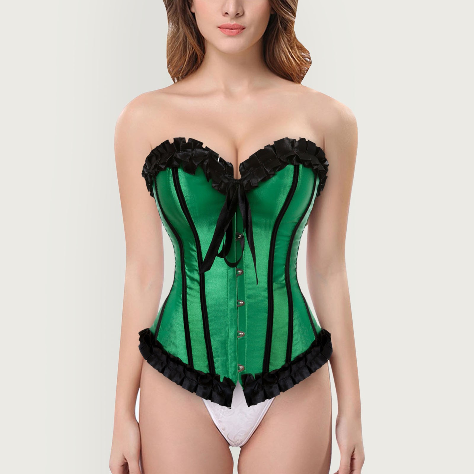 Женский атласный корсет контрастного цвета с кружевом и пряжкой