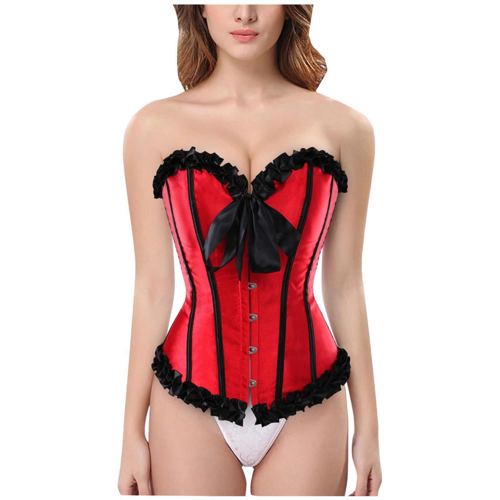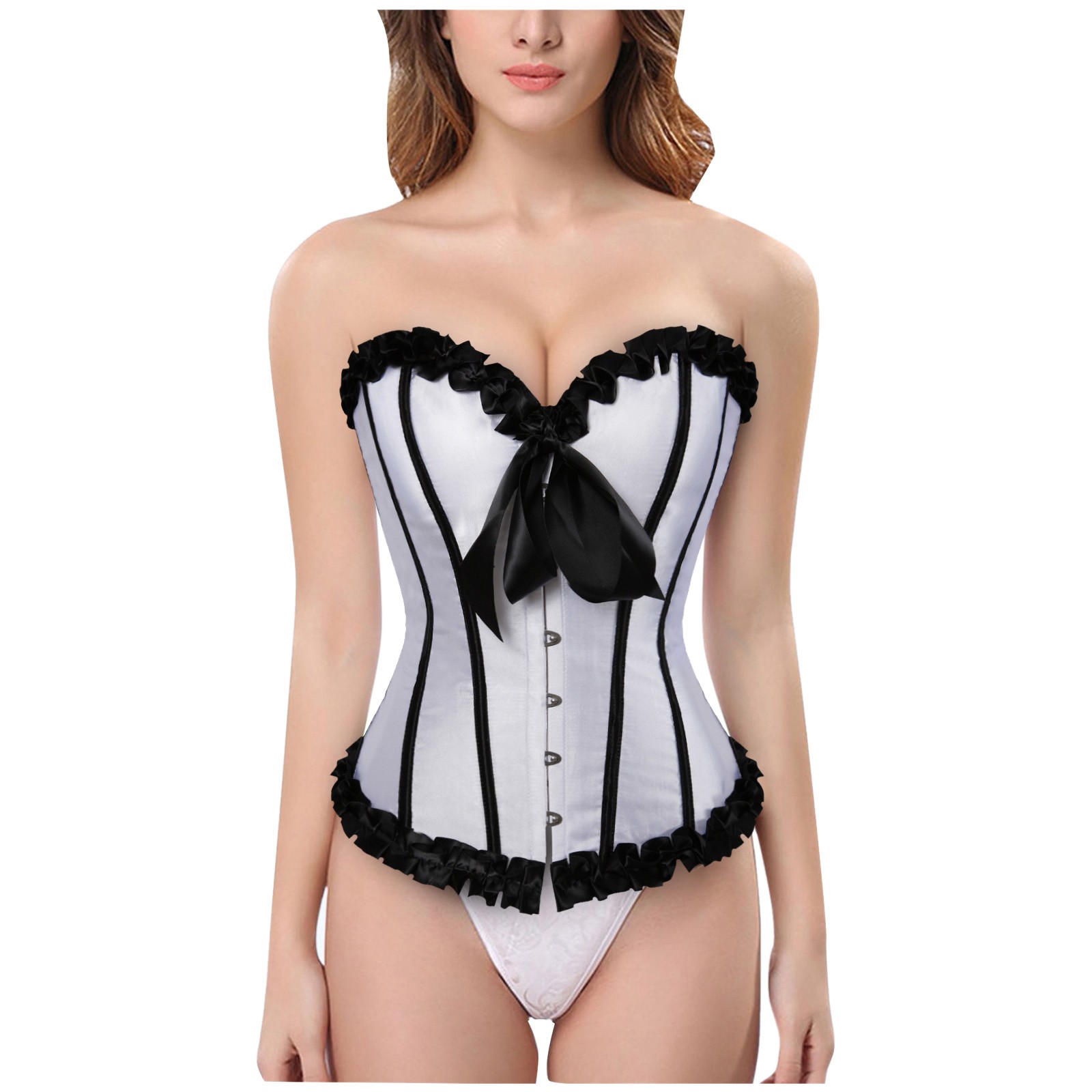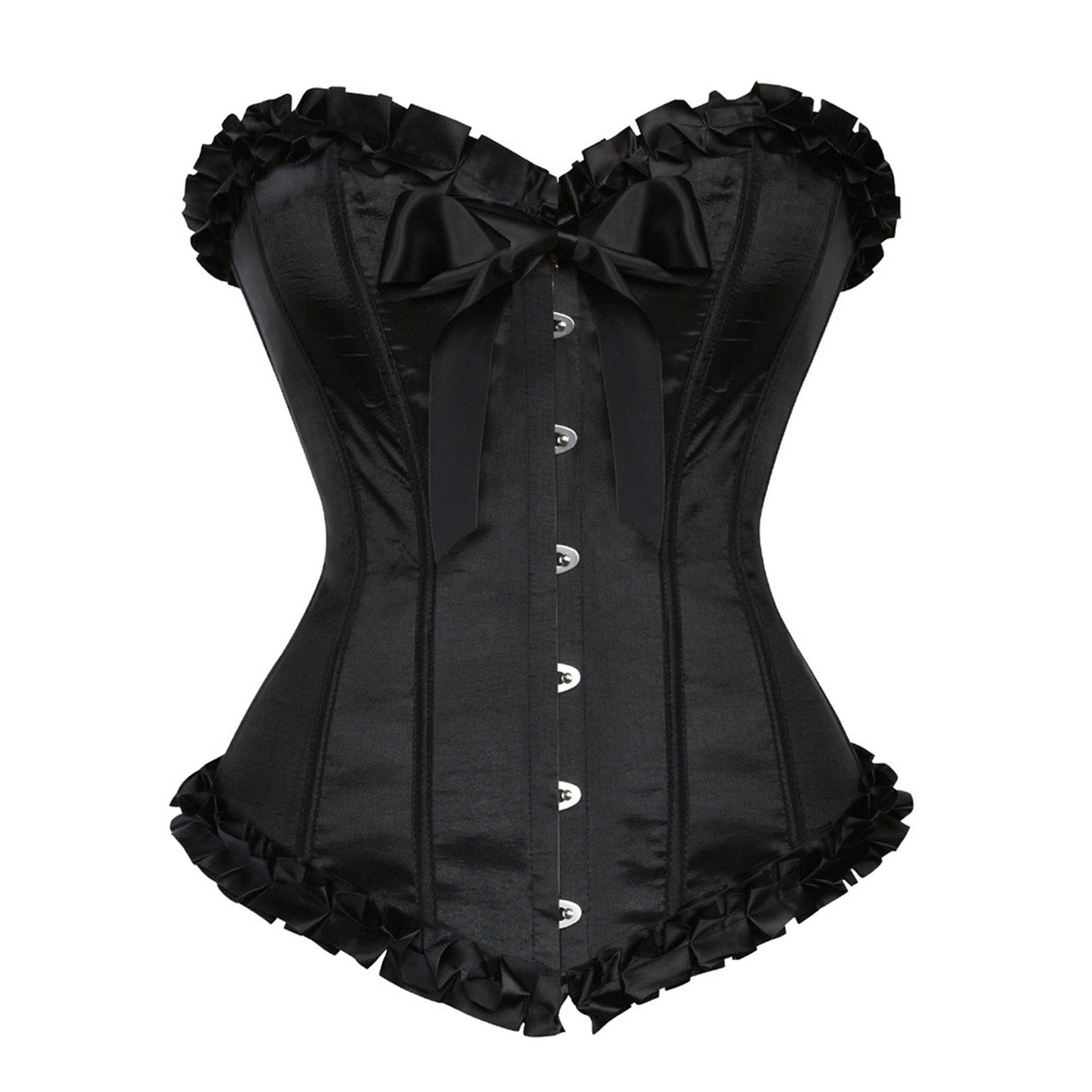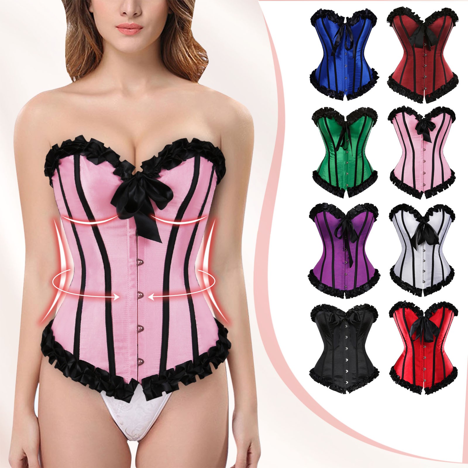 Женский атласный корсет контрастного цвета с кружевом и пряжкой