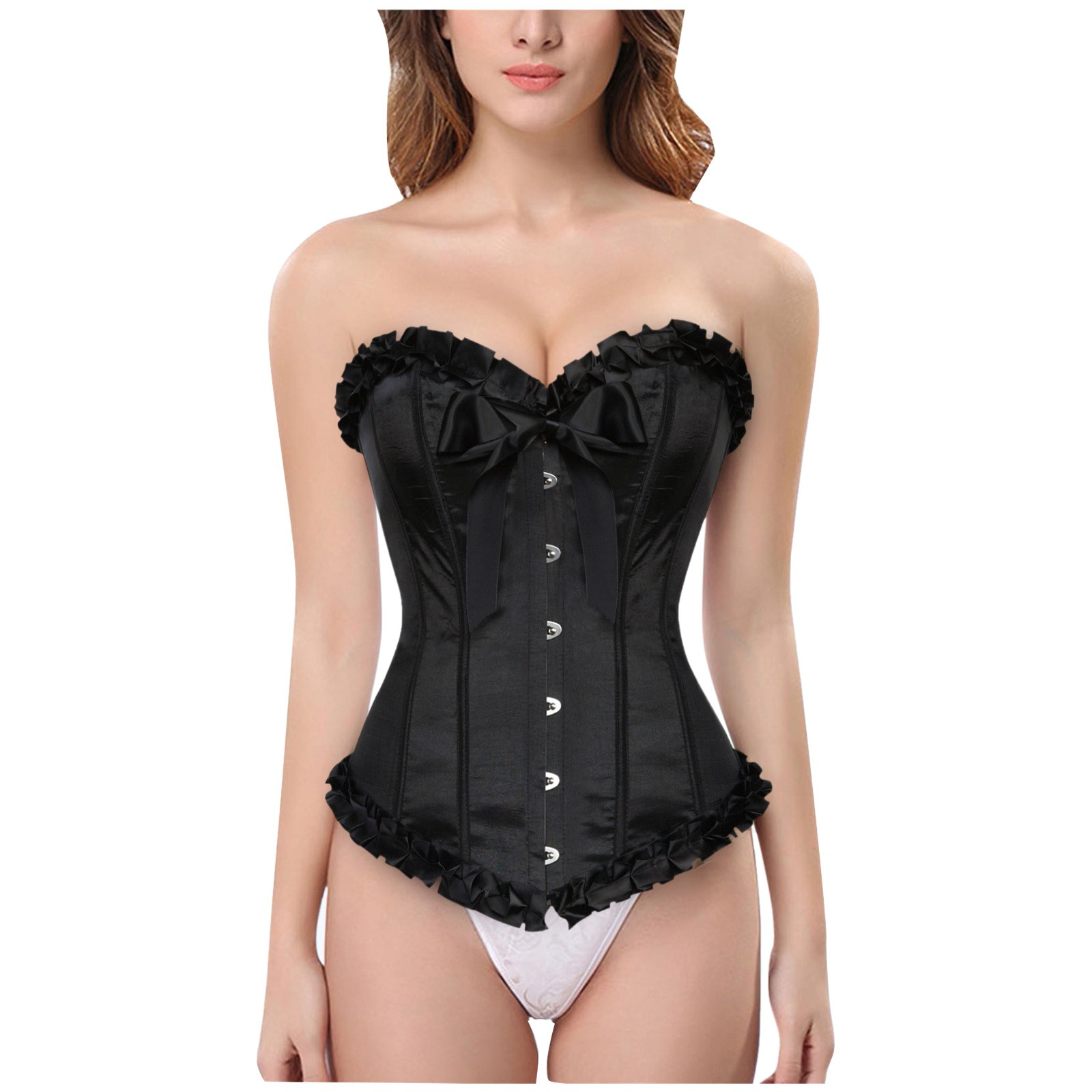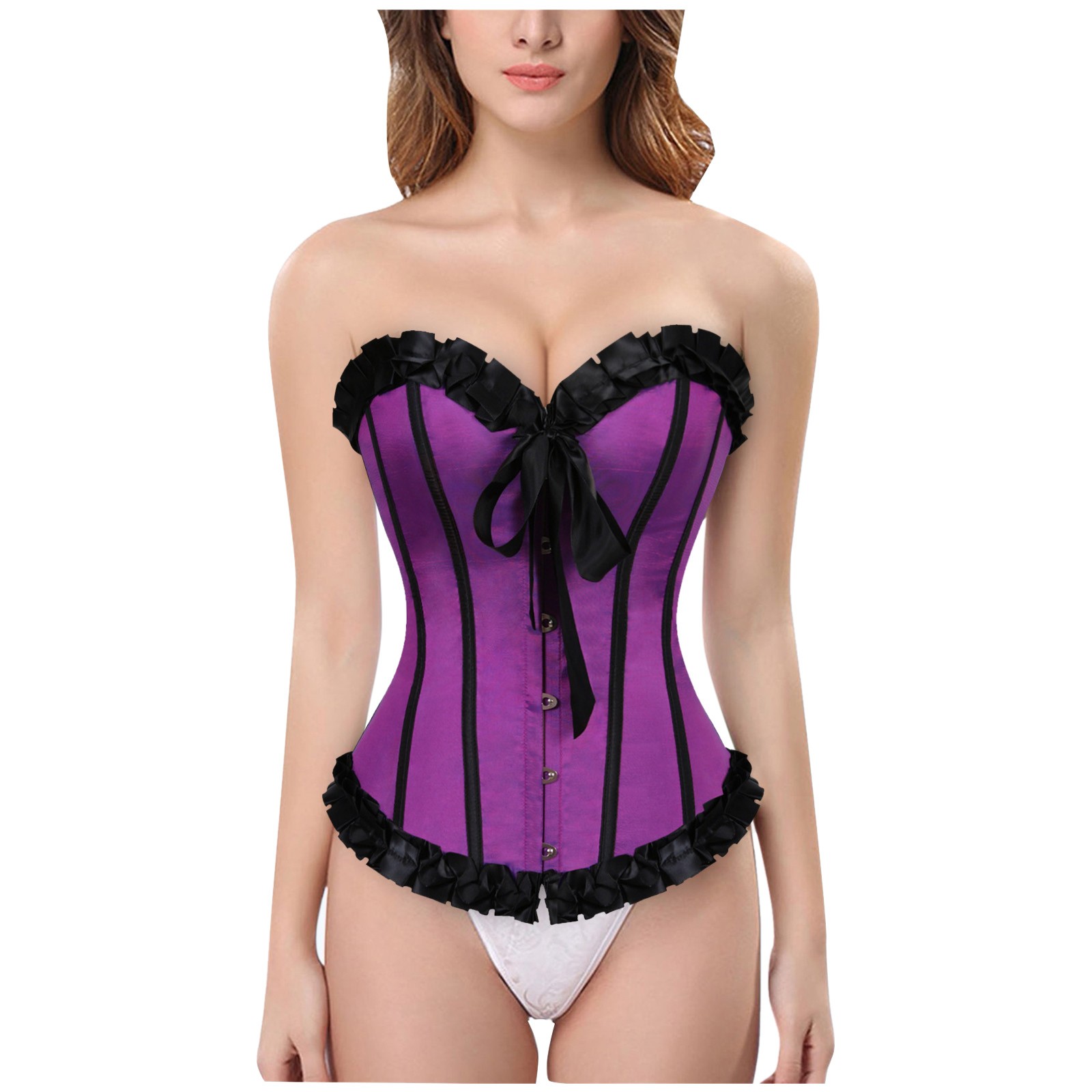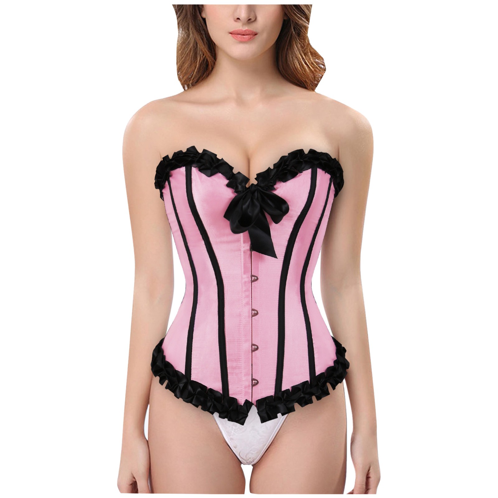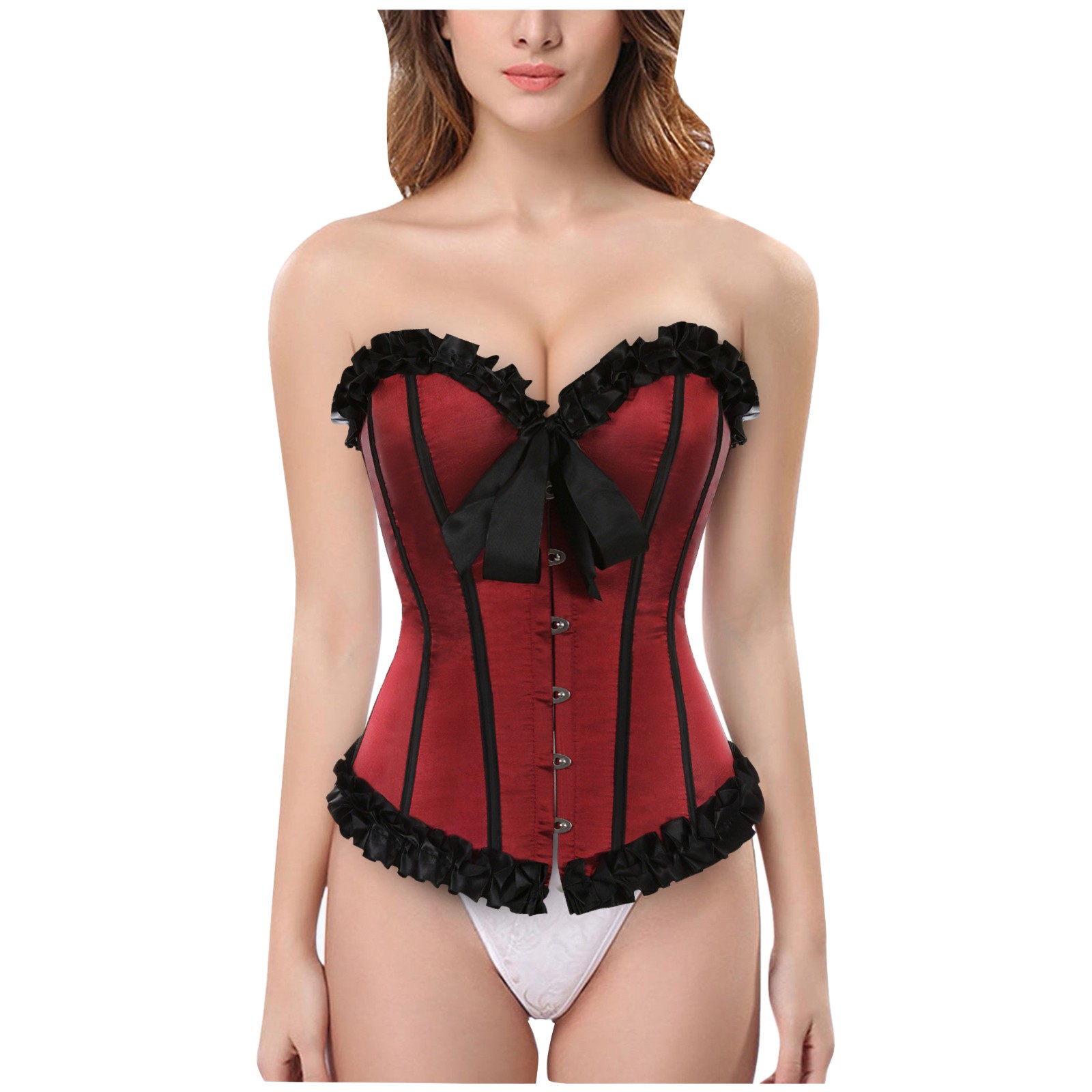 Женский атласный корсет контрастного цвета с кружевом и пряжкой